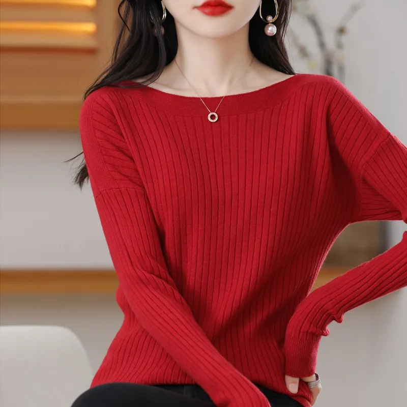 Women Sweater Autumn Winter Warm Bottiming Shirts Korean Fashion Slash Neck Long Sleeve Pullovers Slim Fit Casual Warm Knitwears