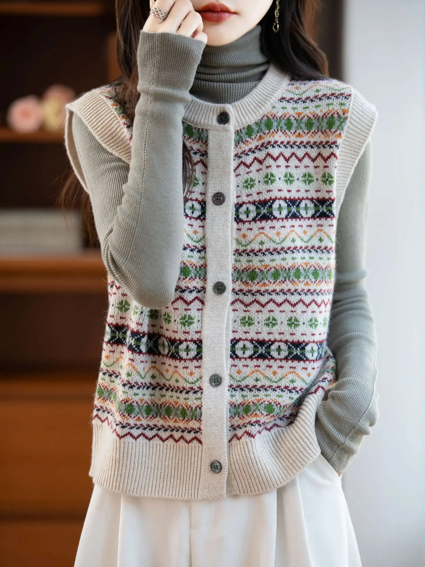 Women Sweater Cardigans Autumn Winter Warm Sleeveless Loose Wool Casual Warm Sweater Cashmere Korean Jumpers Knitted Cardigan