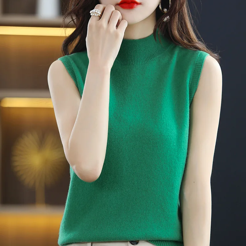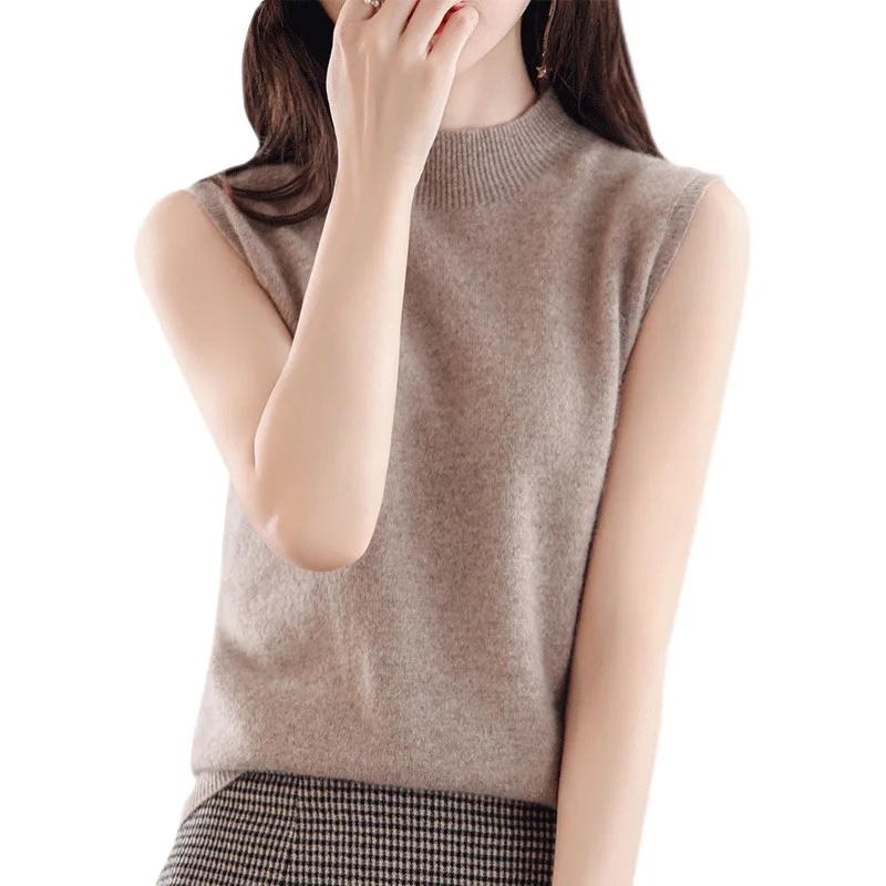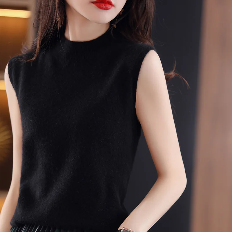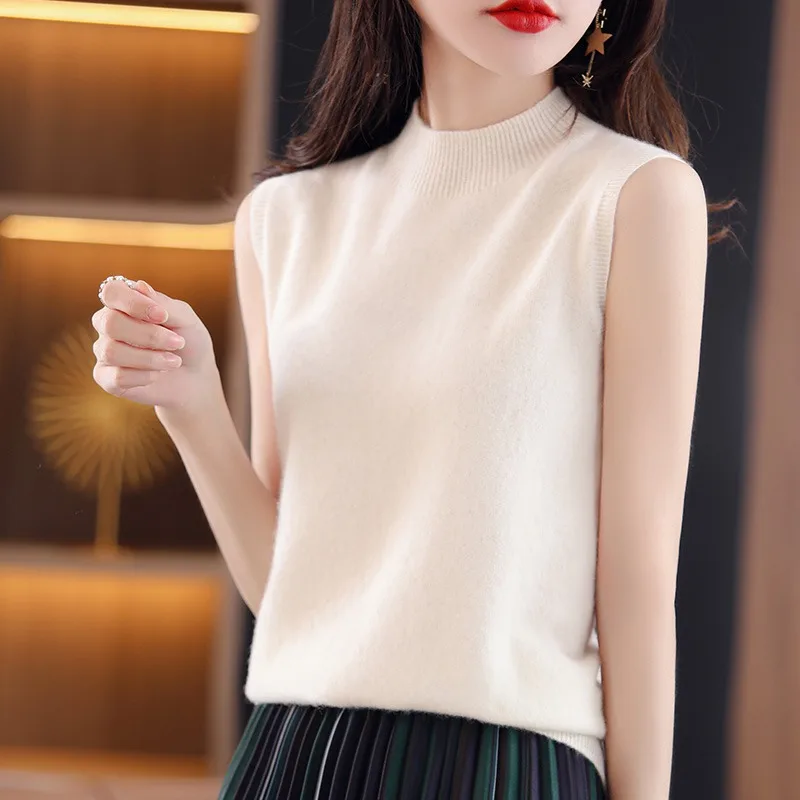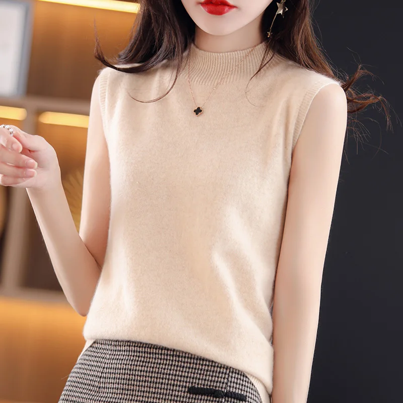 Women Sweater Casual Warm Spring Autumn Bottoming Shirts Mock Neck Basic Knitwear Sleeveless Pullovers Korean Fashion Jumper