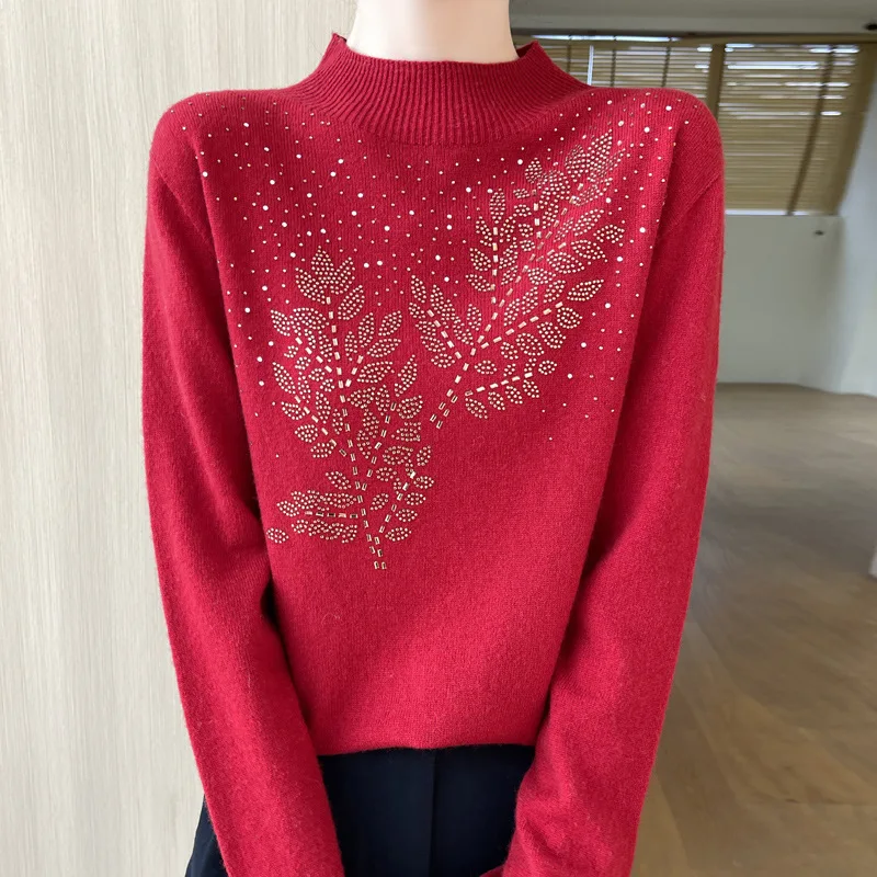 Women Sweater Long Sleeve Autumn Winter Thick Warm Pullovers Beading Korean Fashion Bottoming Shirts Soft High Strecth Jumpers