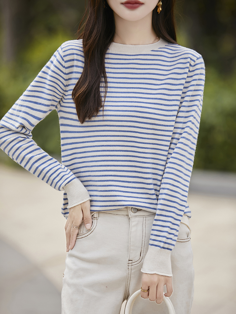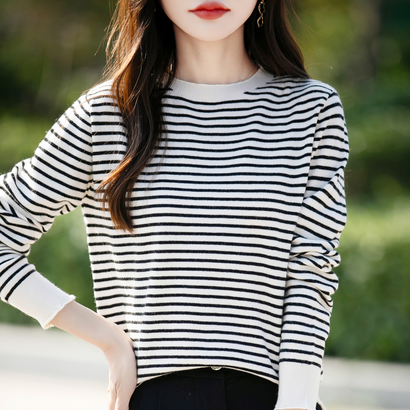 Women Sweater Long Sleeve O-neck Pullover Autumn Winter Warm Striped Bottoming Shirts Loose Korean Fashion Under Knitted Sweater