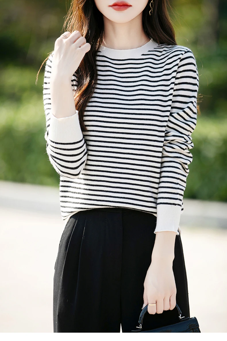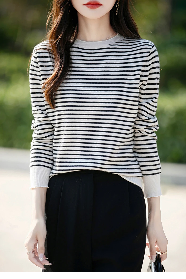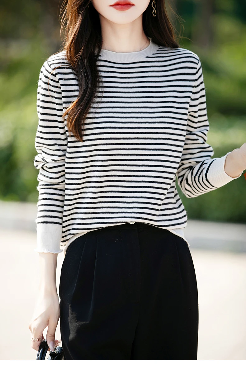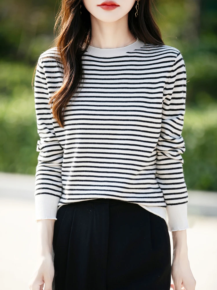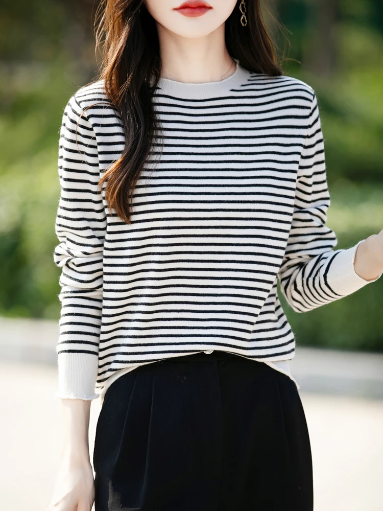 Women Sweater Long Sleeve O-neck Pullover Autumn Winter Warm Striped Bottoming Shirts Loose Korean Fashion Under Knitted Sweater