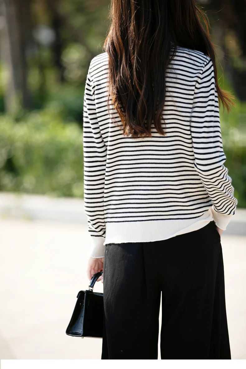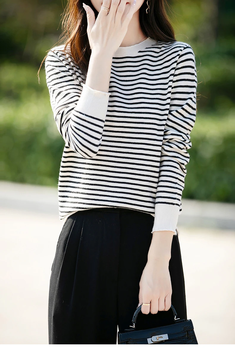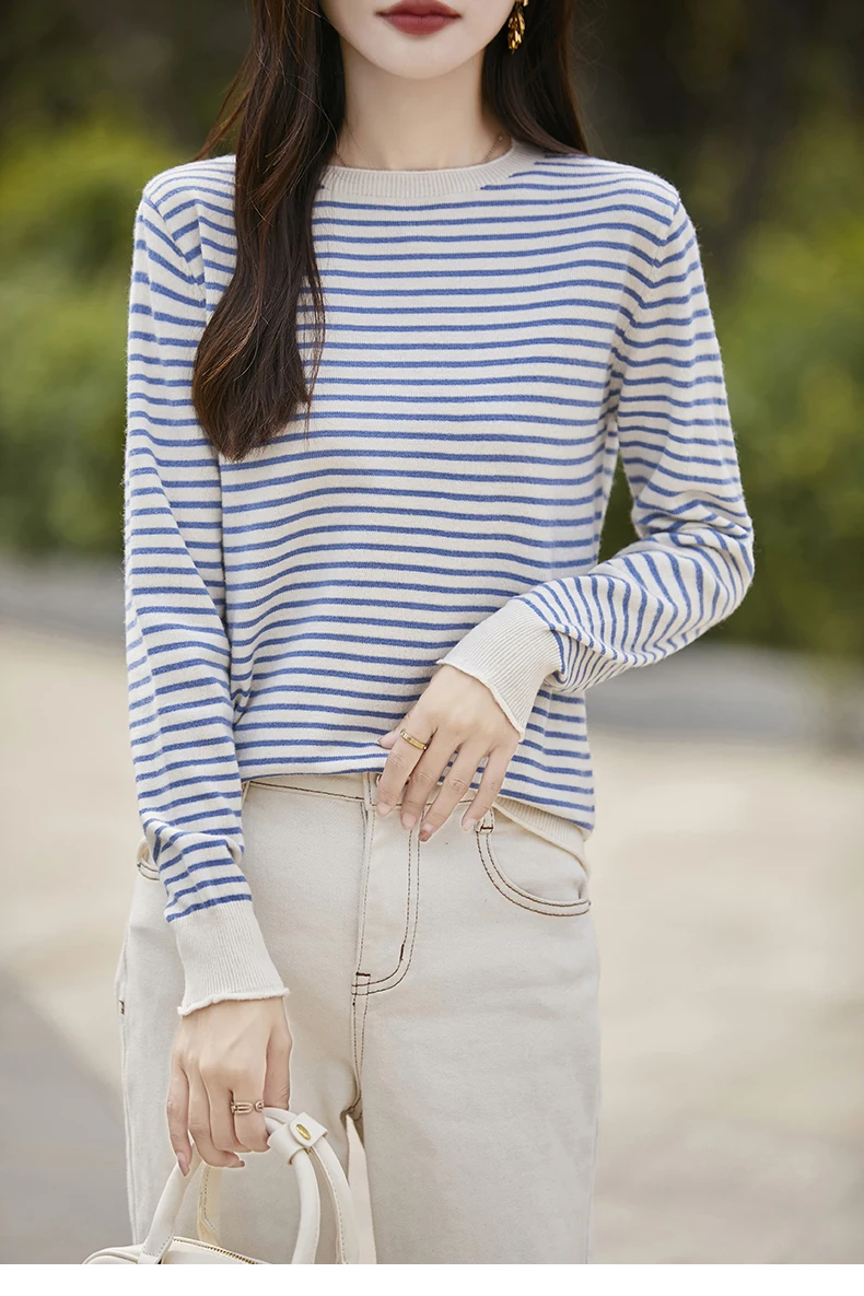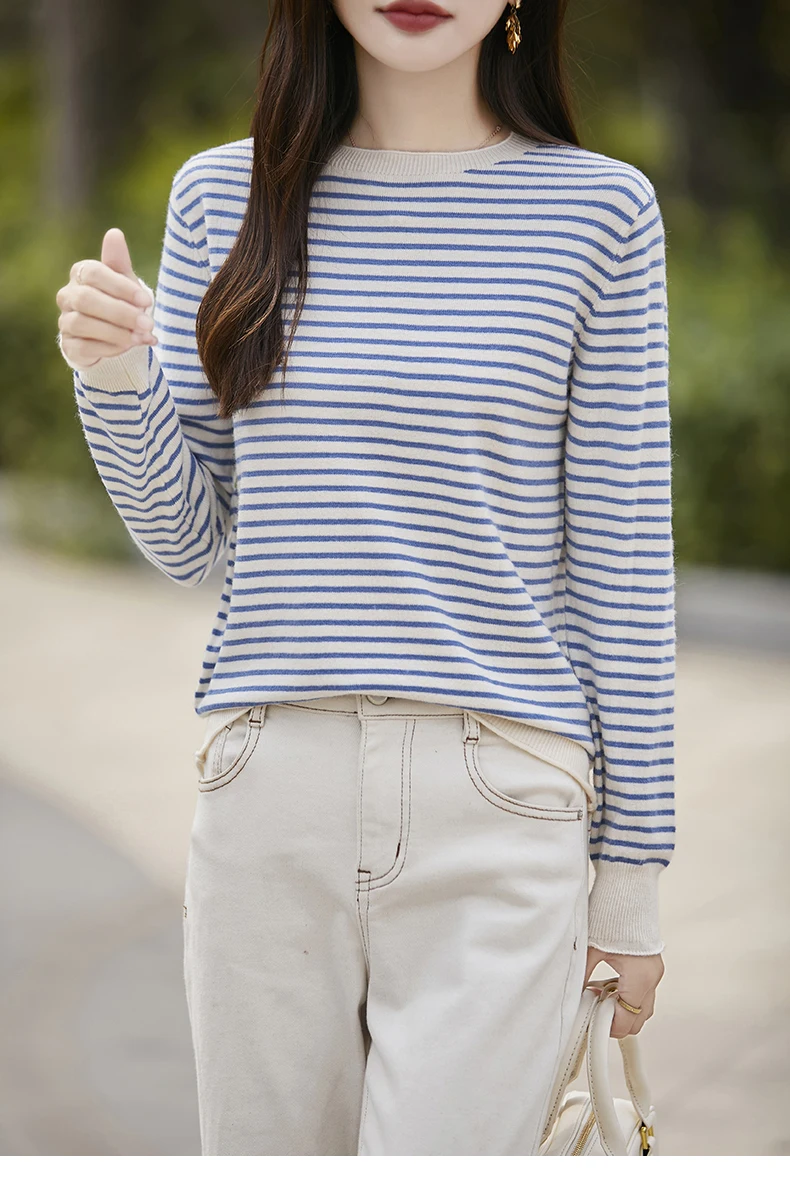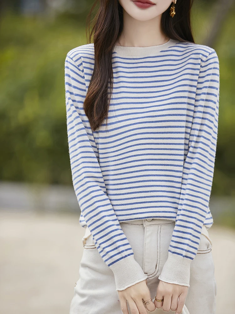 Women Sweater Long Sleeve O-neck Pullover Autumn Winter Warm Striped Bottoming Shirts Loose Korean Fashion Under Knitted Sweater