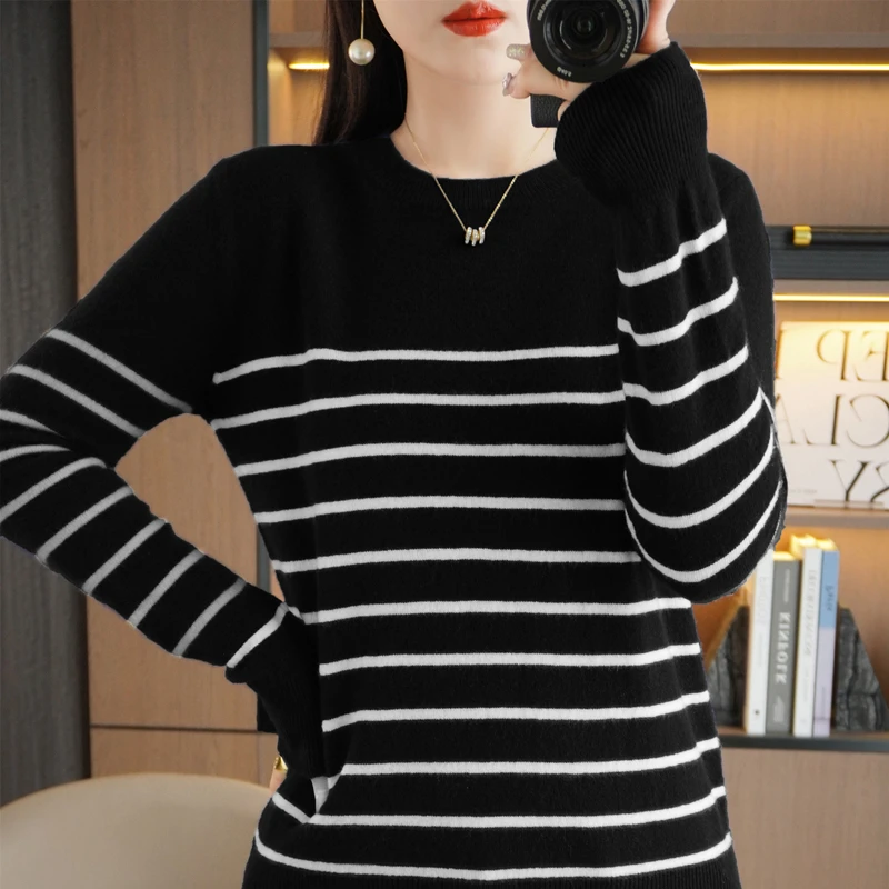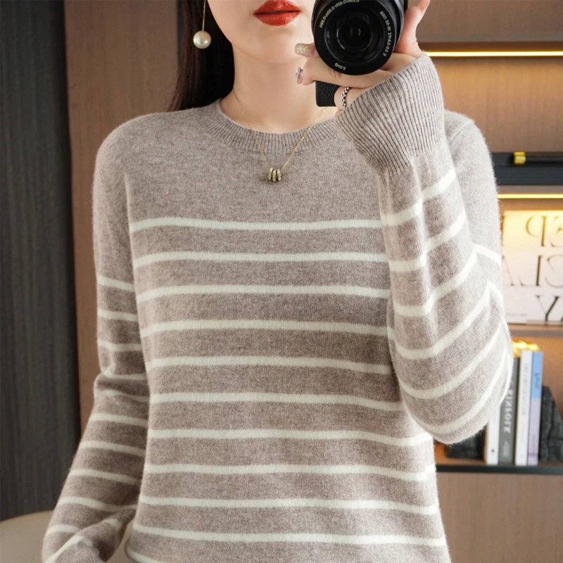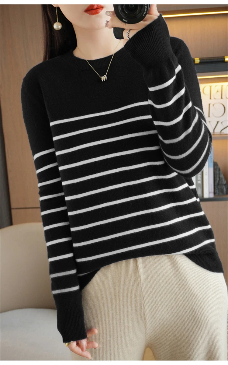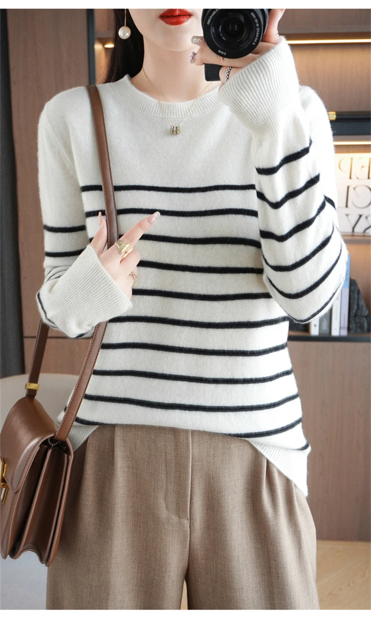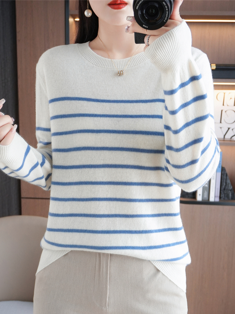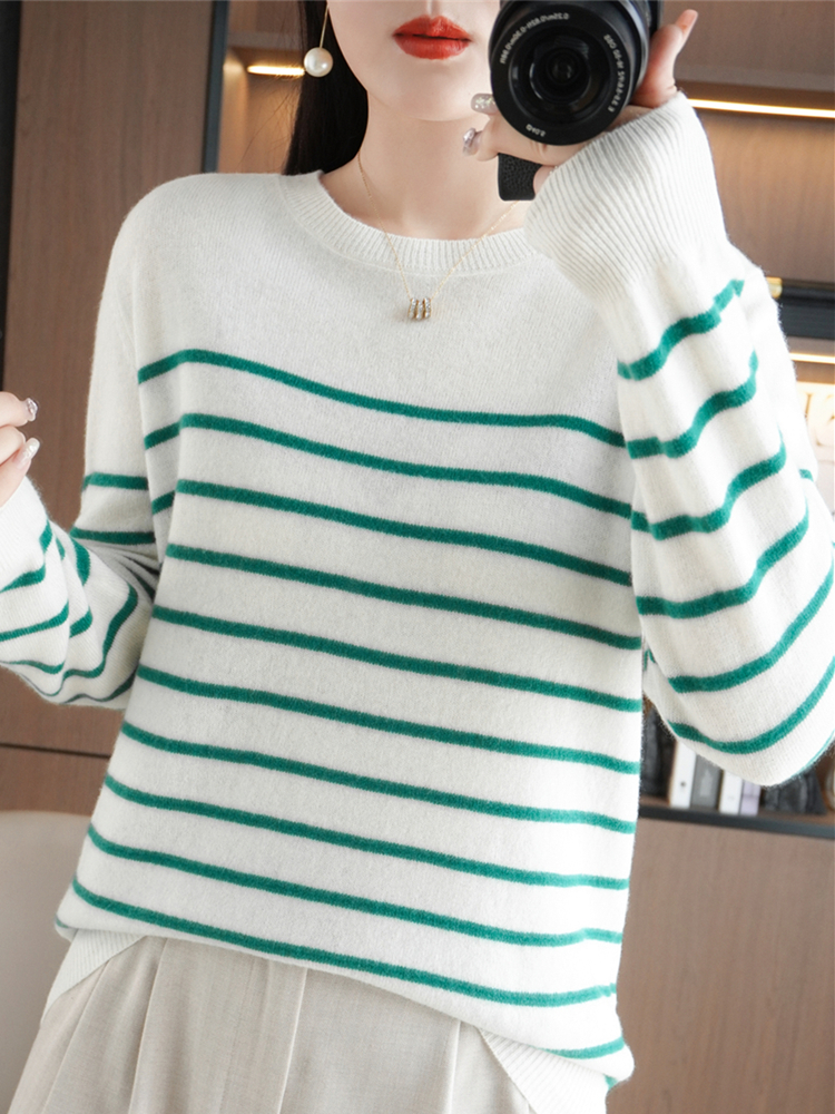 Women Sweater Long Sleeve O-neck Striped Pullovers Loose Casual Autumn Winter Warm Bottoming Shirts Knitted Sweater Jumpers