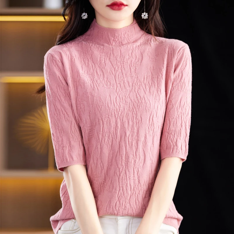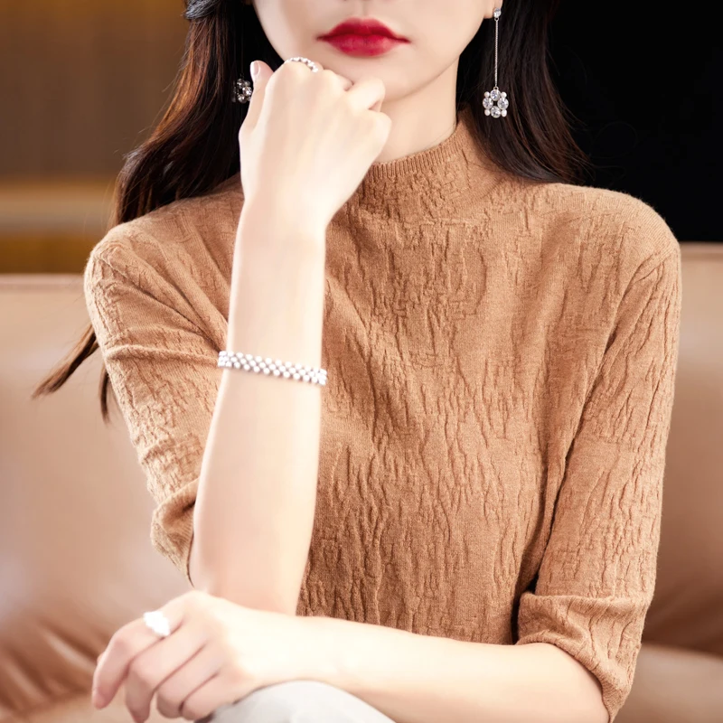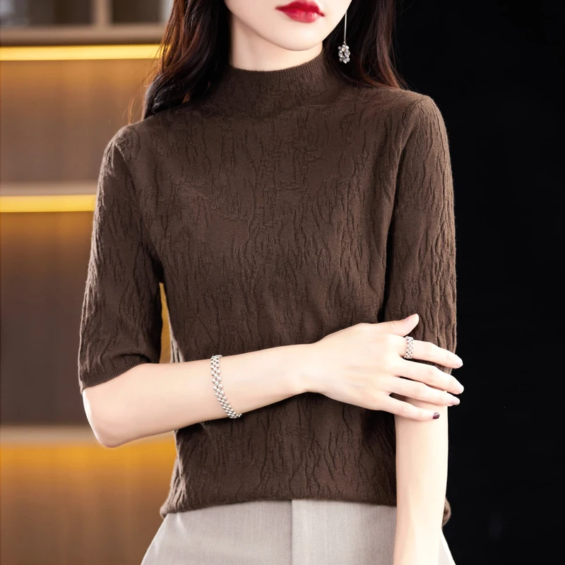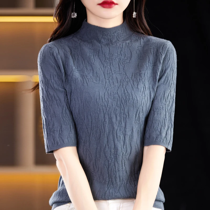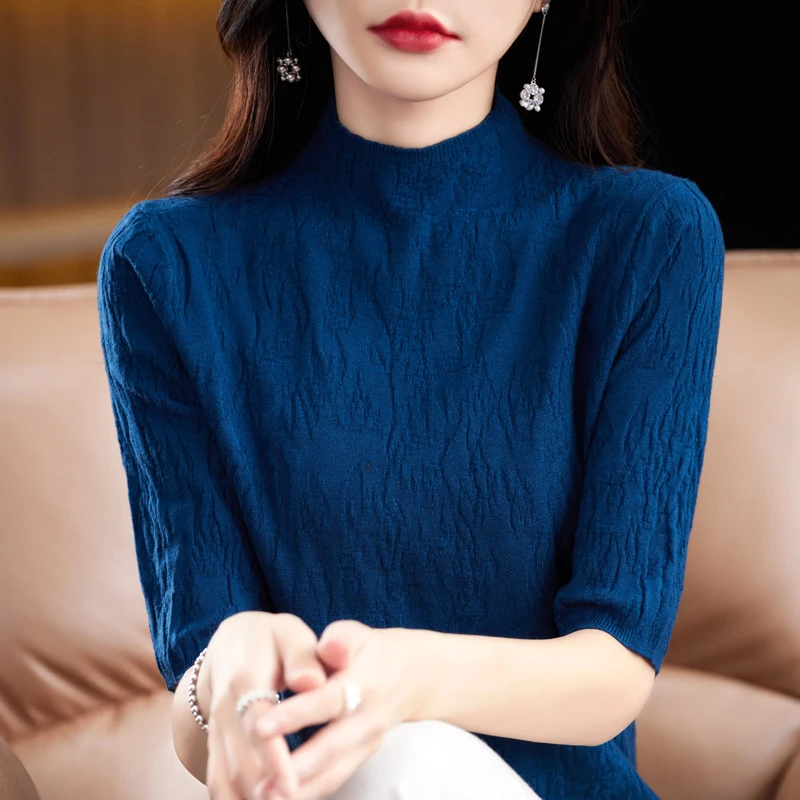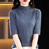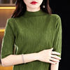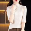 Women Sweater Mock Neck Short Sleeve Knitted Shirts Slim Fit Pullovers Stripe High Strecth Autumn Winter Warm Bottoming Shirts