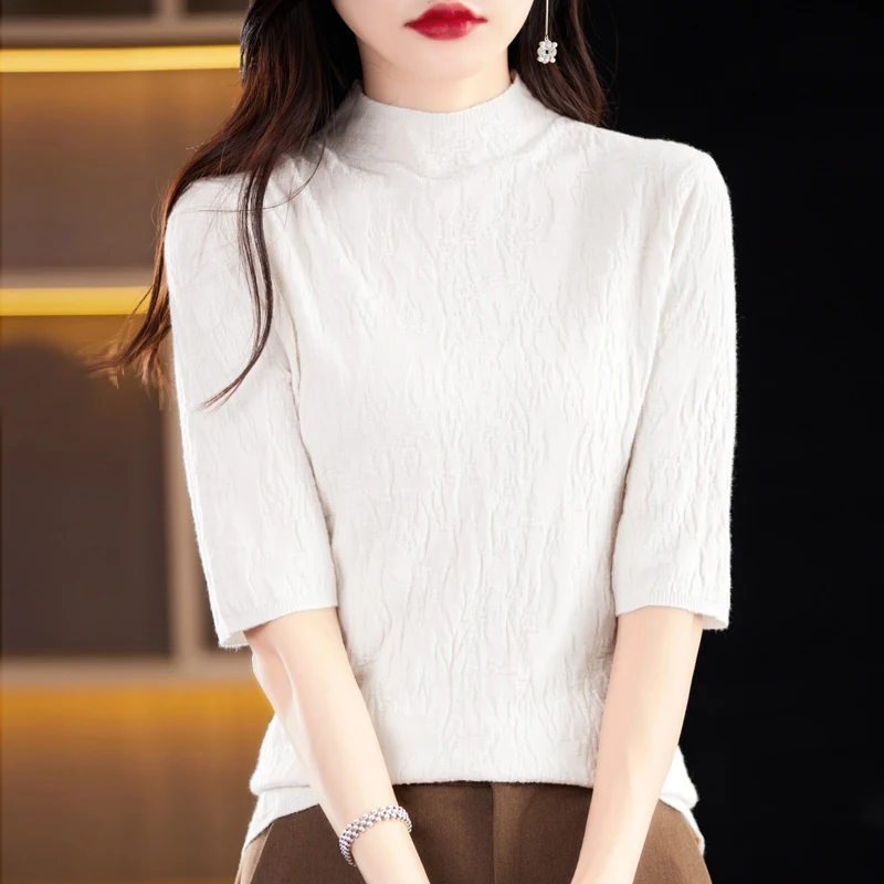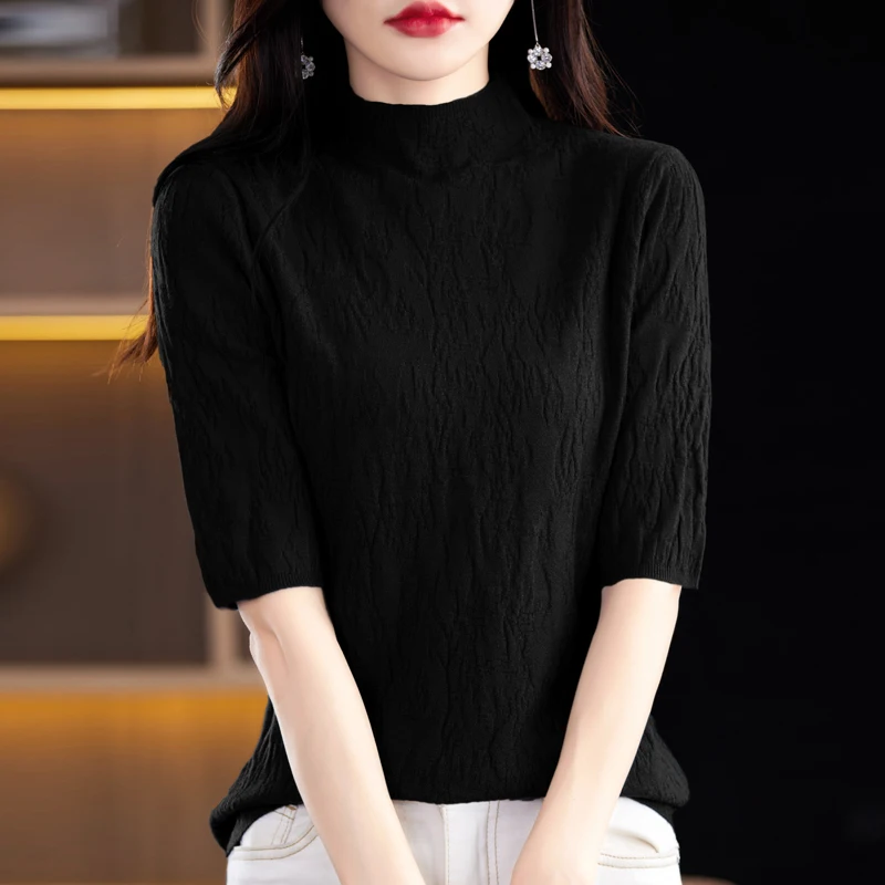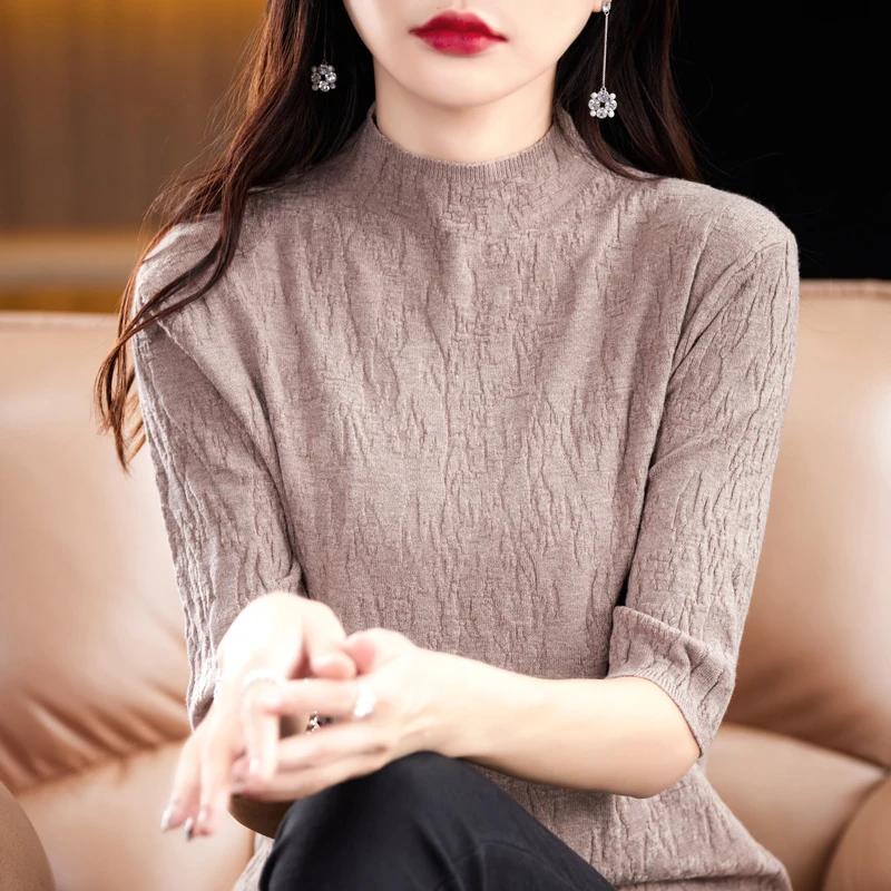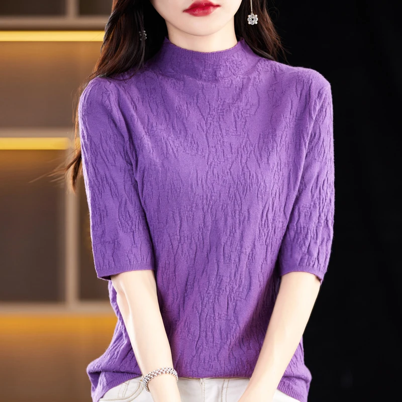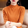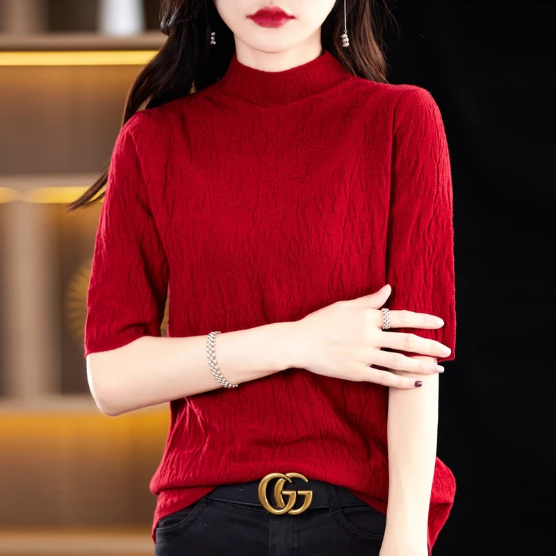 Women Sweater Mock Neck Short Sleeve Knitted Shirts Slim Fit Pullovers Stripe High Strecth Autumn Winter Warm Bottoming Shirts