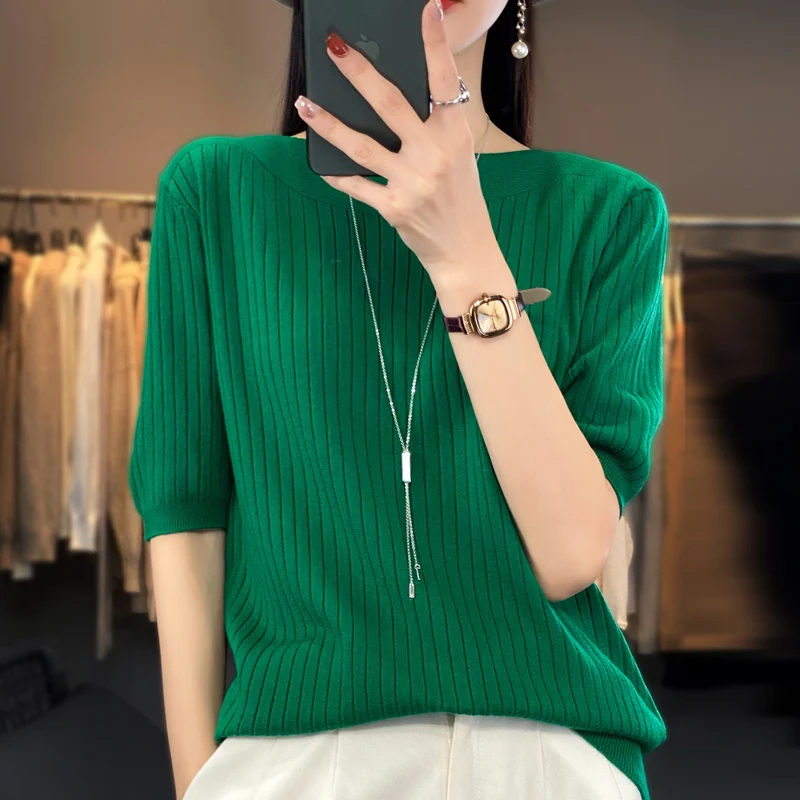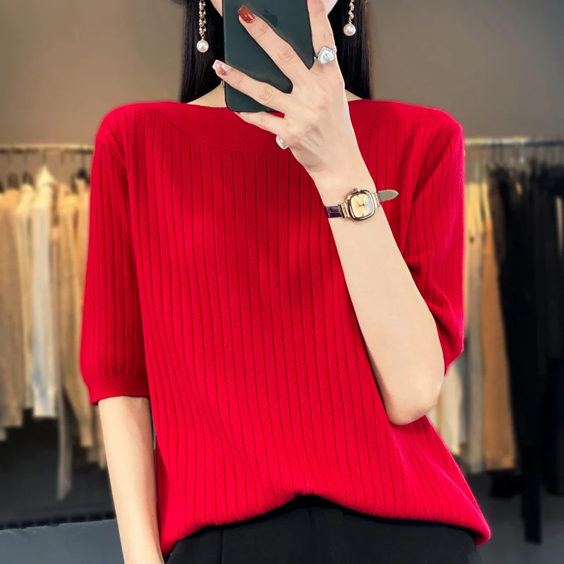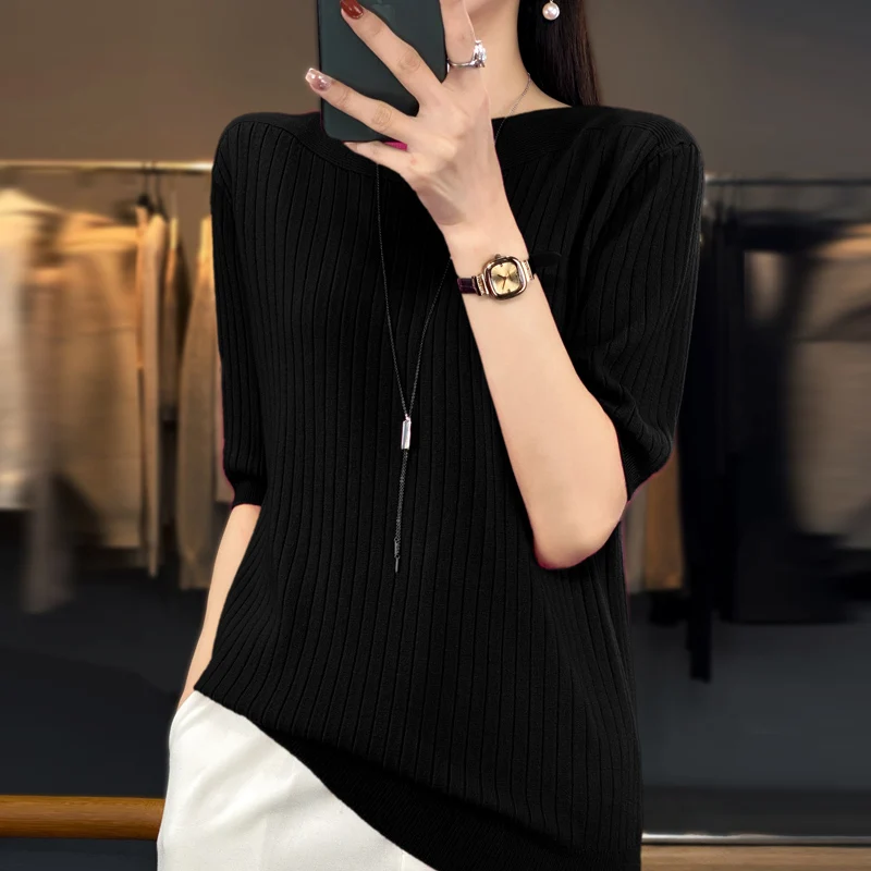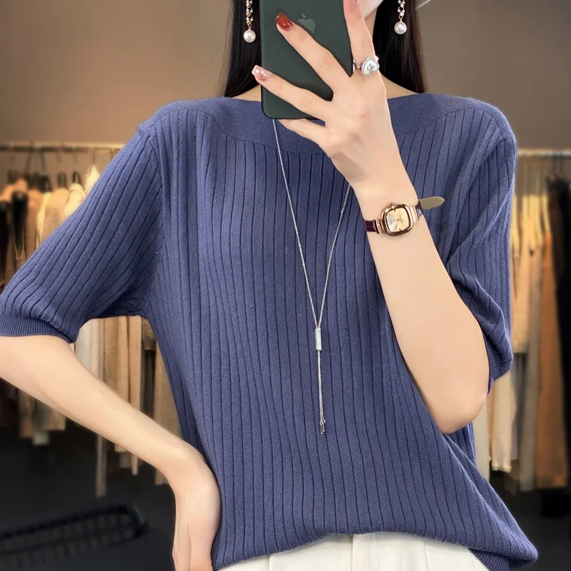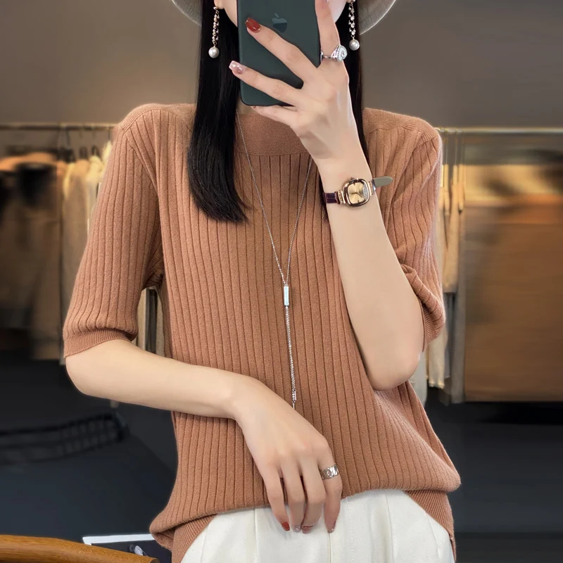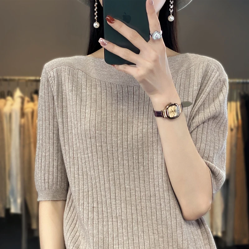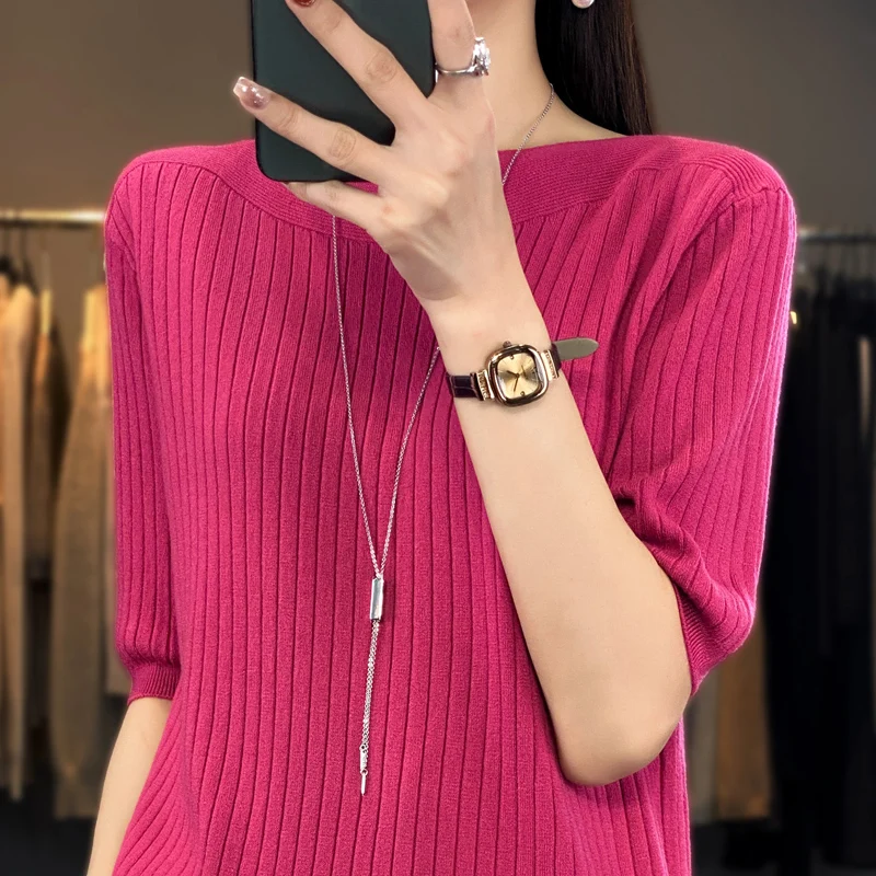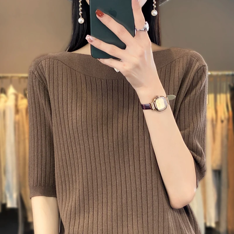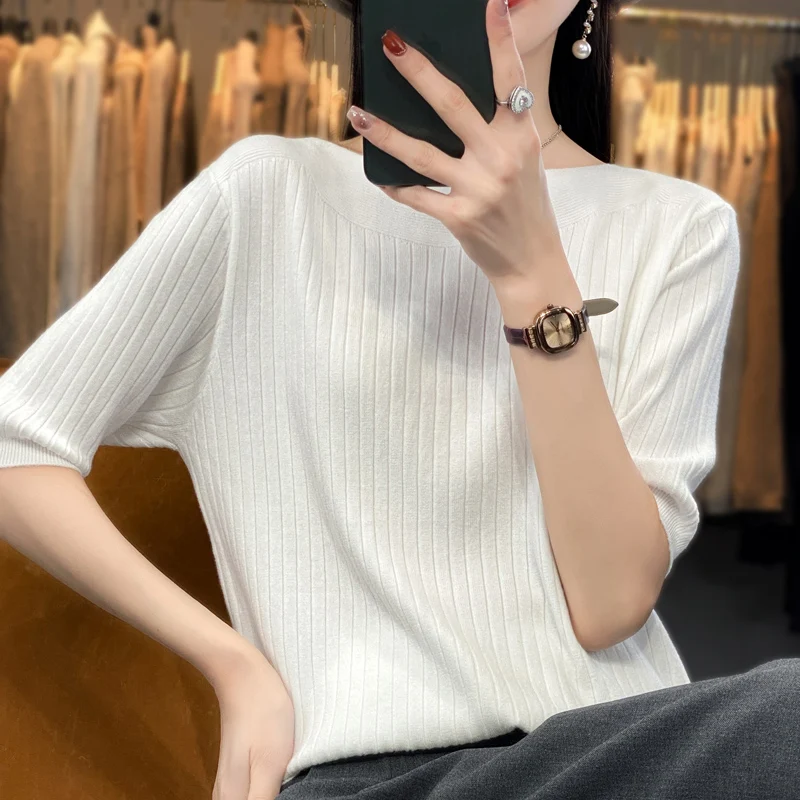 Women Sweater Spring Autumn Warm Bottiming Shirts Korean Fashion Slash Neck Half Sleeve Pullovers Slim Fit Casual Warm Knitwears