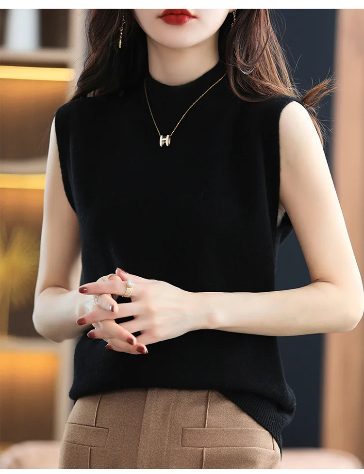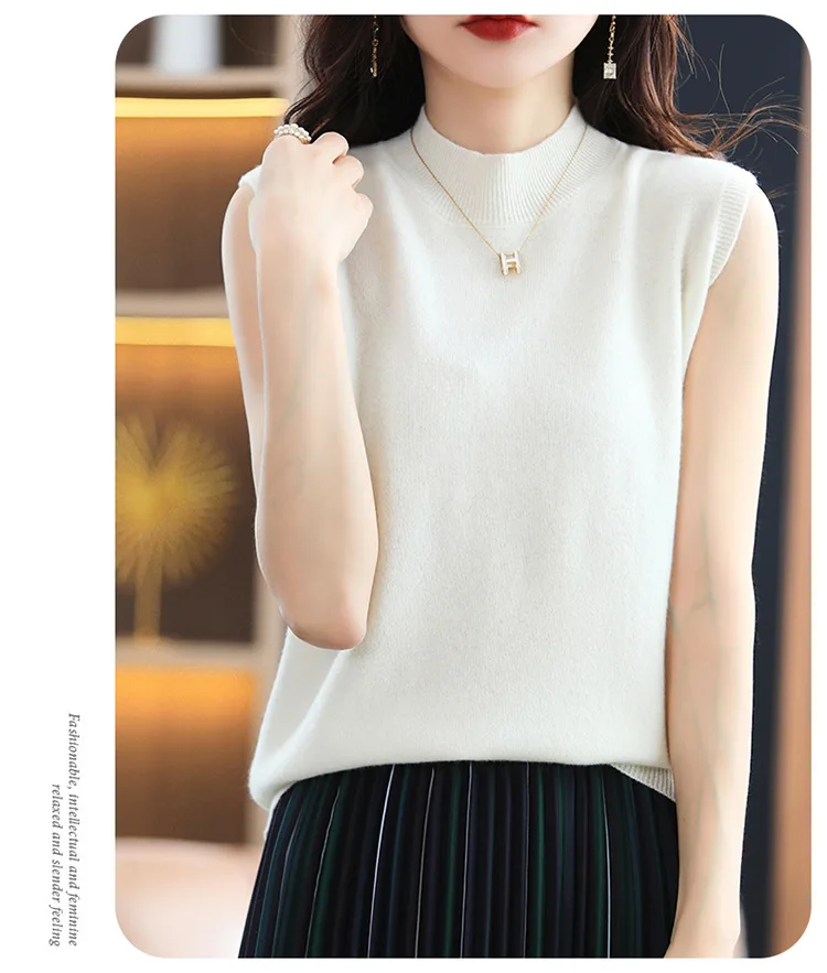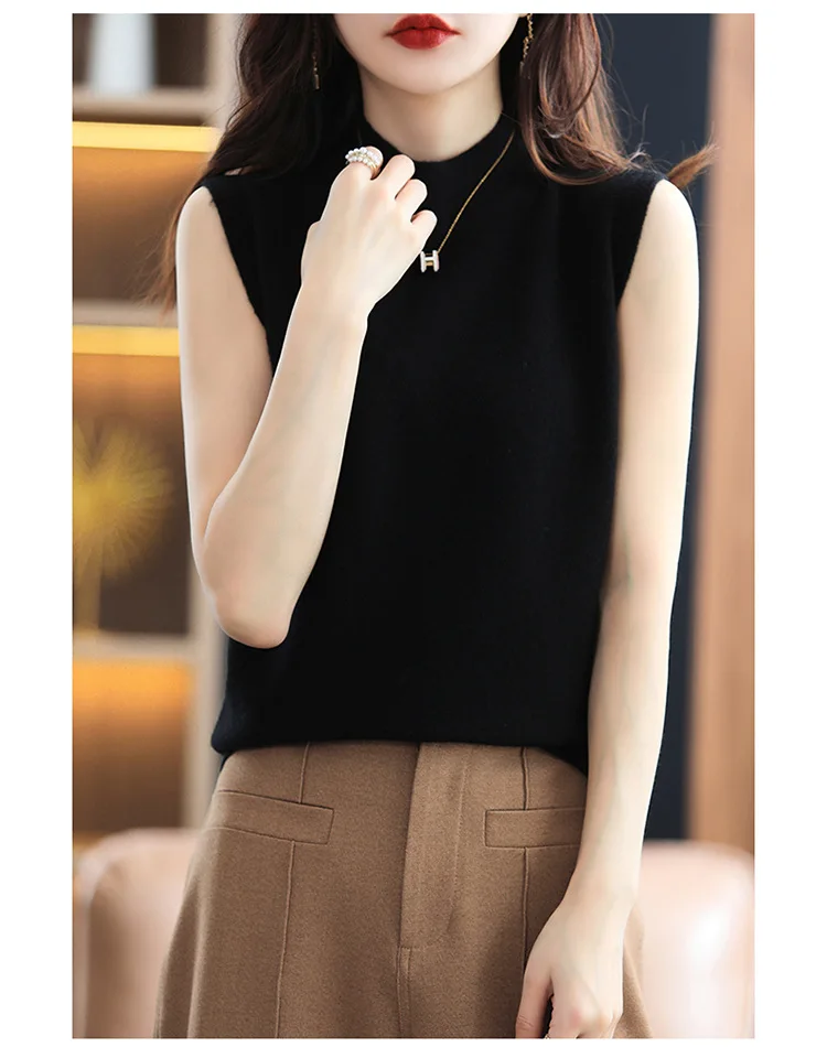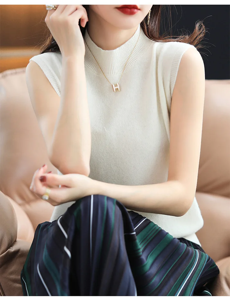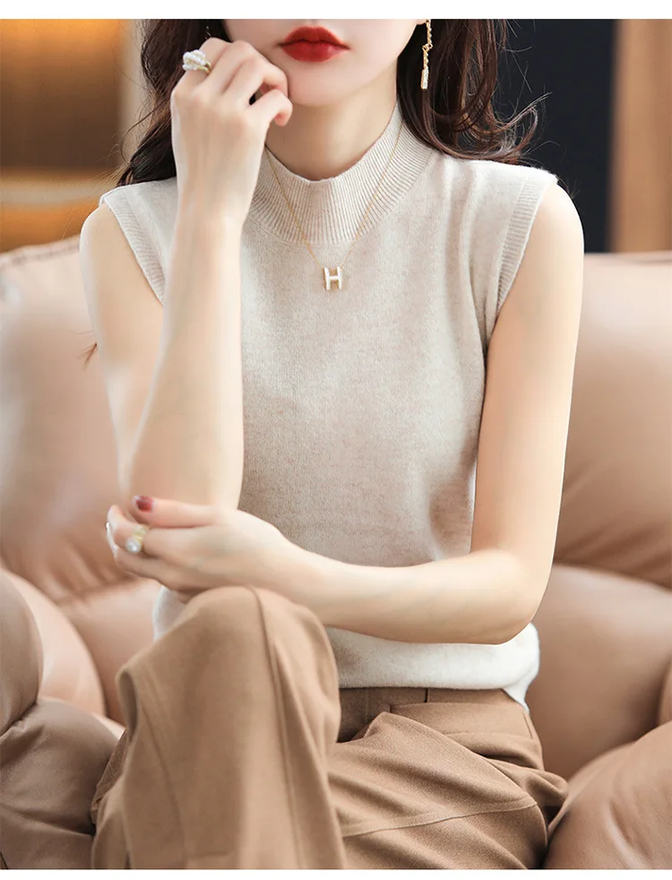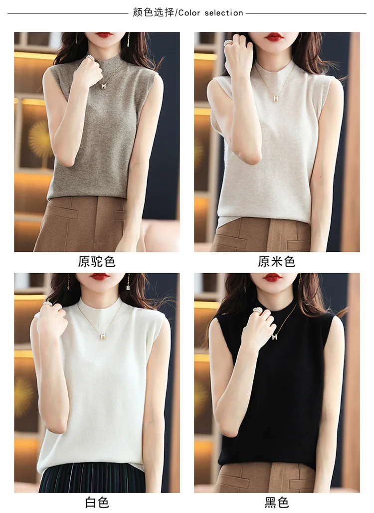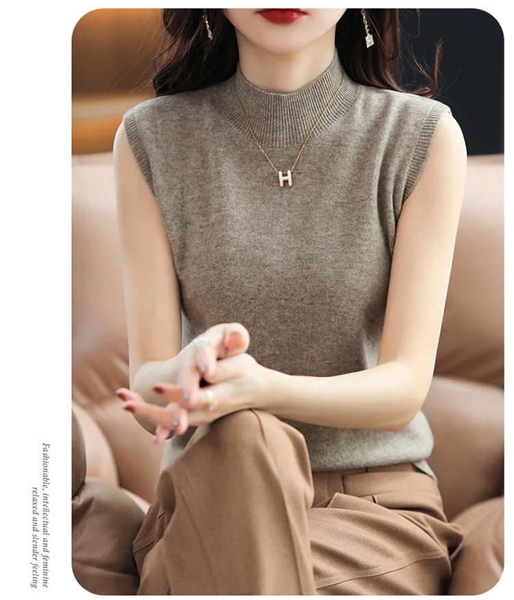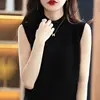 Women Sweater Vest Half High Collar Spring Autumn Slim Fit Knitwears Warm Pullovers Casual Knitted Tops Korean Fashion Jumpers