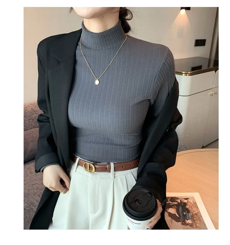 Women T-shirt Long Sleeve Velvet Warm High Strecth Slim Fit Bottoming Shirts Fashion Korean Turtleneck Autumn Winter Undershirts