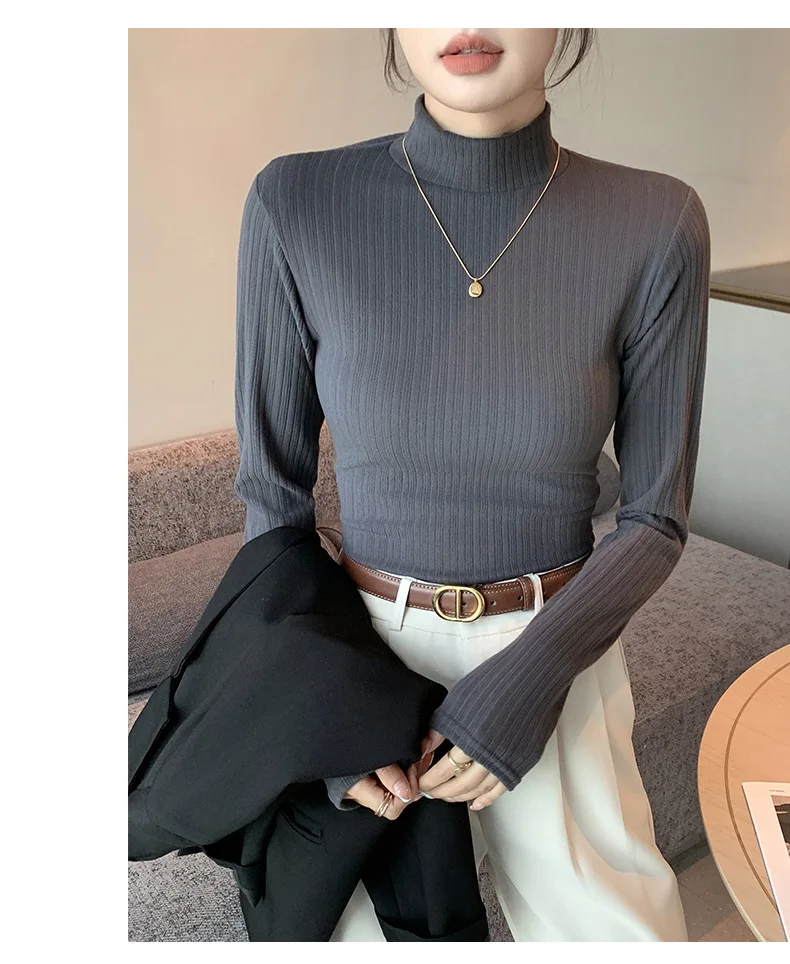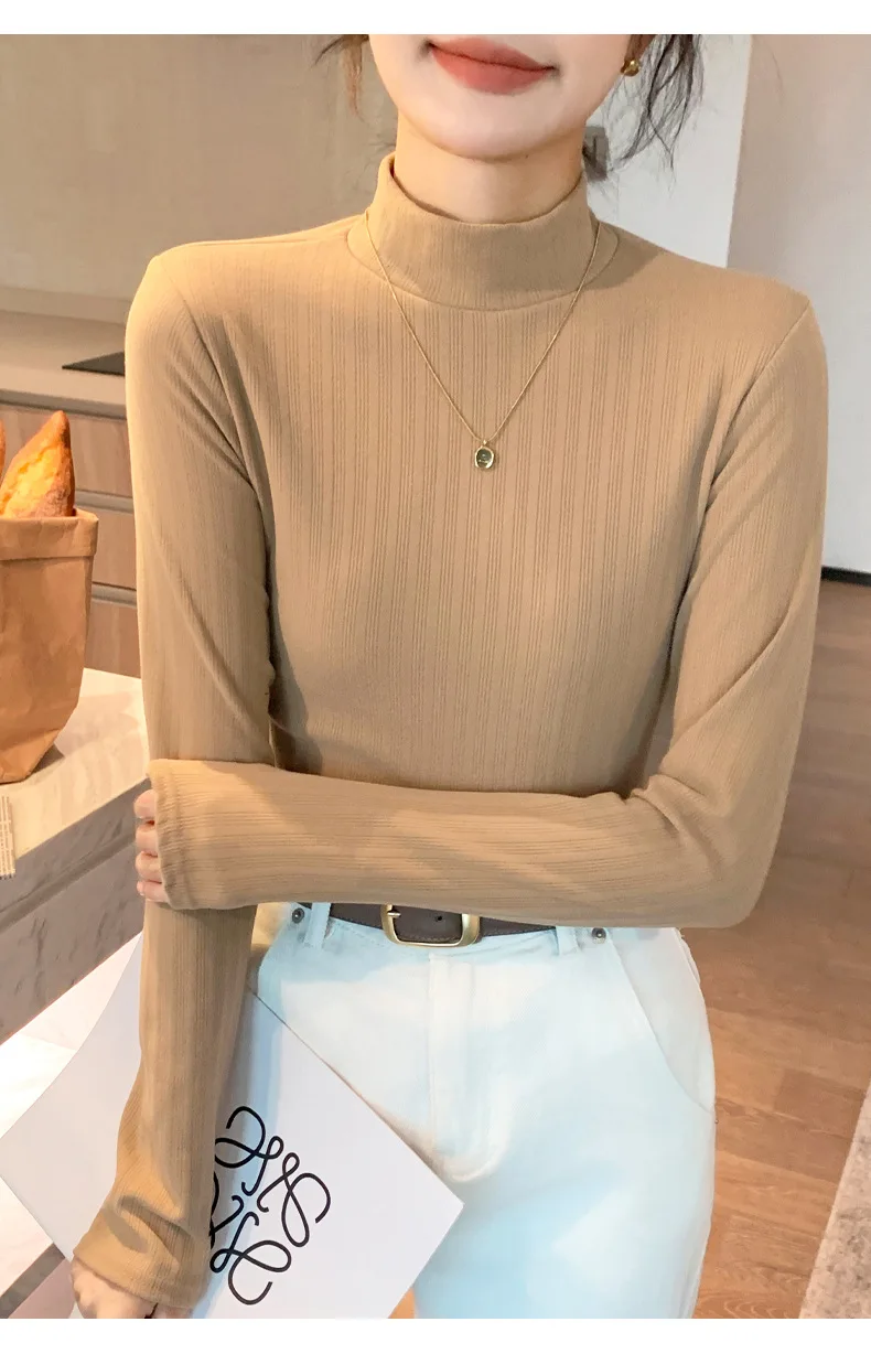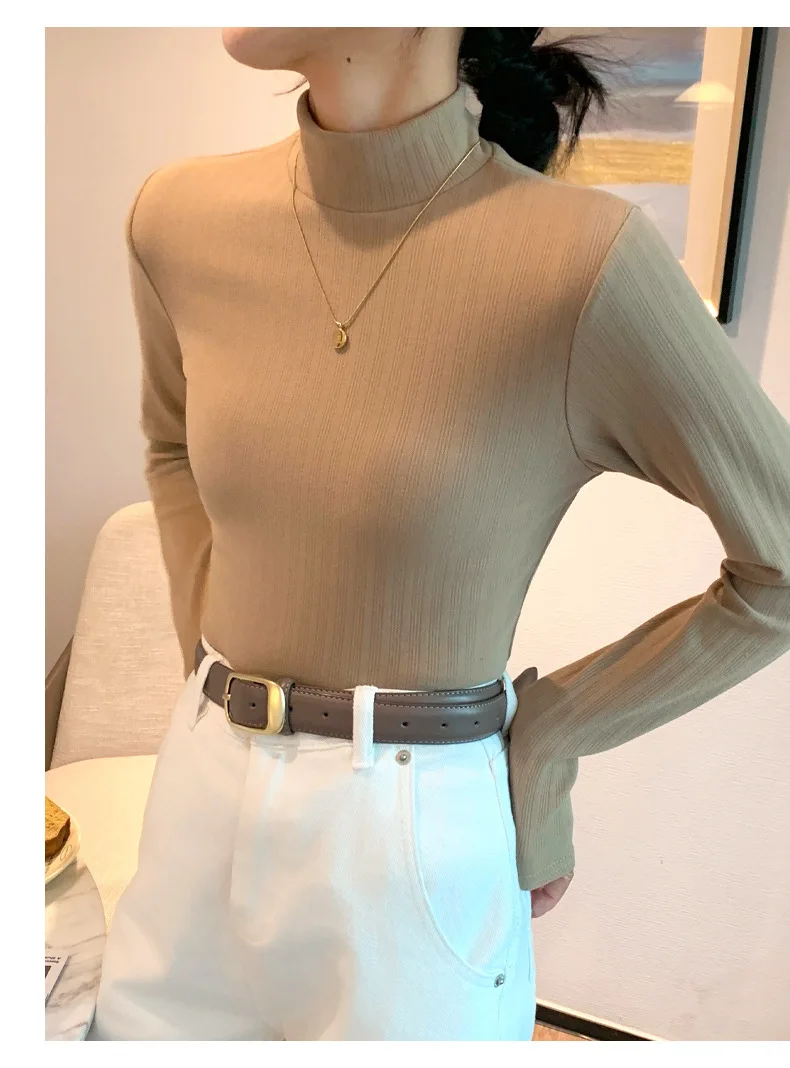 Women T-shirt Long Sleeve Velvet Warm High Strecth Slim Fit Bottoming Shirts Fashion Korean Turtleneck Autumn Winter Undershirts
