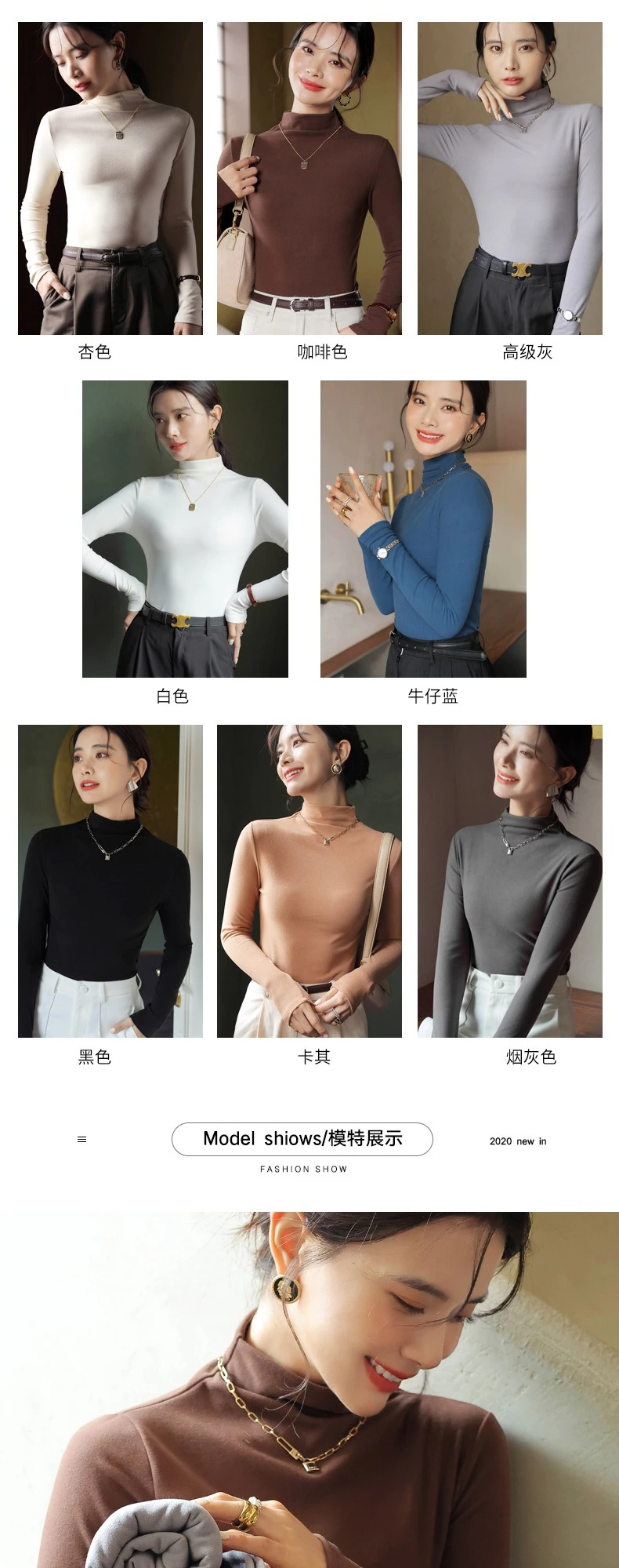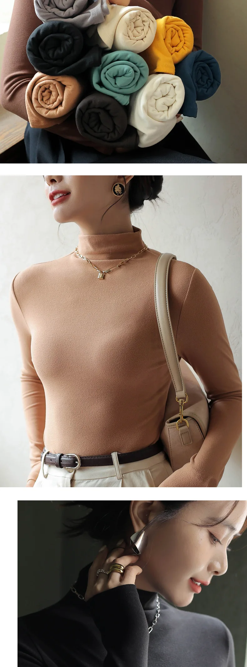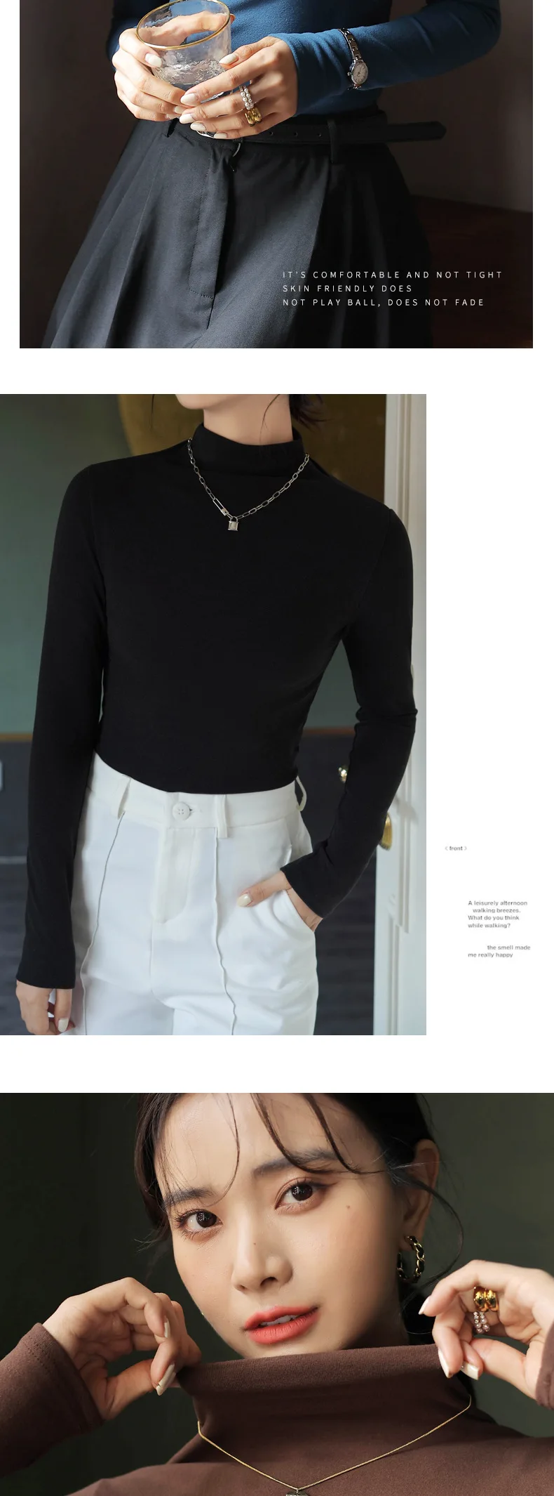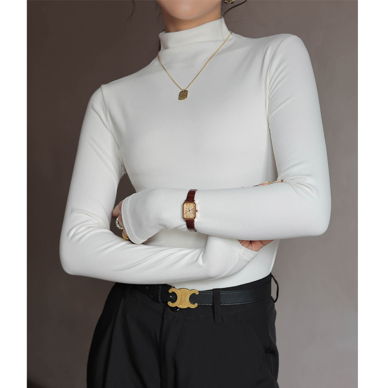 Women T-shirt Warm Long Sleeve Autumn Winter Turtleneck Bottoming Shirt Fashion Black Korean Undershirt High Strecth Inner Tops