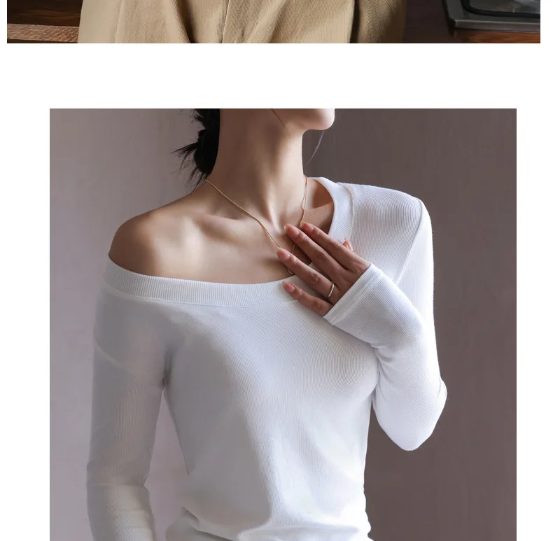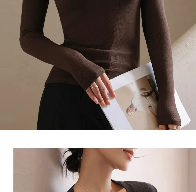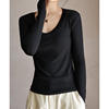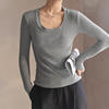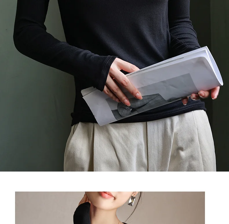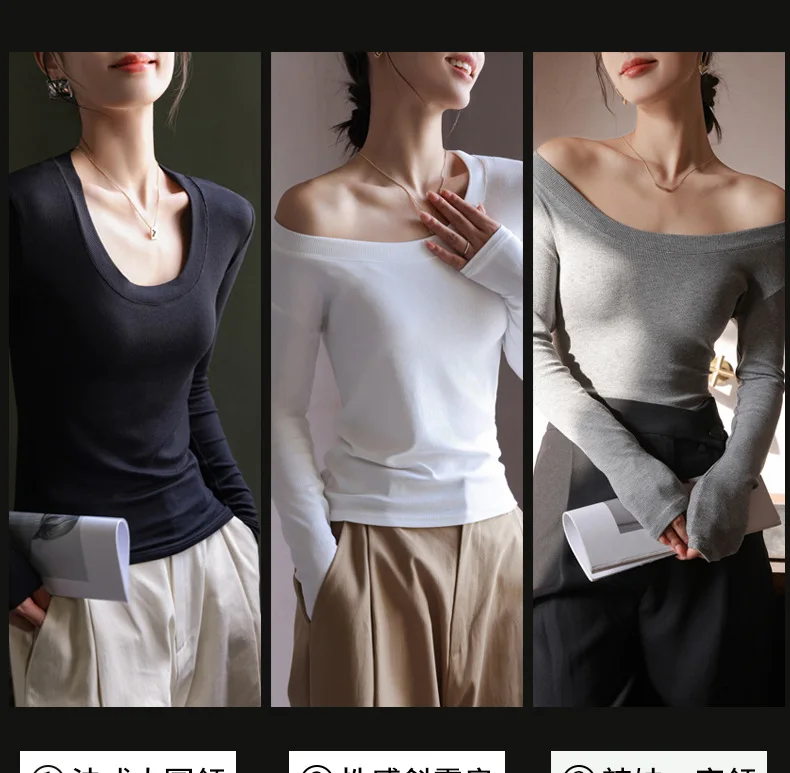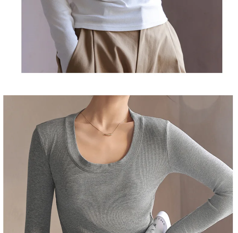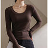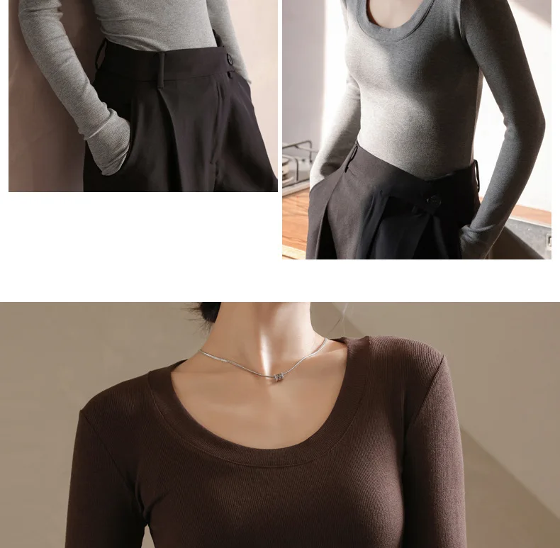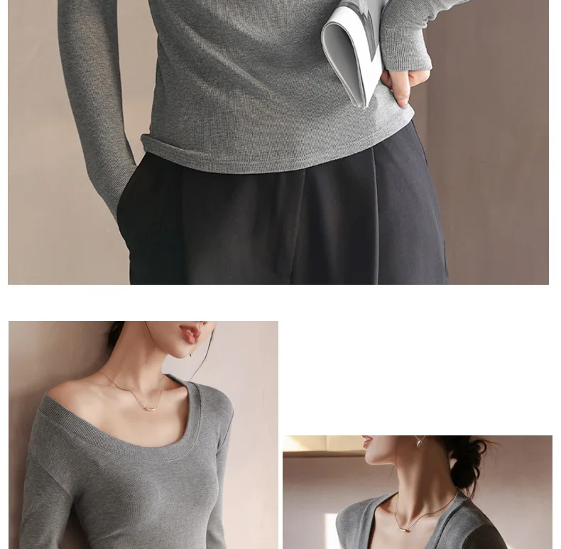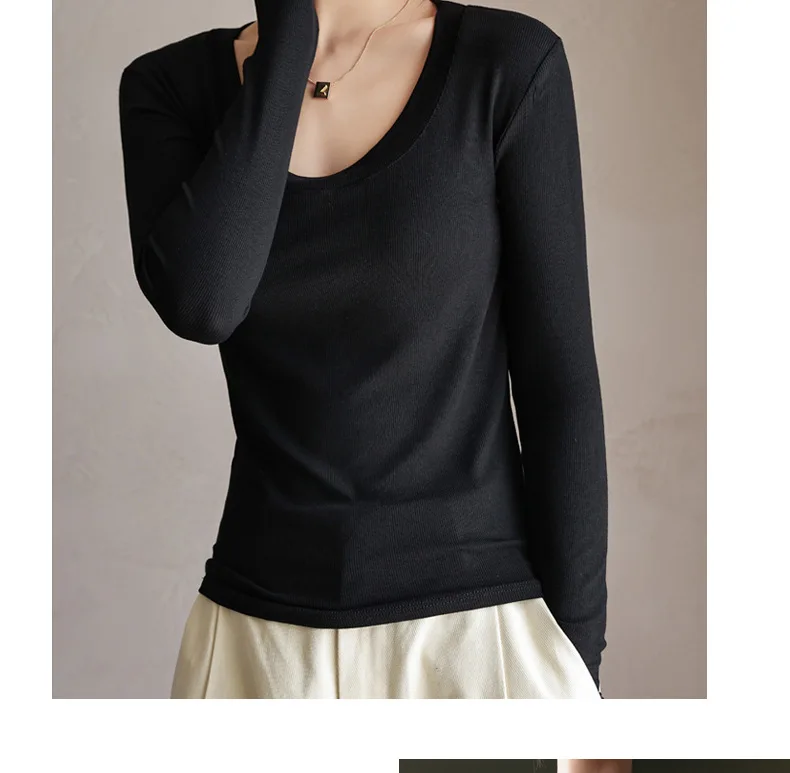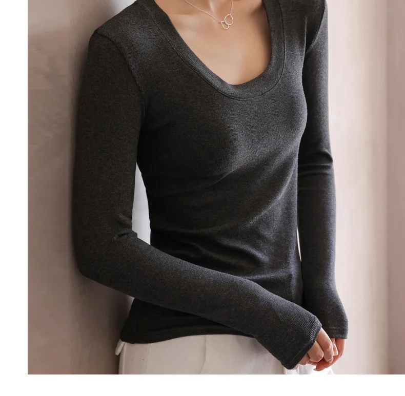 Women T-shirts Fashion Korean Long Sleeve High Strecth Slim Fit Under Shirts Big U-collar Autumn Winter Inner Basic Knitted Top
