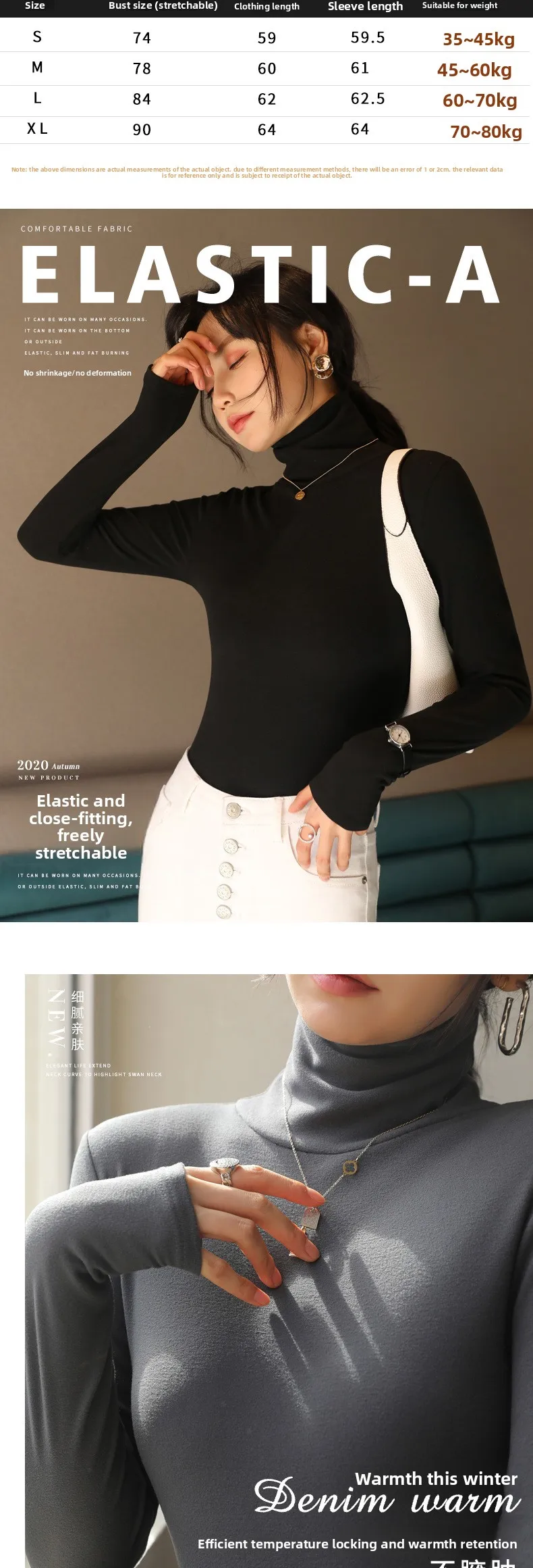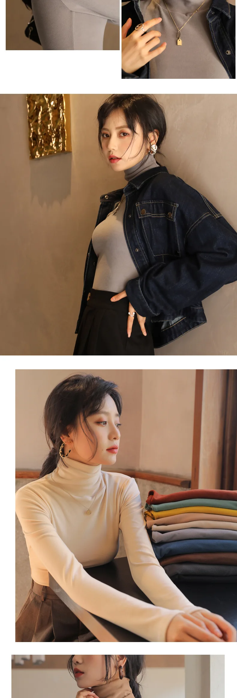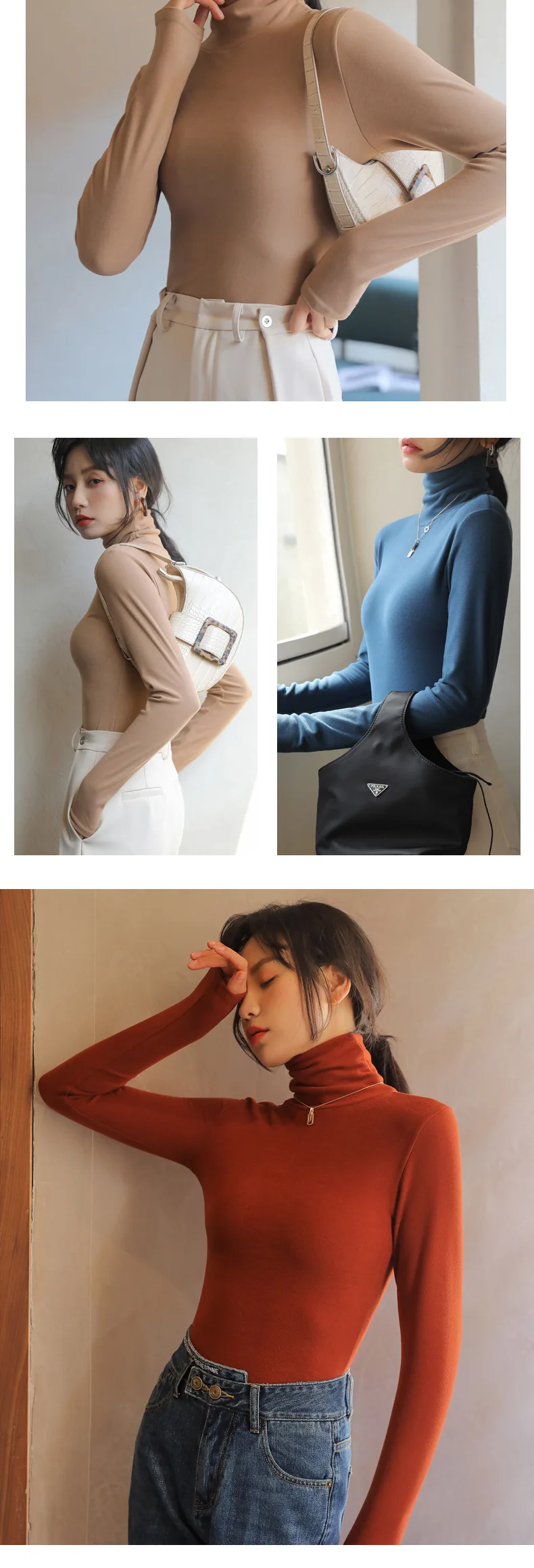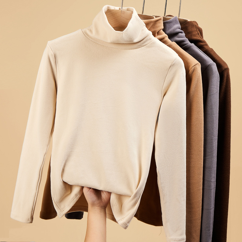 Women T-shirts Long Sleeve High Strecth Slim Fit Bottoming Shirts Casual Korean Turtleneck Warm Solid Autumn Winter Undershirts