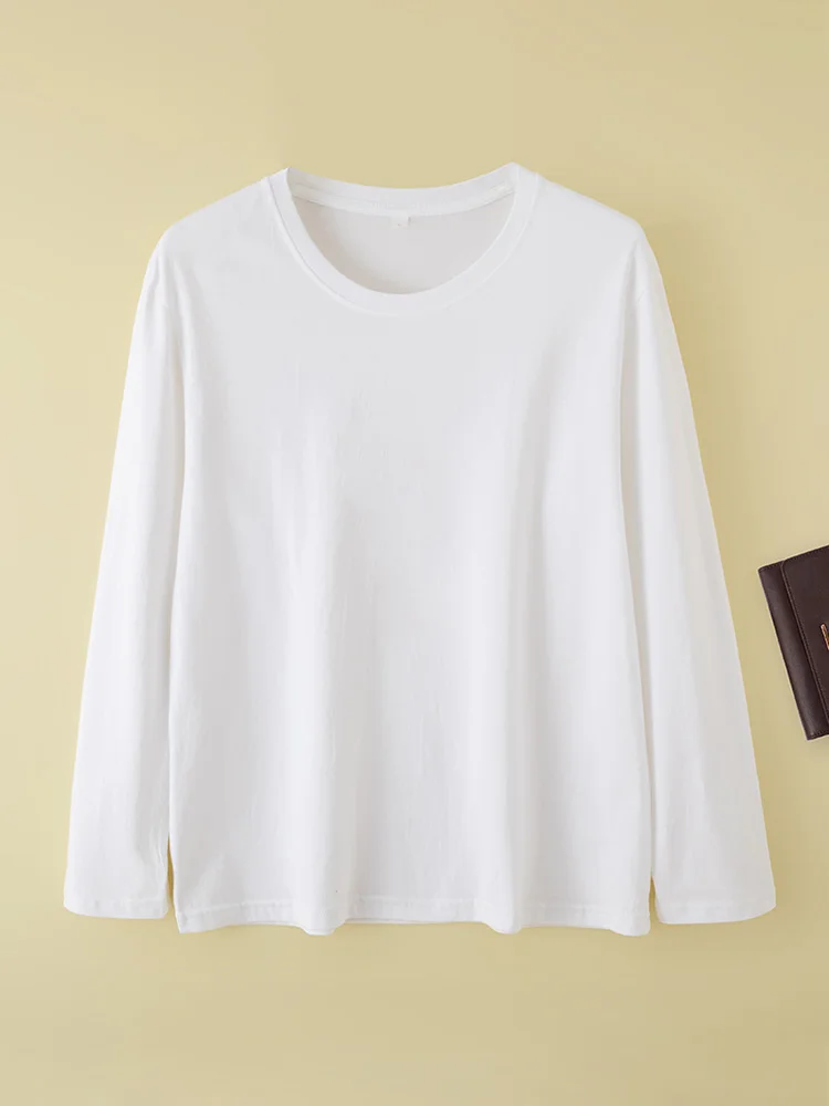 Women T-shirts Long Sleeve Solid O-neck Tops Cotton White Bottoming Shirts Spring Autumn T-shirts Harajuku Tees Loose Tshirt