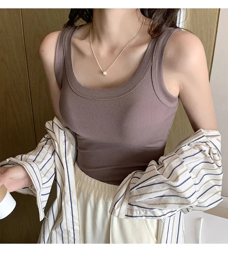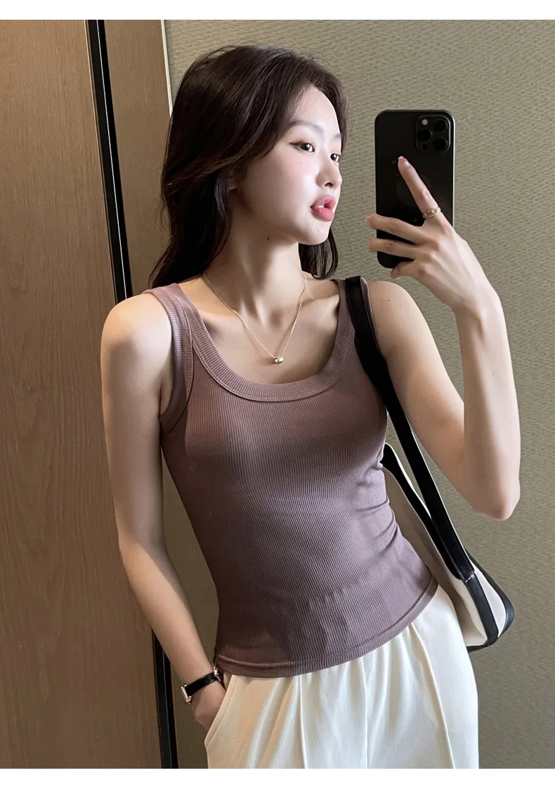 Women Tank Tops 2025 High Strecth Knitted Bottoming Shirt Soft Korean Fashion Undershirt Inner Wear Casual Ladies Tank Tops