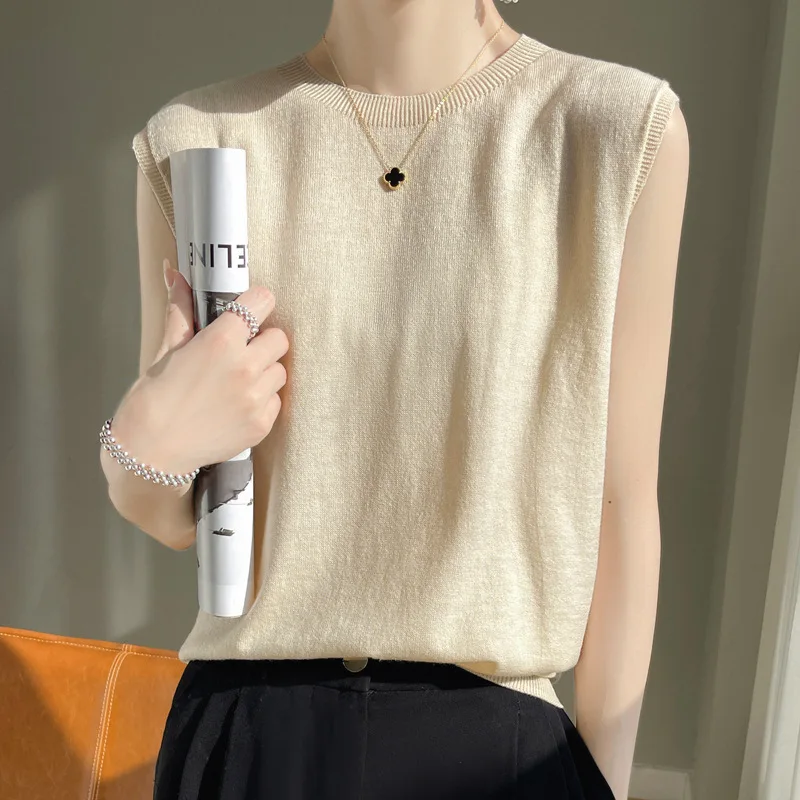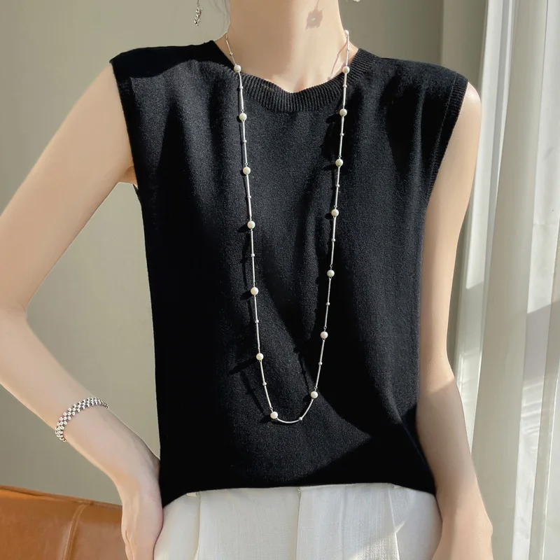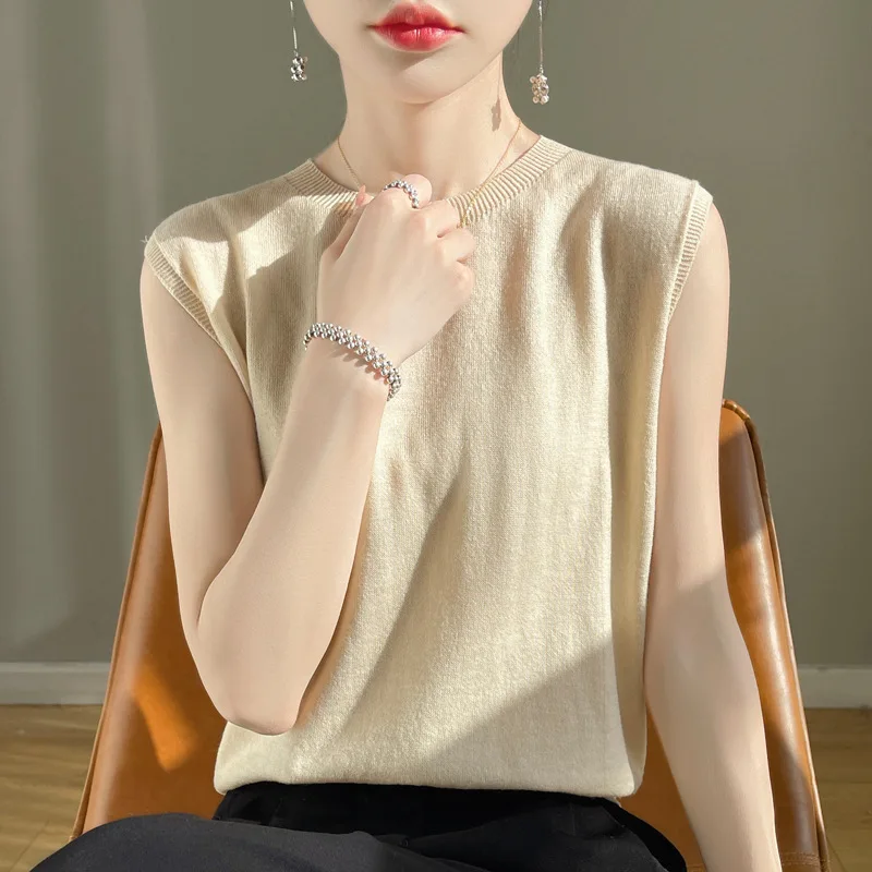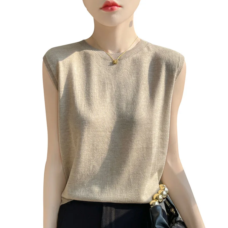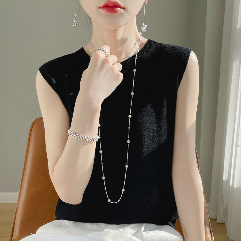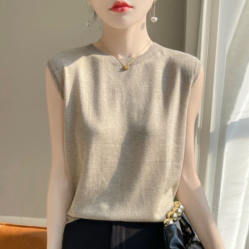 Women Tops Knitted Tank Tops O-neck Sleeveless Bottoming Shirts Spring Summer Tank Top Solid Soft Korean Fashion Lady Knit Top