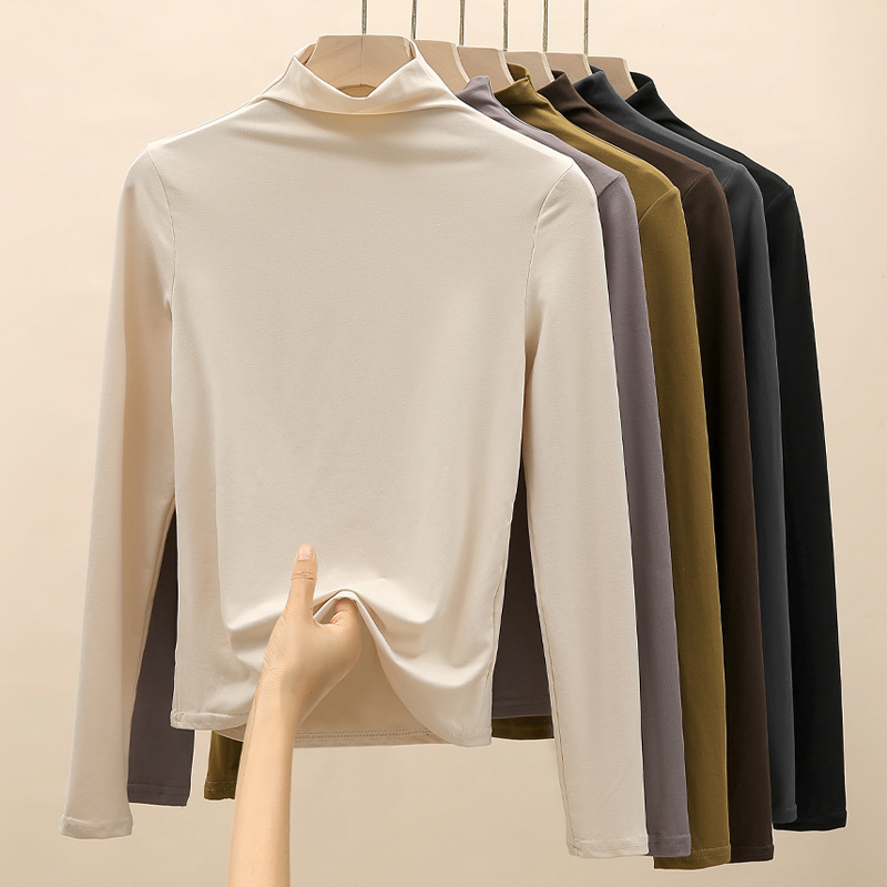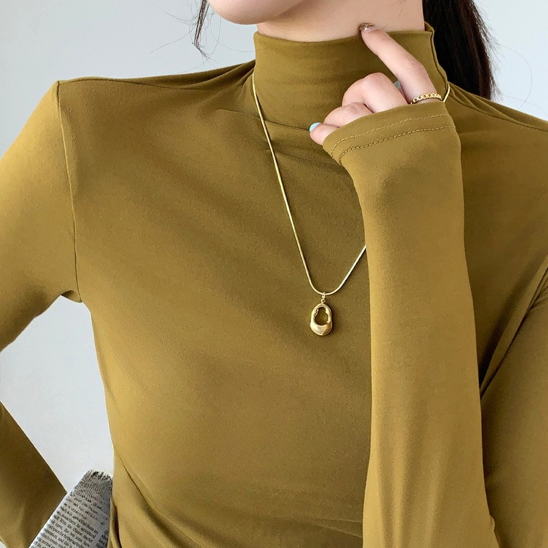 Women Turtleneck T-shirt Fashion Korean Solid Long Sleeve Autumn Winter Innerwear Bottming Shirt High Strecth Basic Under Shirt
