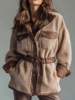 Women Winter Faux Lamb Furry Coat Lapel Spliced ​​PU Leather Thick Overcoat Female Fashion Long Sleeve Belt Retro Jacket