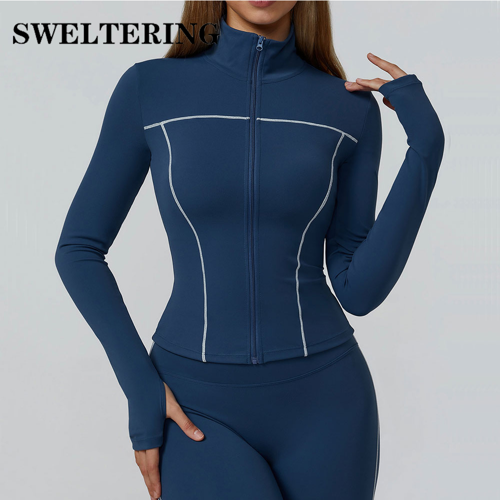 Women Yoga Long Sleeve Sports Zipper Jacket Gym Fitness Yoga Shirt Workout Top Female Running Push Up Cycling Coats Activewear