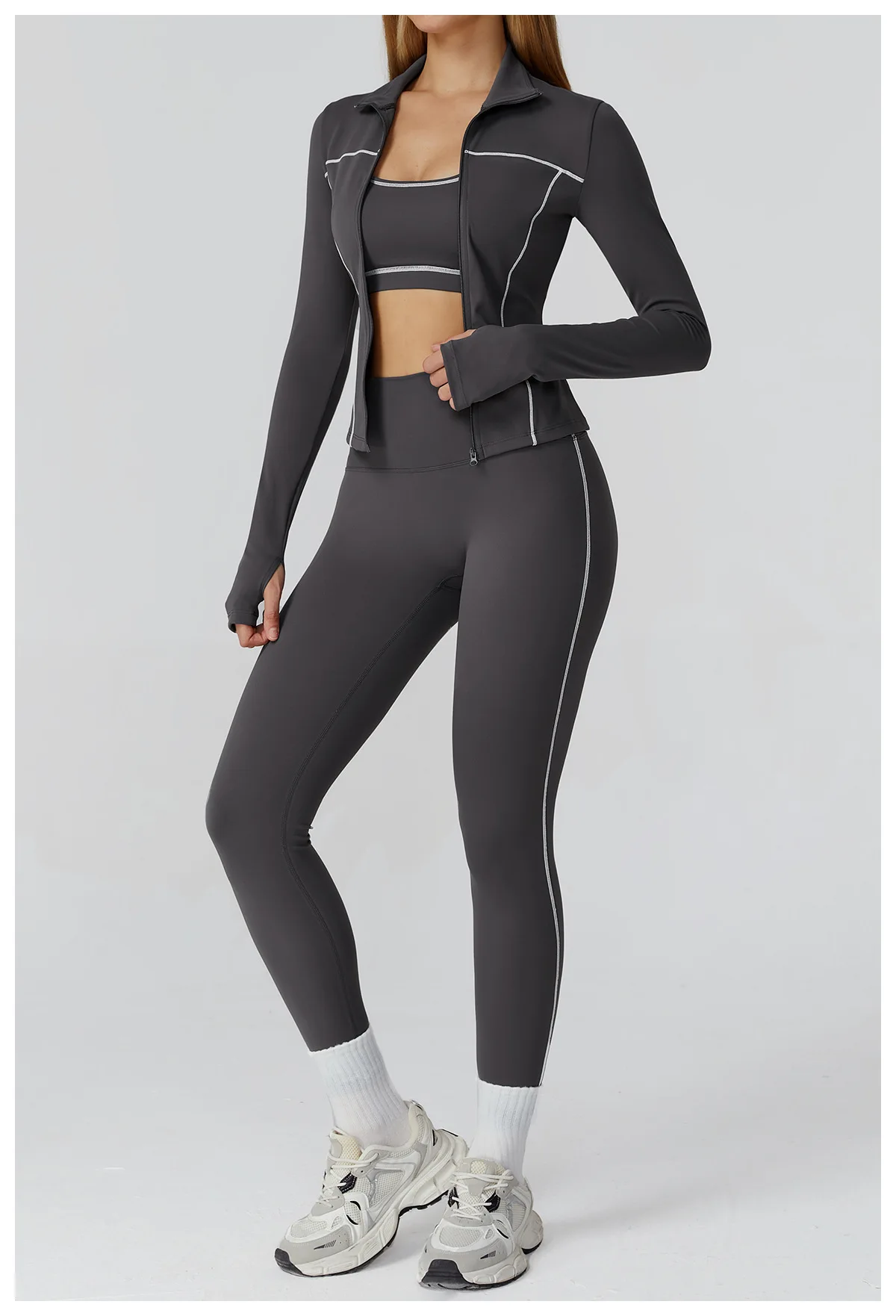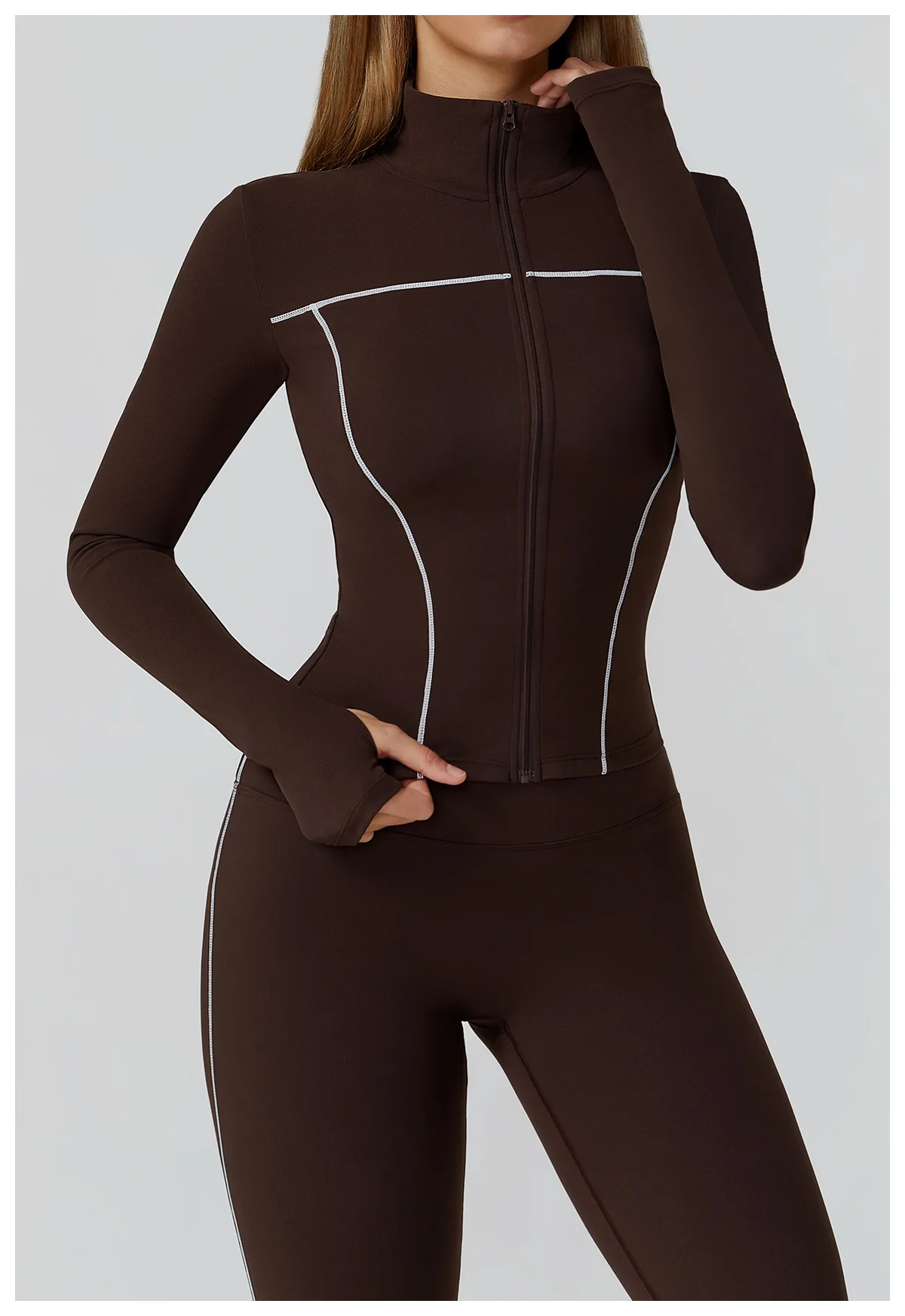 Women Yoga Long Sleeve Sports Zipper Jacket Gym Fitness Yoga Shirt Workout Top Female Running Push Up Cycling Coats Activewear