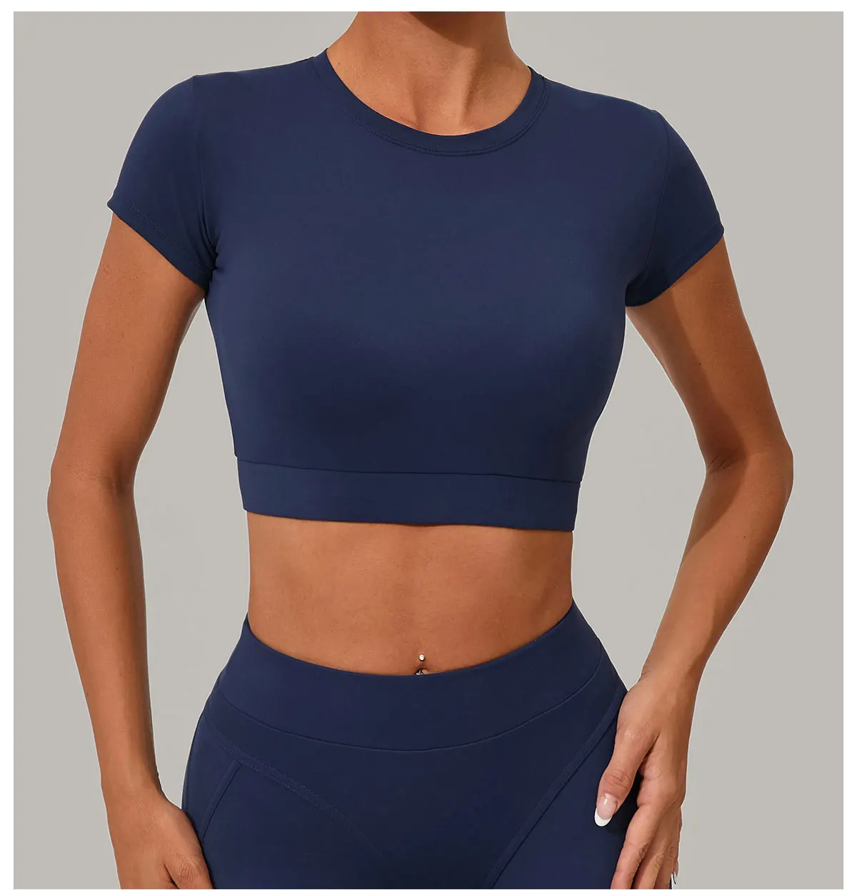Women Yoga Top Sport T-Shirts Exercise Fitness Clothes Short Sleeve Yoga Shirt Gym Top Running Quick Drying Workout Sport Top
