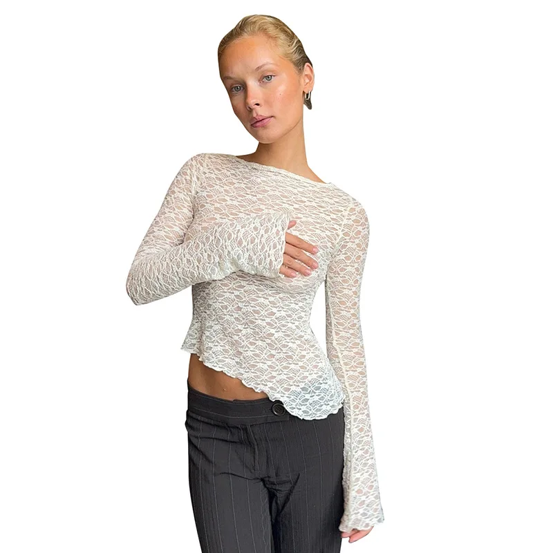 Women’s Autumn Low-Cut T-shirt Sexy Solid Color Elegant Streetwear Long Sleeve Casual Slim Fit Versatile Female Tees