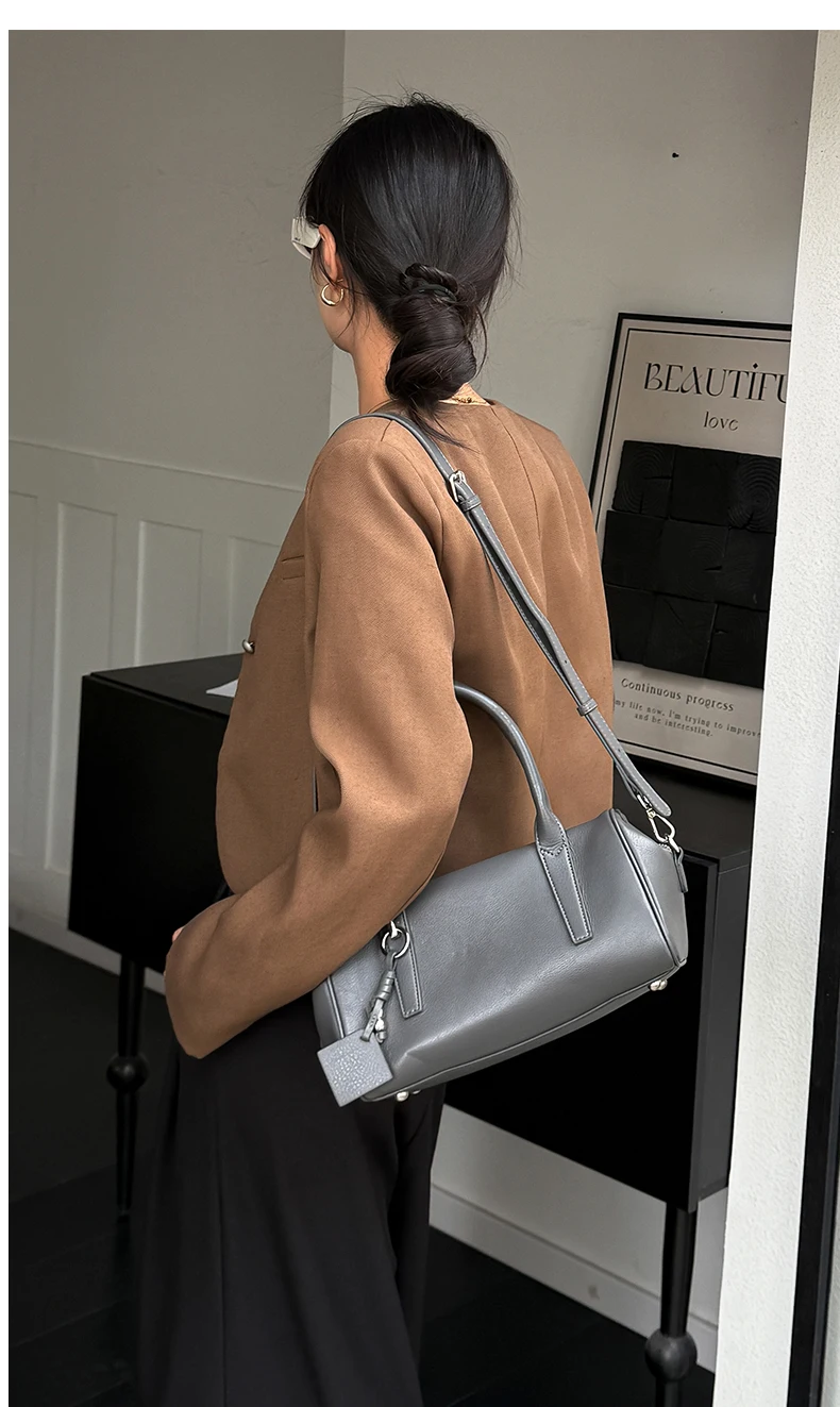 Women’s Coffee Cowhide Genuine Leather Shoulder Bags Female Designer Retro Boston Tote Soft Matte Crossbody Cow Leather Bag