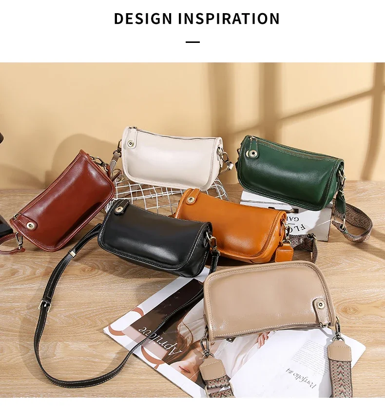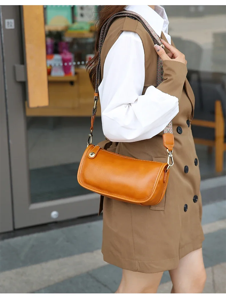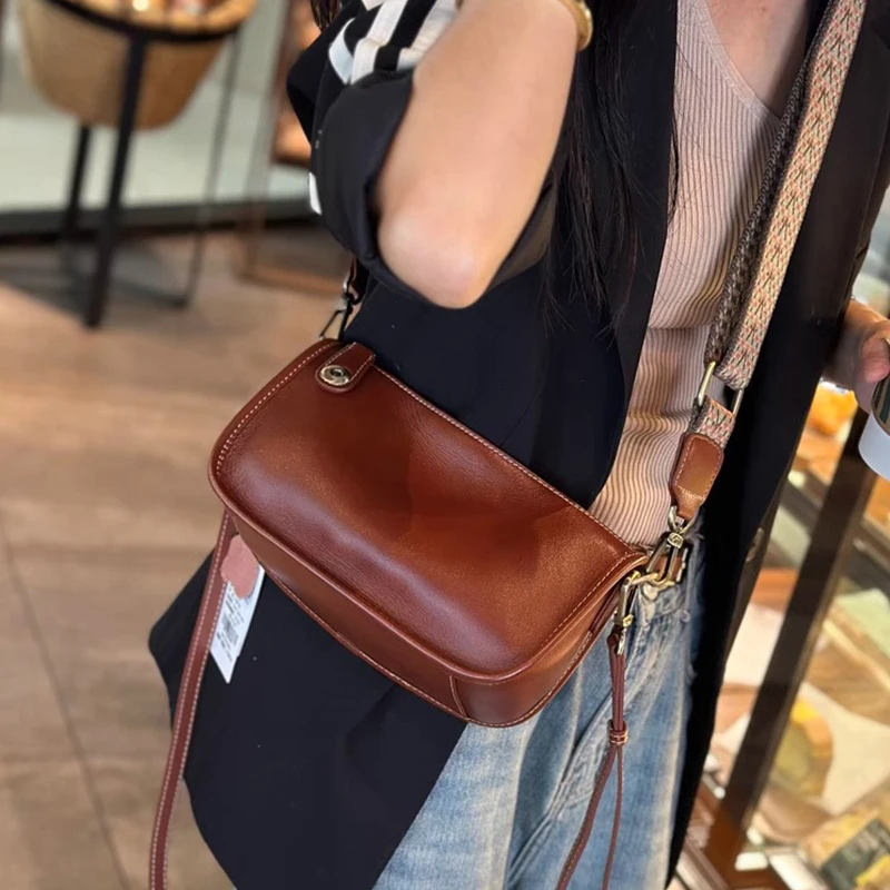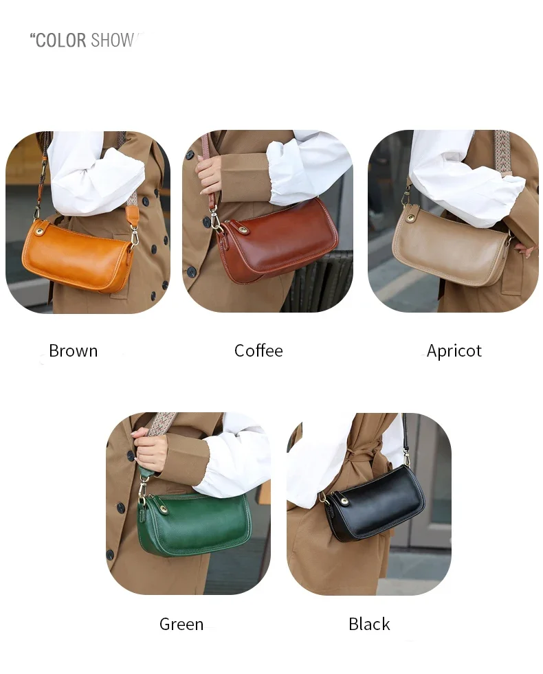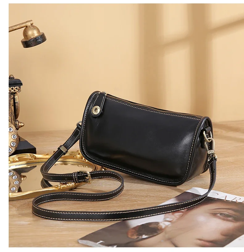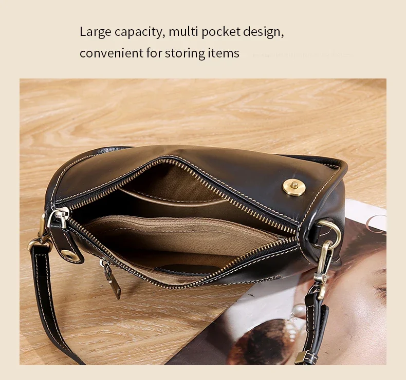 Women’s Cowhide Underarm Shoulder Bag Ladies Fashion Cow Genuine Leather Crossbody Messenger Bag Designer Luxury Retro Handbag