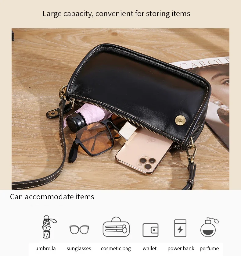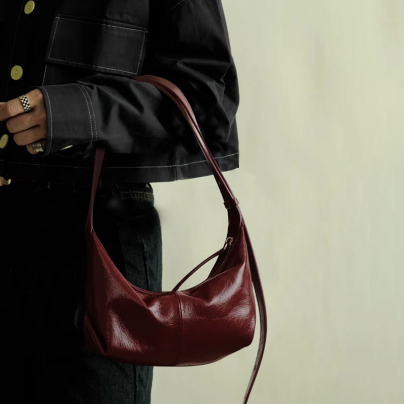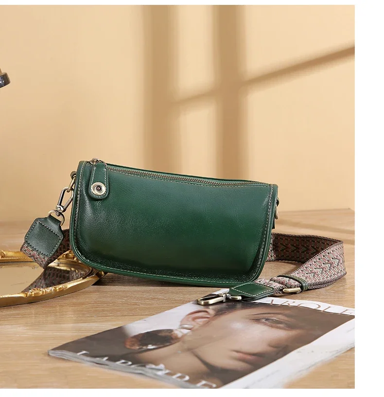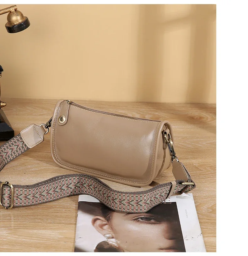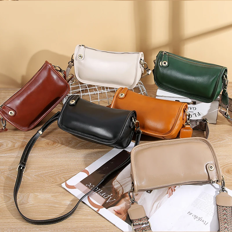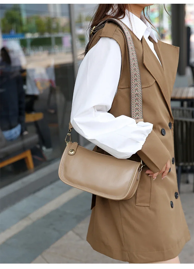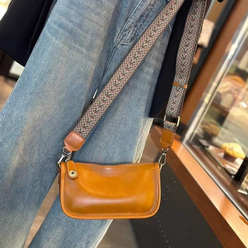 Women’s Cowhide Underarm Shoulder Bag Ladies Fashion Cow Genuine Leather Crossbody Messenger Bag Designer Luxury Retro Handbag