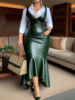 Womens Dresses New V Neck Zipper Sleeveless PU Leather Pocket Skinny Belted Female Maxi Fishtail Dress Does Not Include Shirt