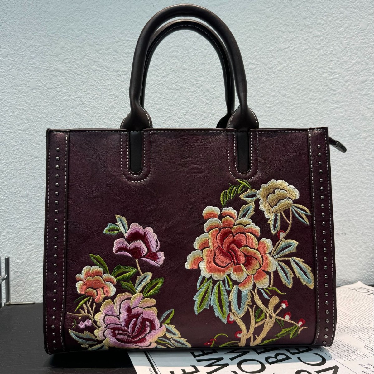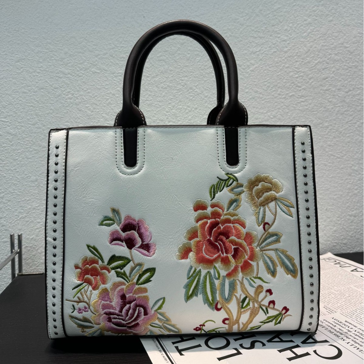 Women’s Embroidered Shoulder Bag Large Floral Leather Crossbody Purse Luxury Designer Handbag for Ladies High Quality