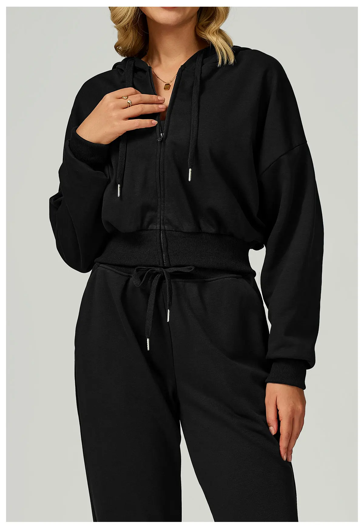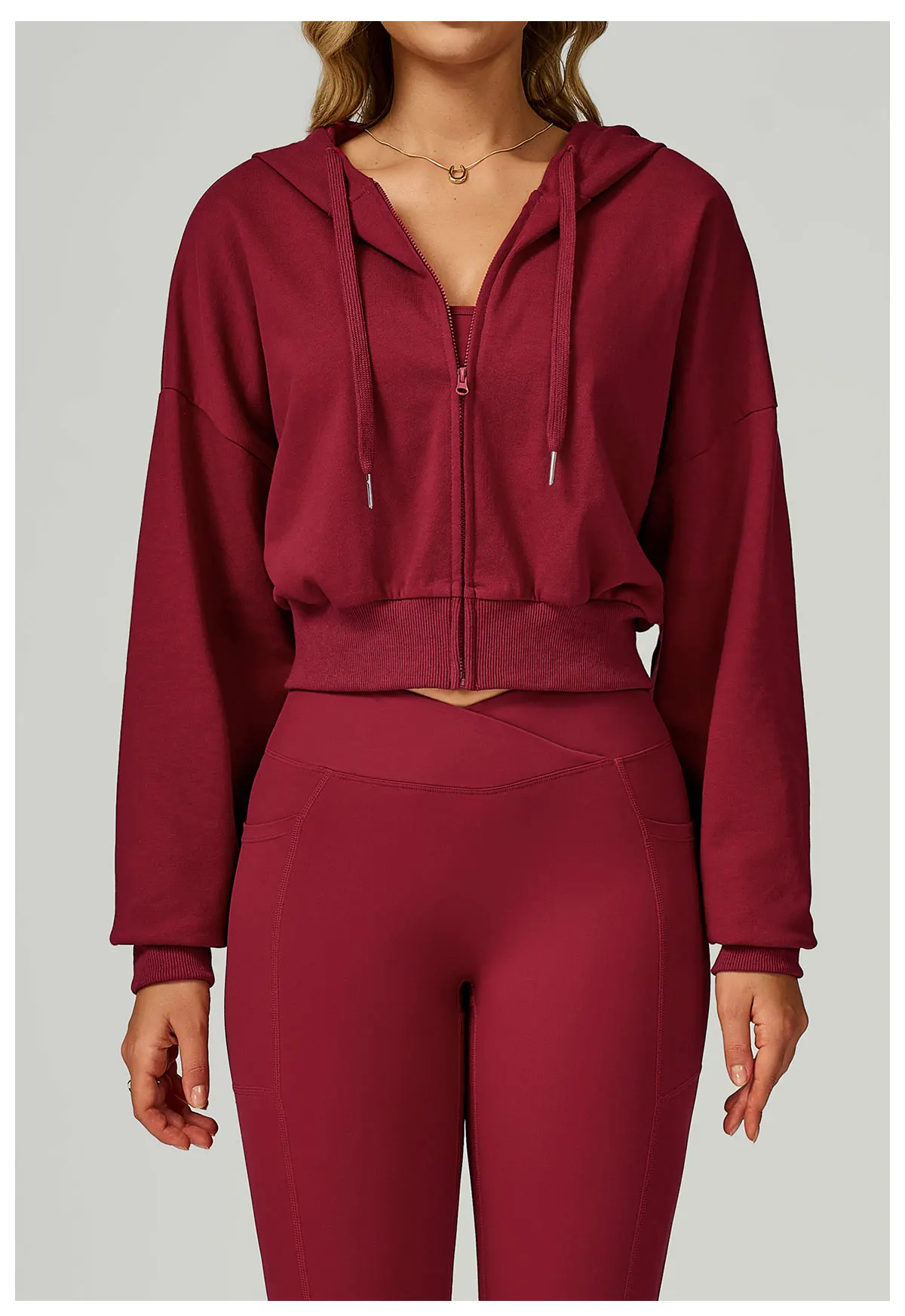 Women’s Fitness Coat Hooded Cardigan Autumn and Winter Jacket Female Workout Yoga Long Sleeve Gym Running Training Sports Top