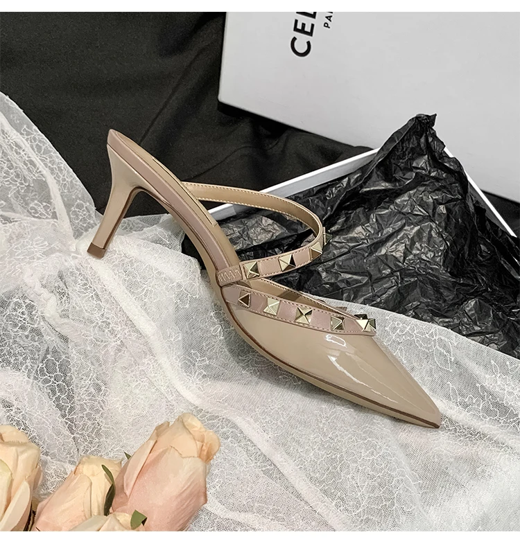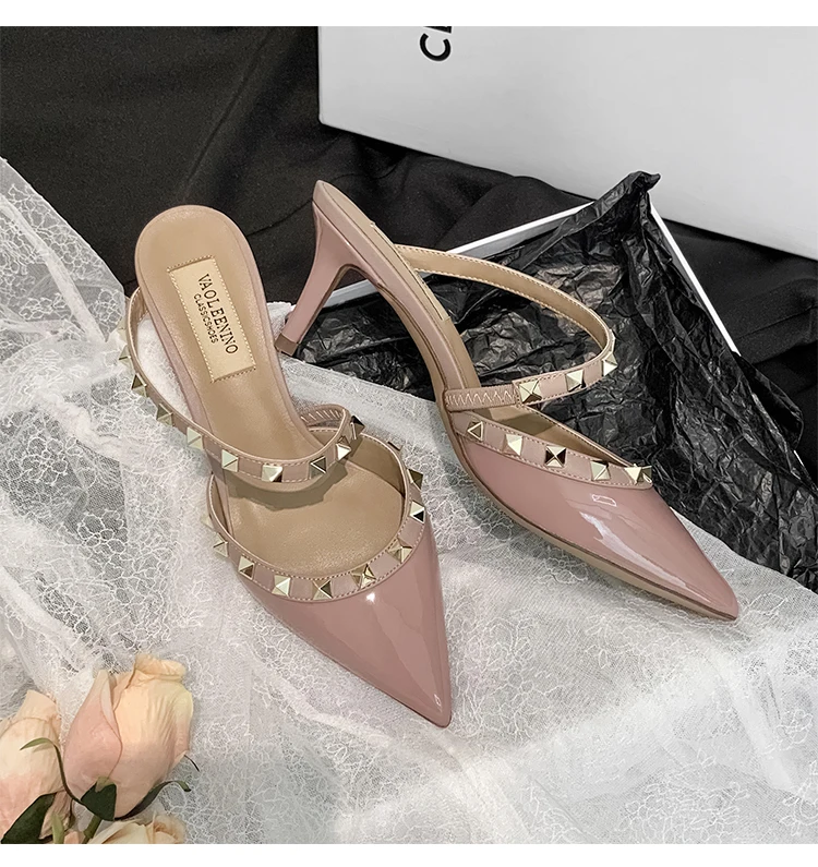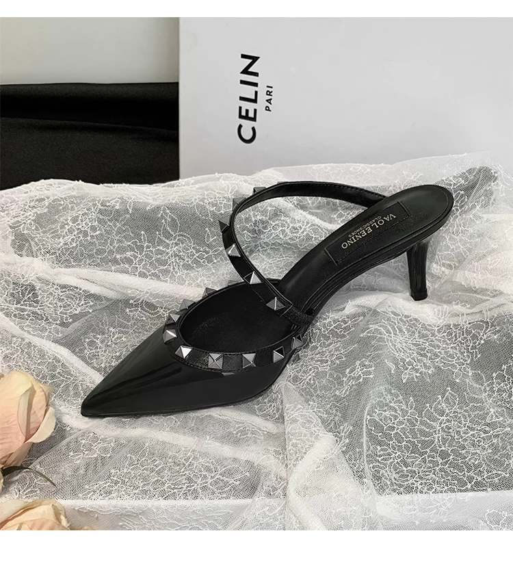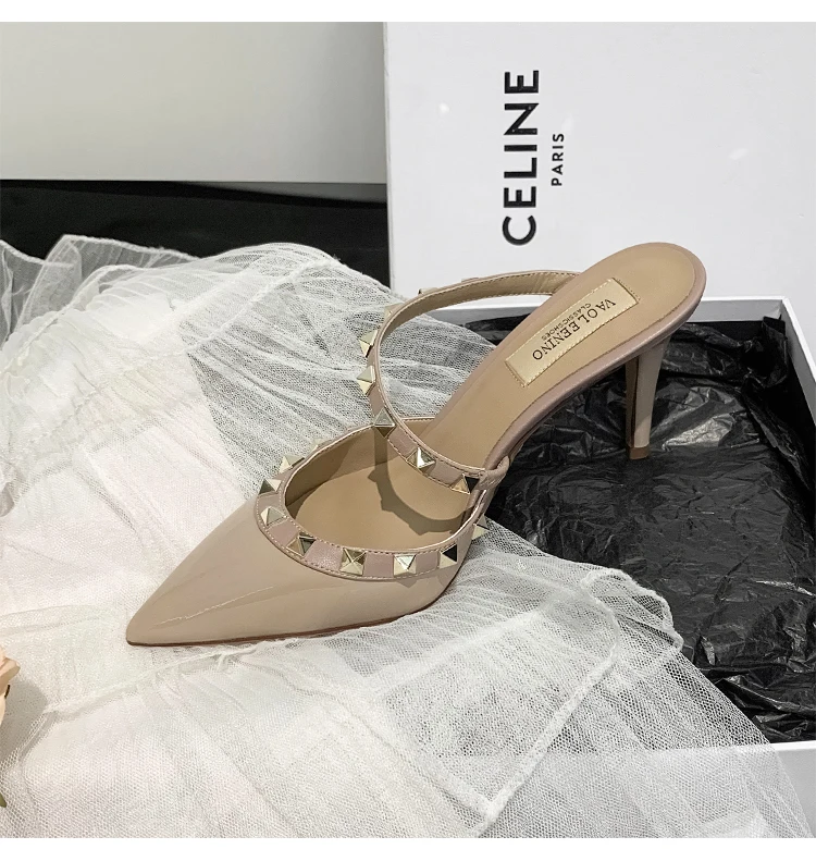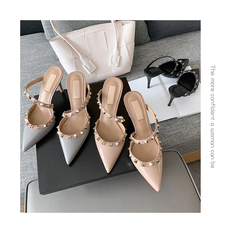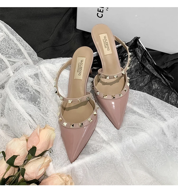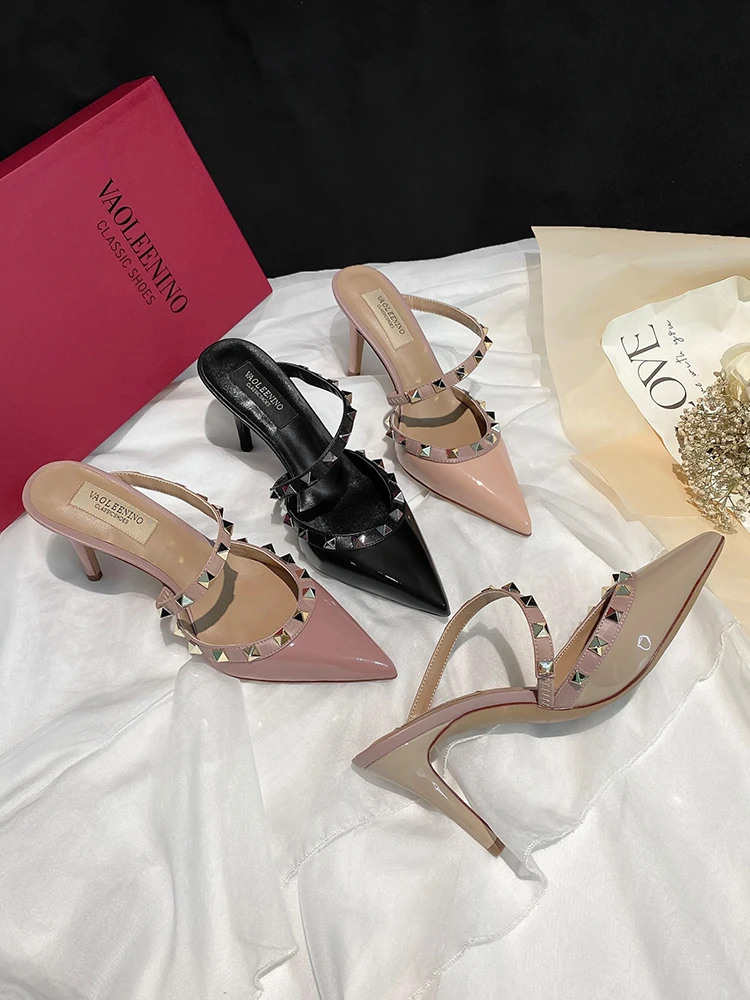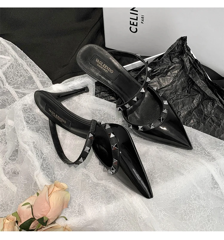 Women’s Heels sandals Summer 2025 luxury Brand Rivets Slippers Classic Slingbacks Pumps Sandals Fashion Party Prom Shoes Women