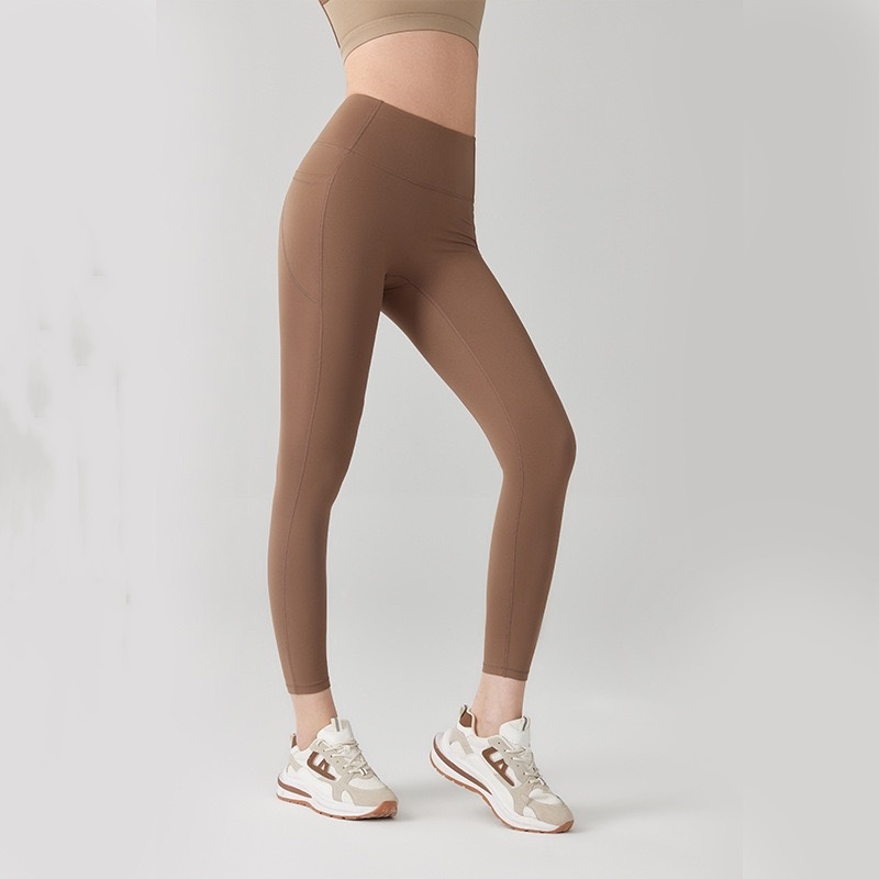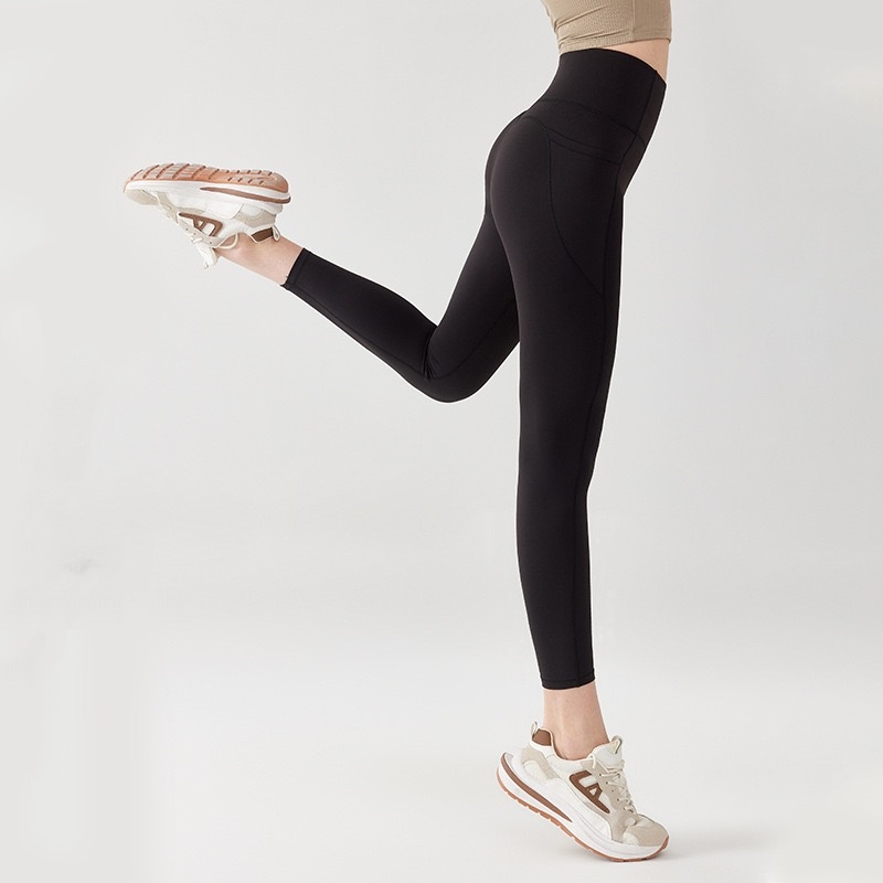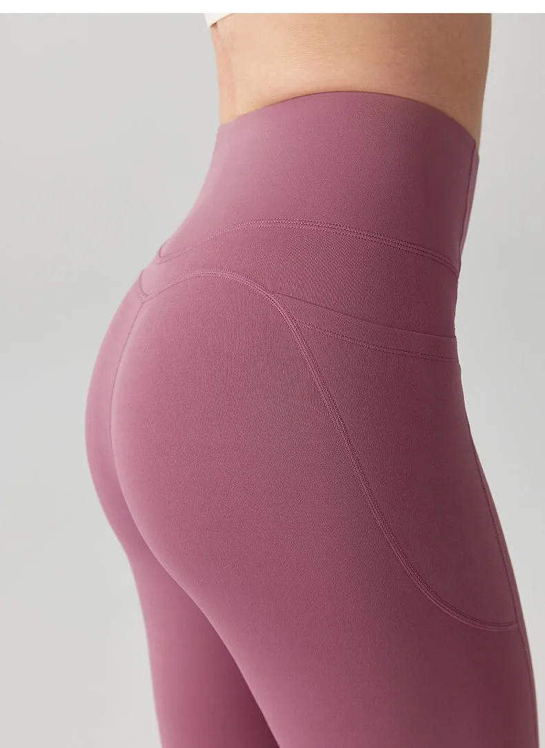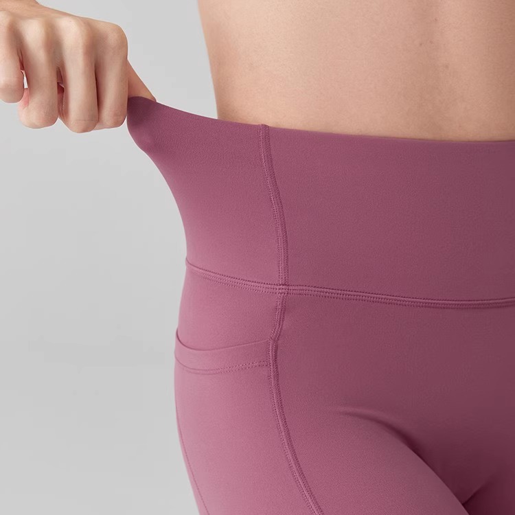 Women’s High Waist Lifting Hip Quick-drying Fitness Pants with Pocket Nude Feeling Pants Leggings Pants Running Pilates Summer