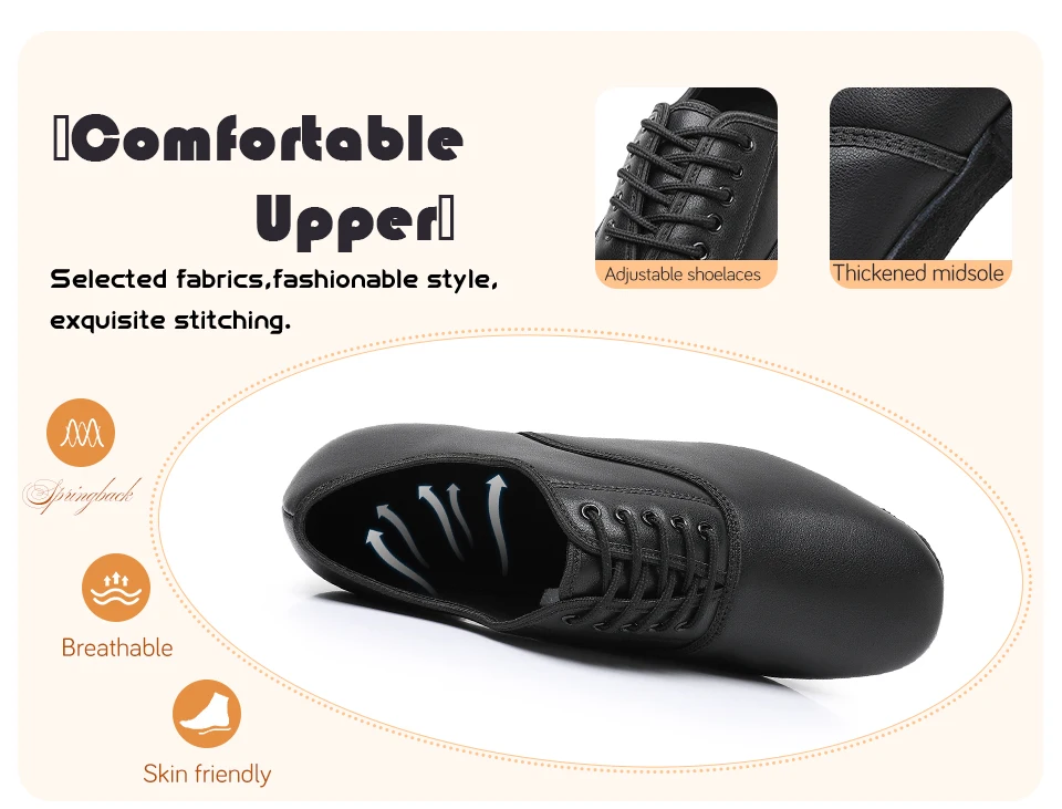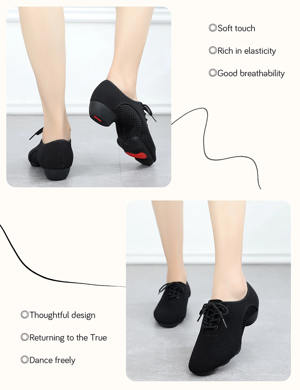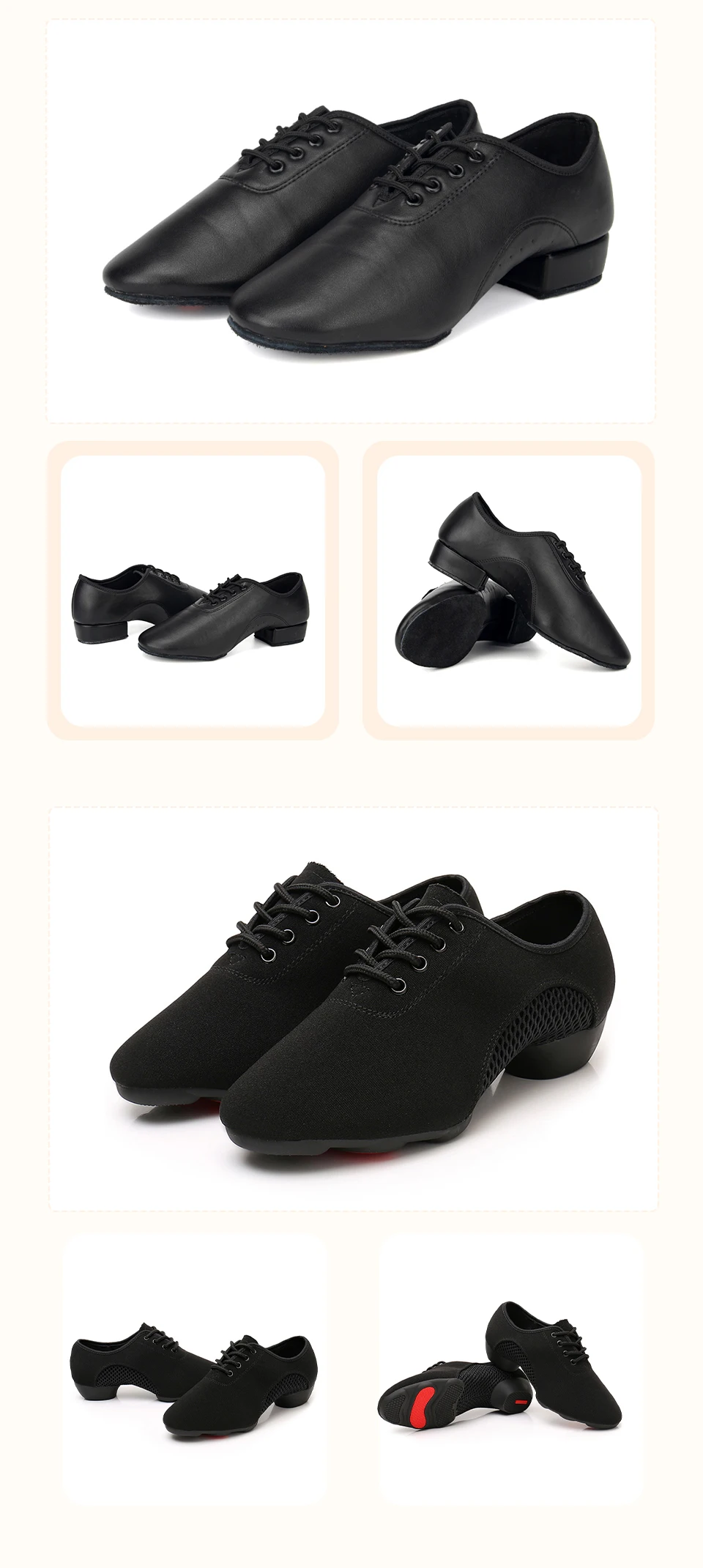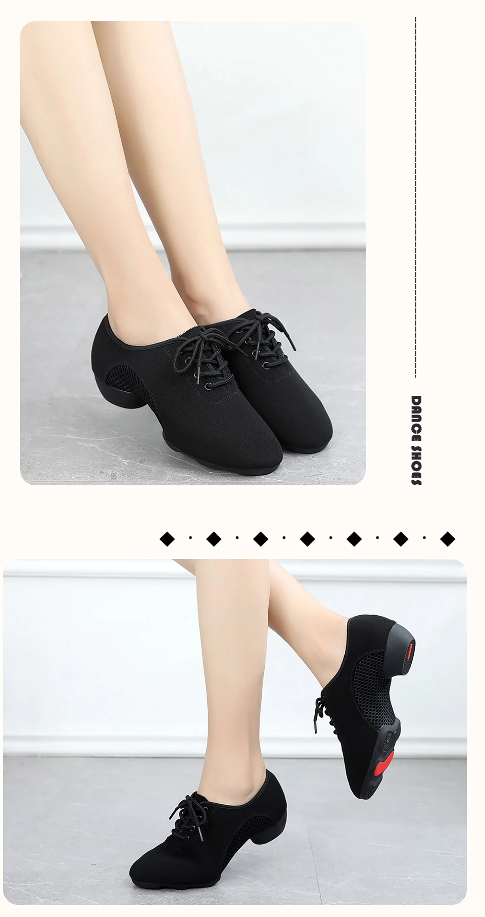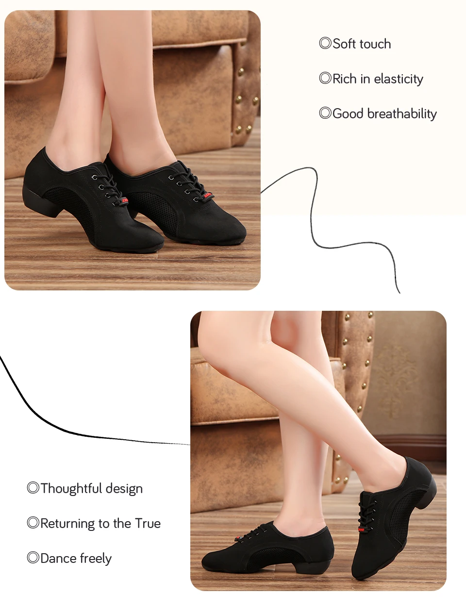 Women’s Latin Dance Shoes Modern Social Square Dance Leather Low-Heeled Soft Mesh Unisex Large Size Teacher Dance Shoes