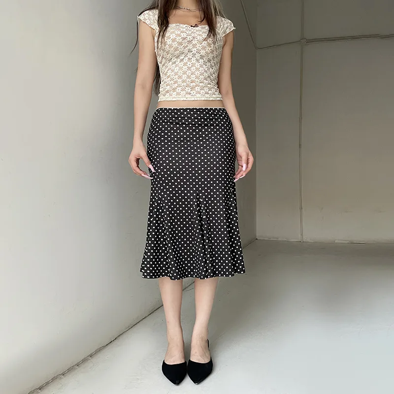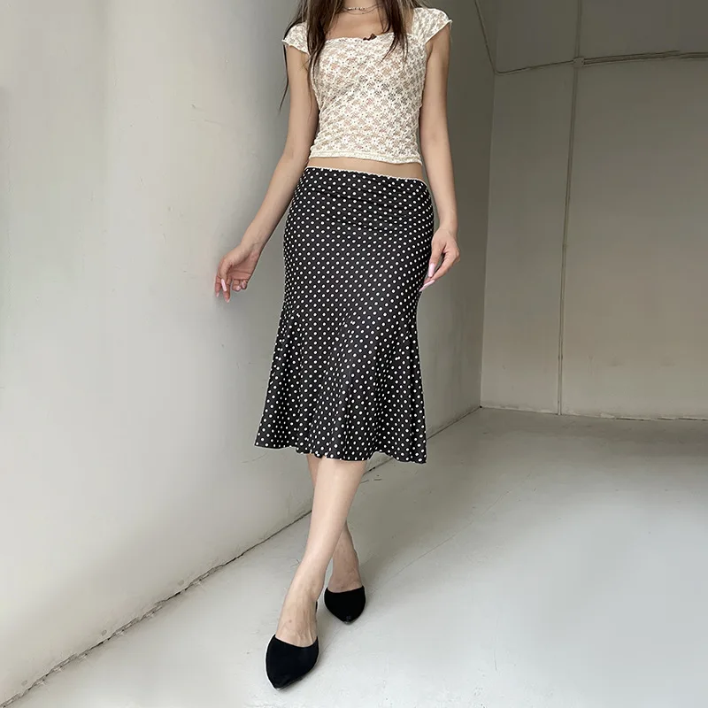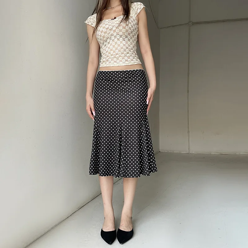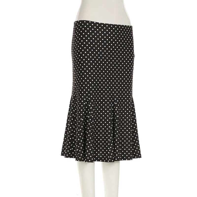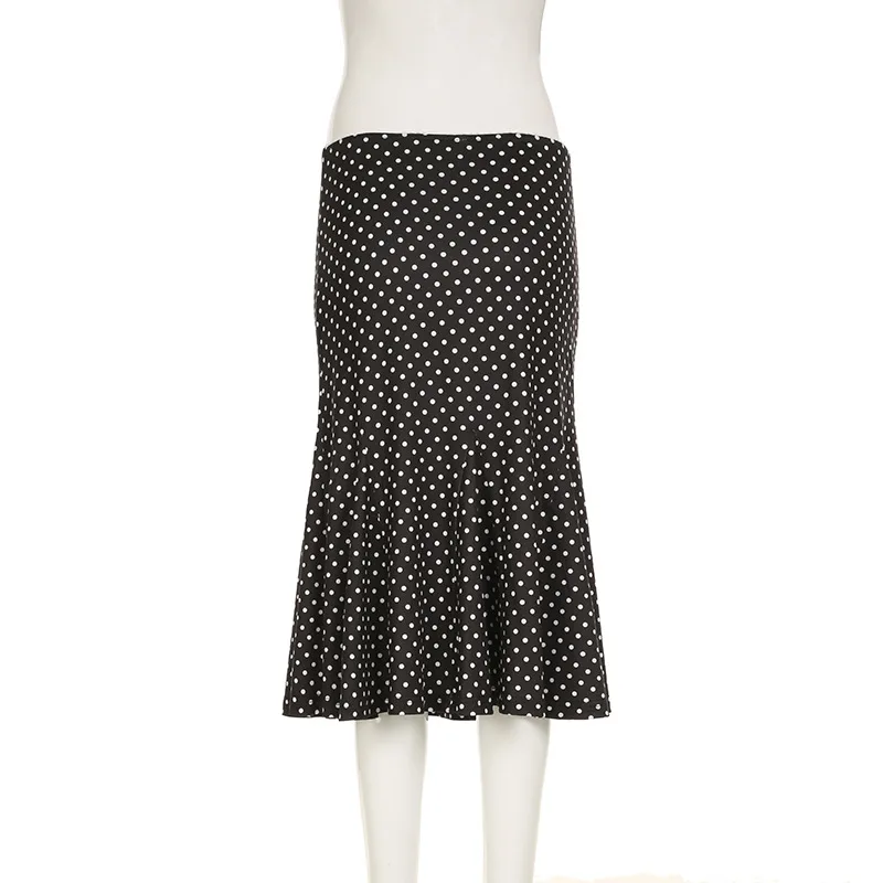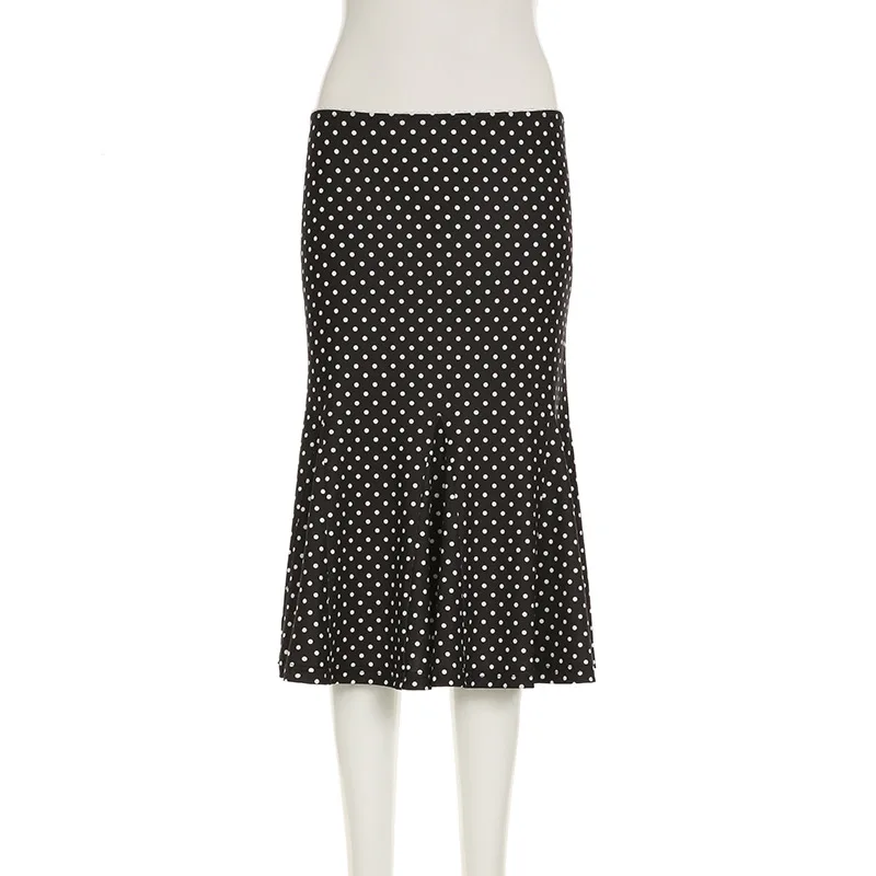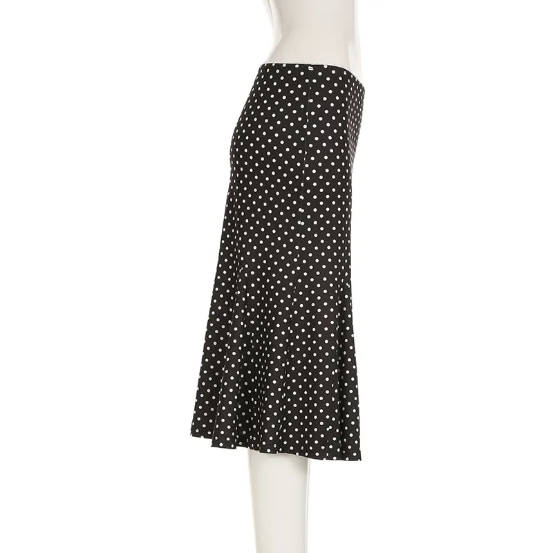 Women’s Midi Skirts Dot Print Low Waist Skirts Spring Summer Casual Skirts 2025 Fashion Casual Elegant Clothes