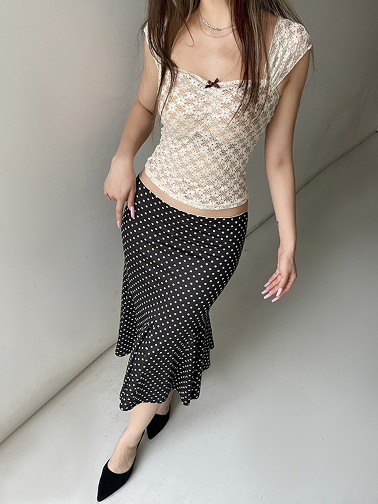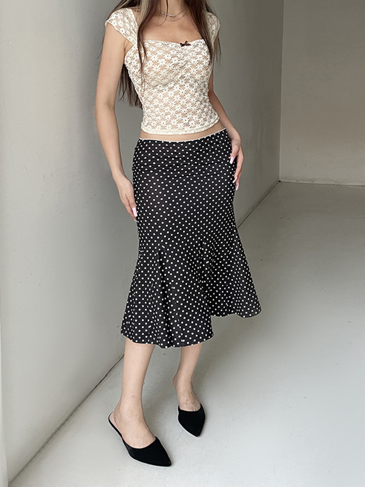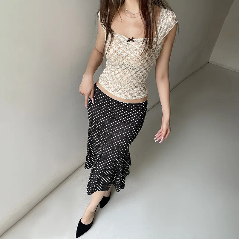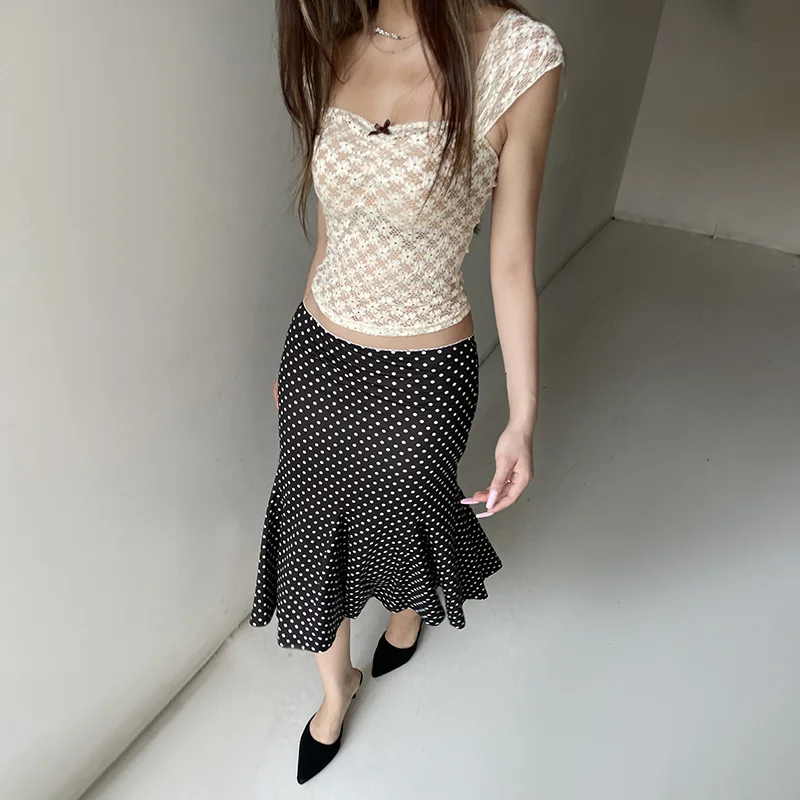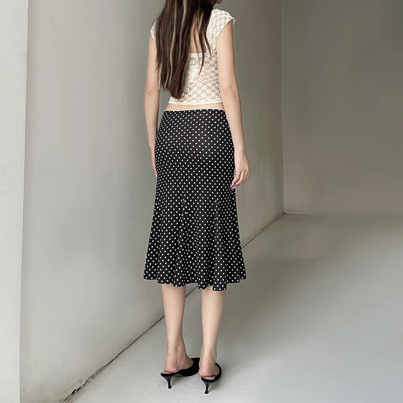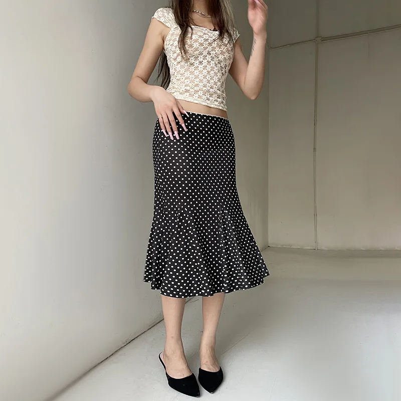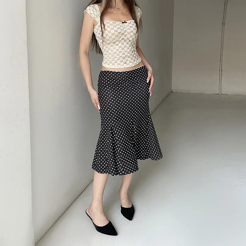 Women’s Midi Skirts Dot Print Low Waist Skirts Spring Summer Casual Skirts 2025 Fashion Casual Elegant Clothes