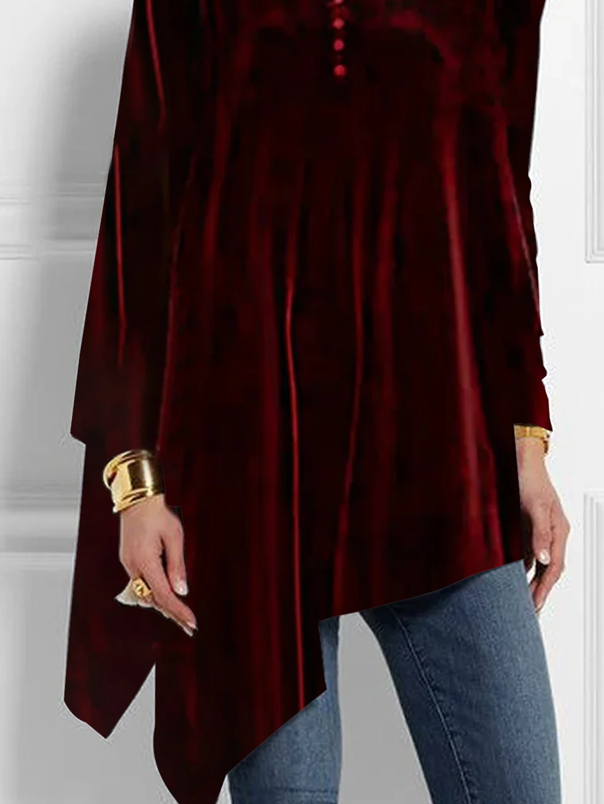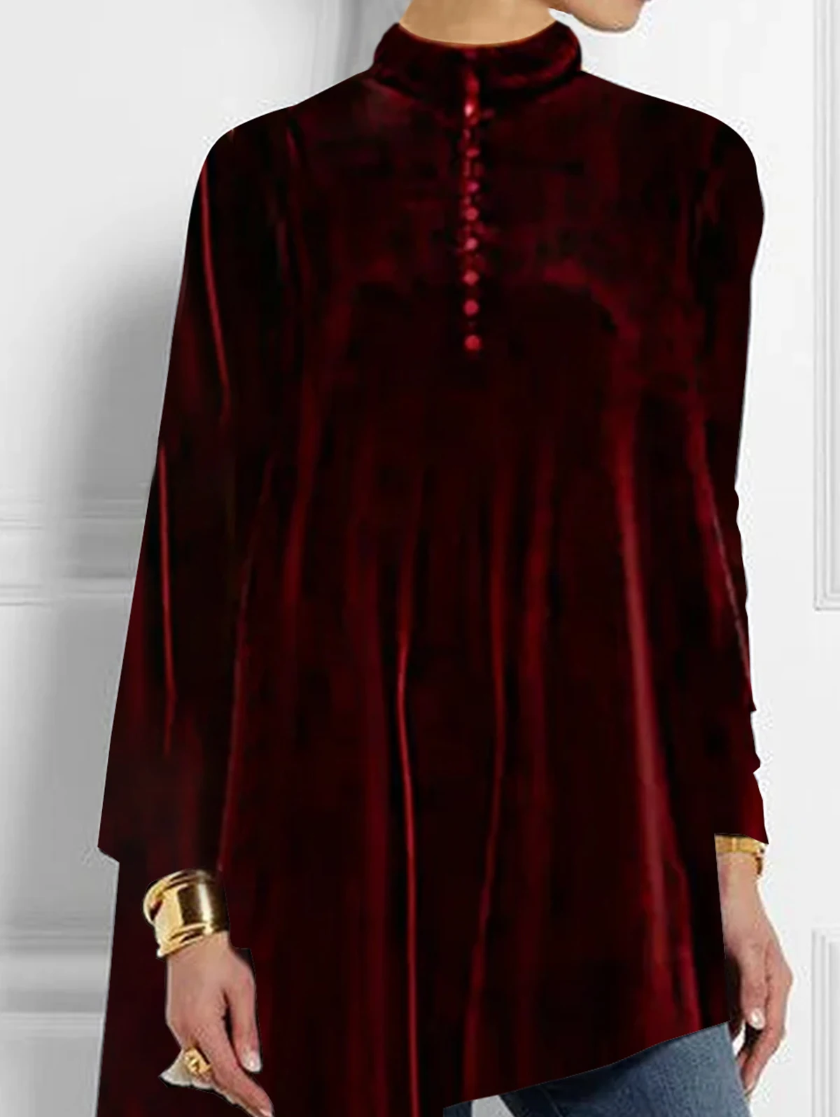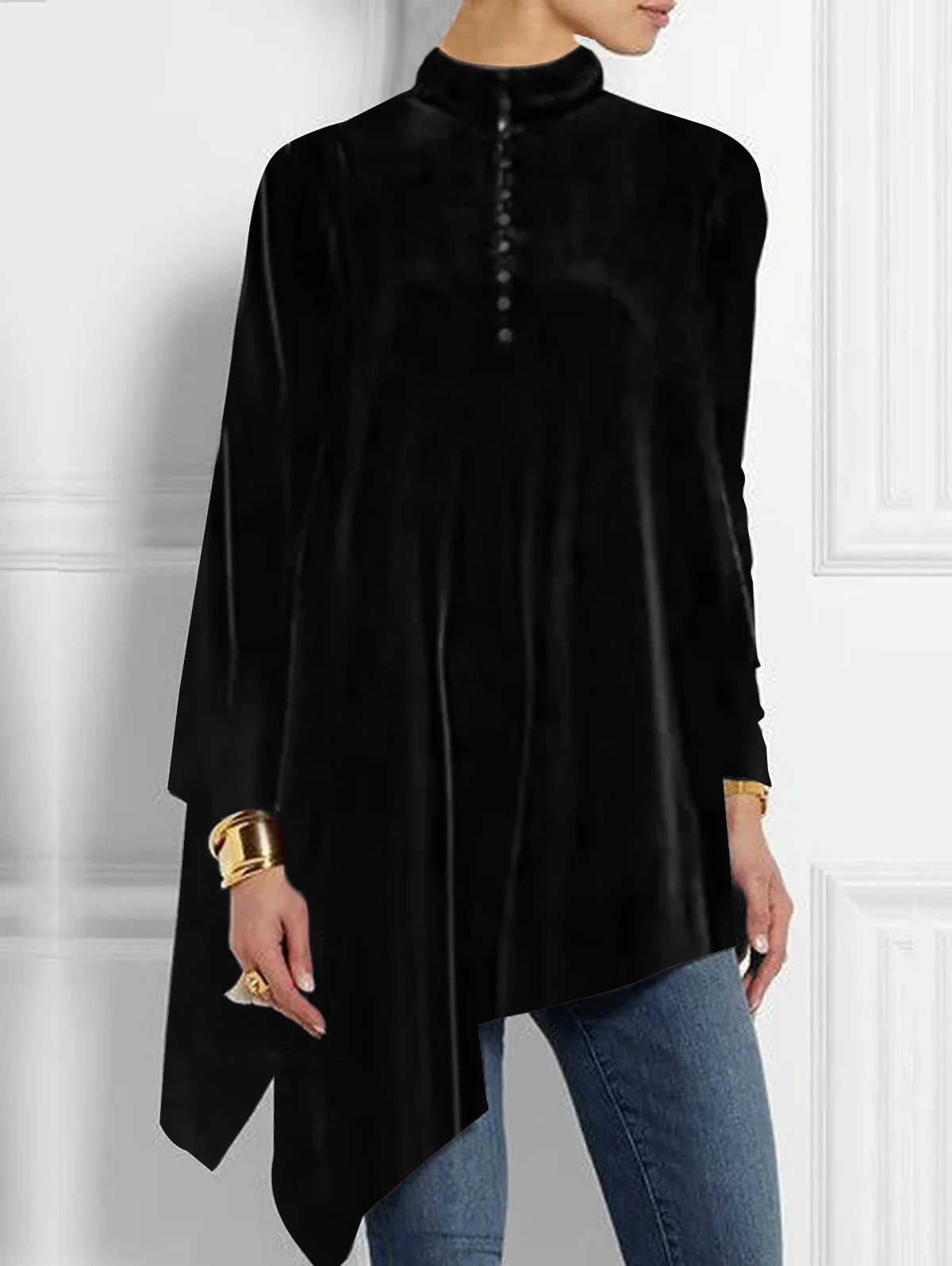 Women’s Plus Size Irregular Hem Blouse Autumn Fashion Retro Velvet Long Sleeve T-Shirt Turtleneck Casual Loose Asymmetrical Top