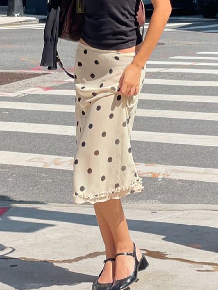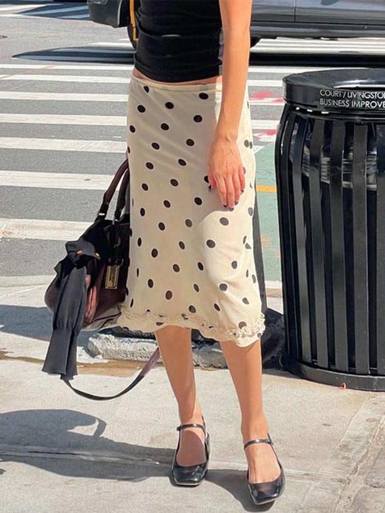 Women’s Polka Dot Trim Skirt Double Layered Mesh Zipper-Up Edible Tree Fungus Design Holiday Fashion Bottoms 2025