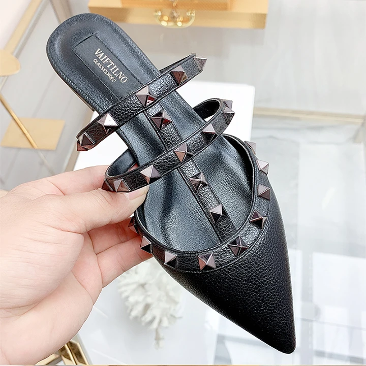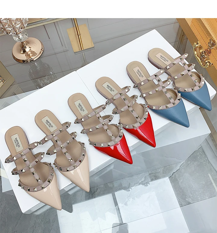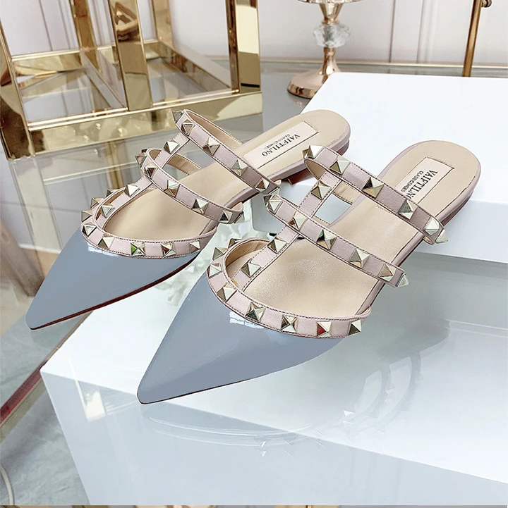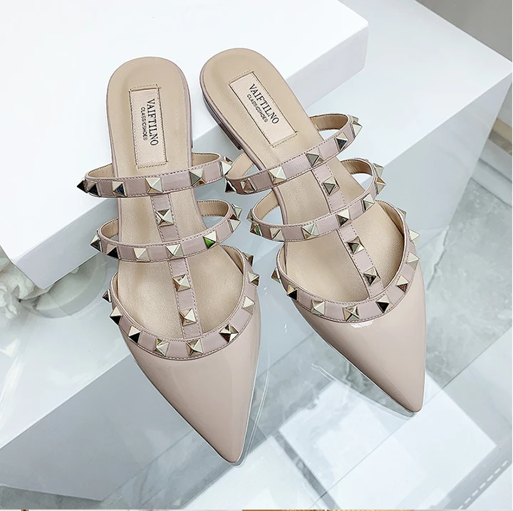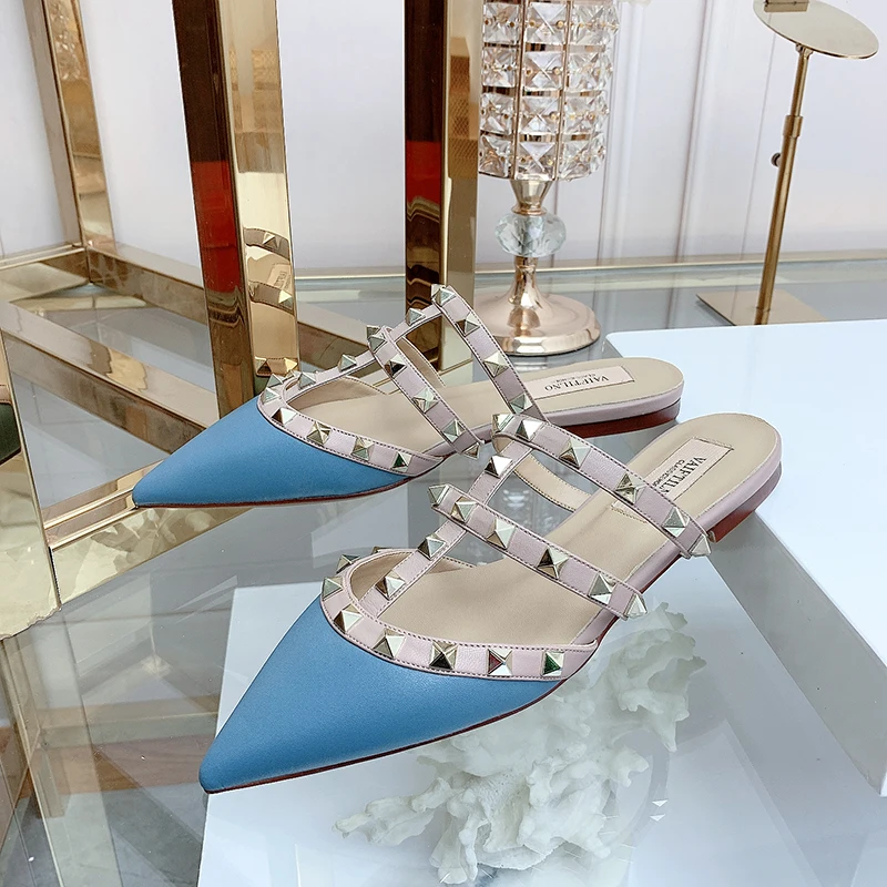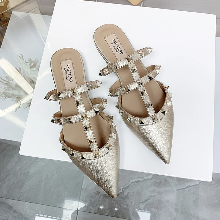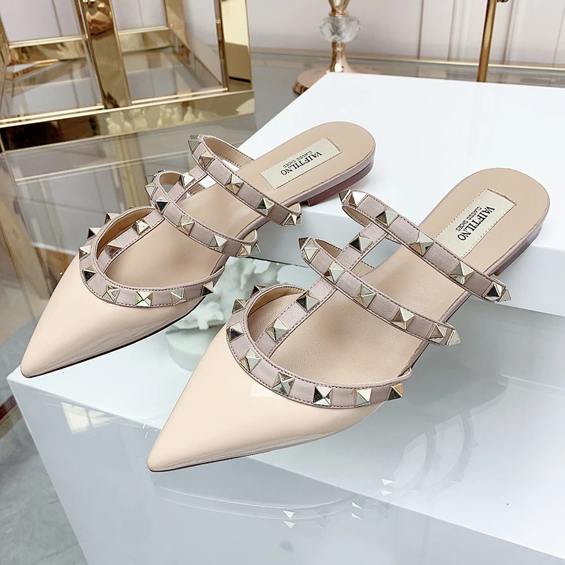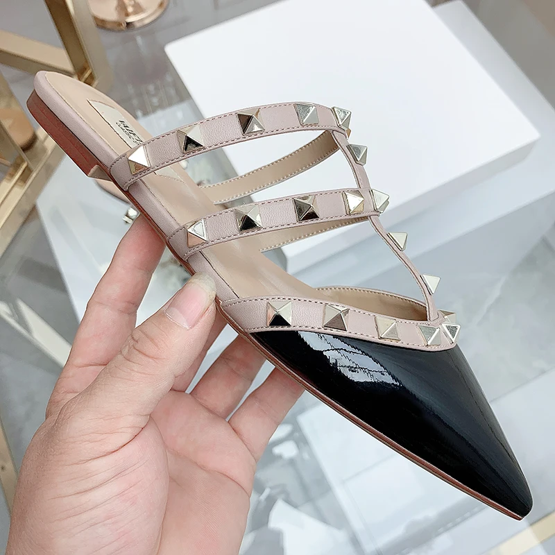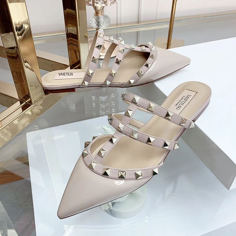 Women’s sandals Summer luxury Shoes Woman 2025 trend Ankle Strap Rivets Flat shoes Brand Design Slippers Ladies Shoes Women