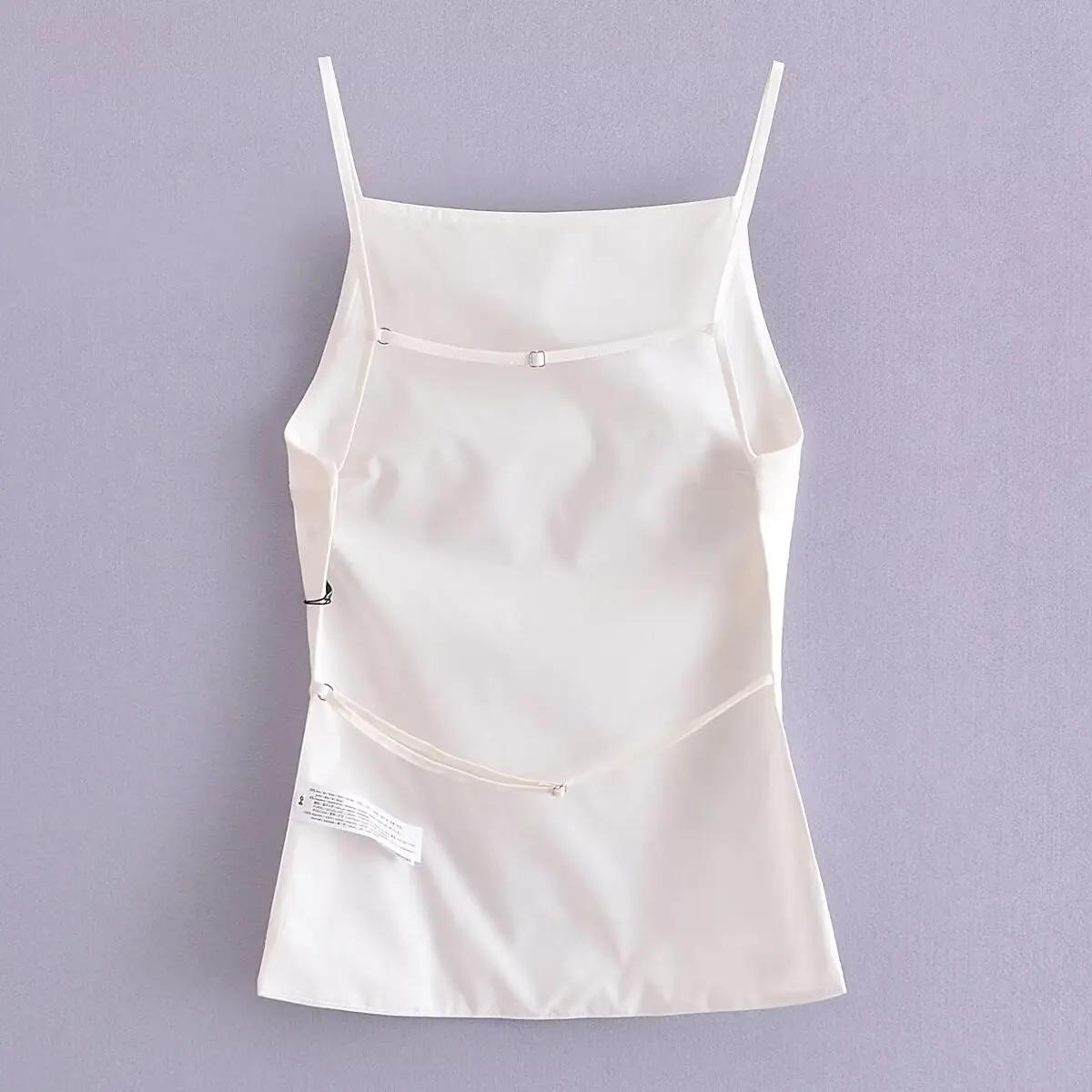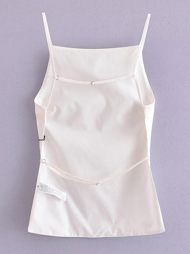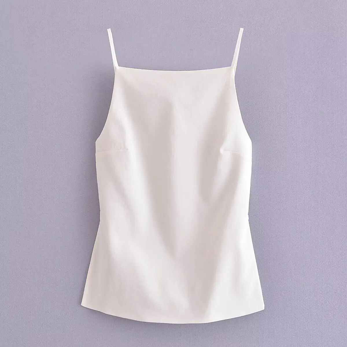 Women’s Sexy Backless Tank Top with Thin Straps Straight Neck Sleeveless Camisole Trendy Fashion for Casual Wear