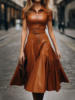 Womens Shirt Collar Midi Dress Elegant Brown Spring Summer Zipper Short Sleeve PU Leather Skinny Belted Lapel Vintage Midi Dress
