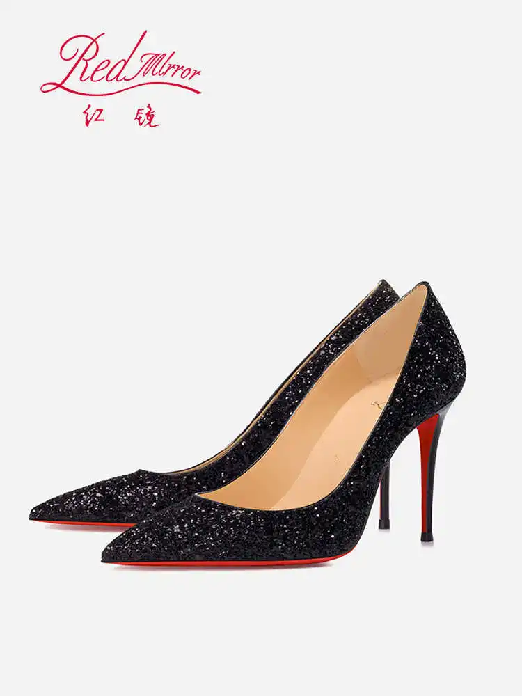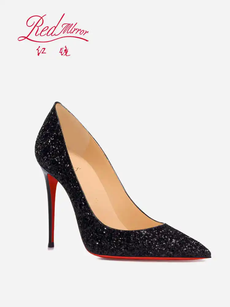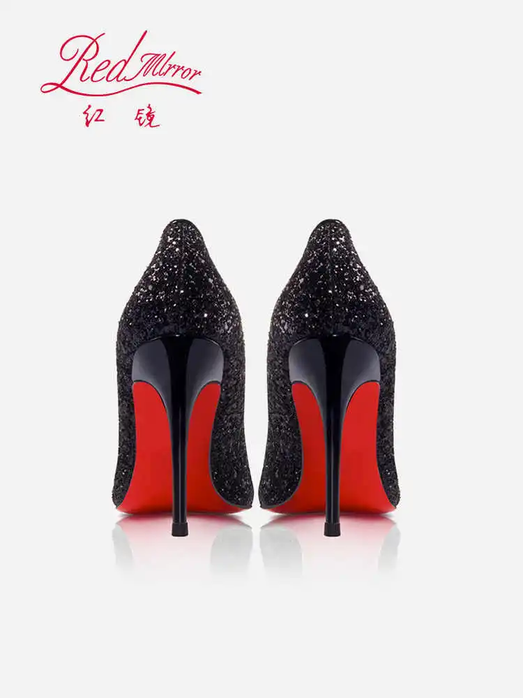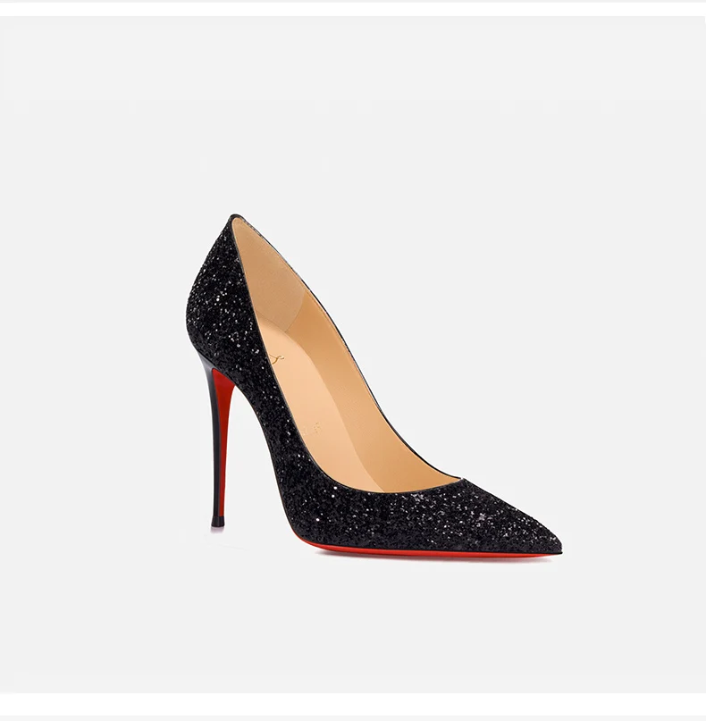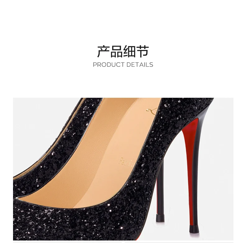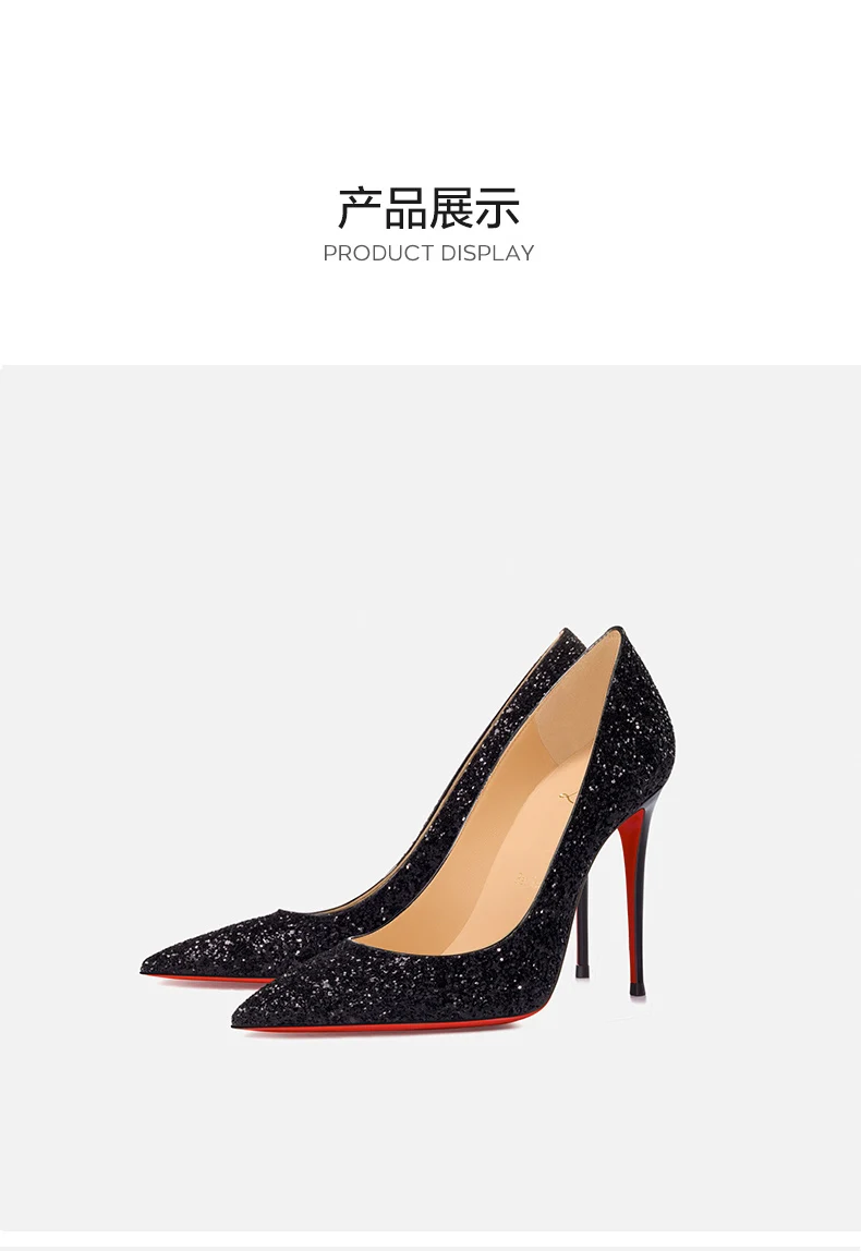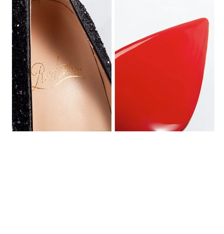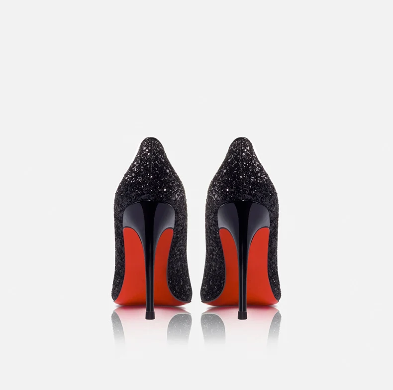 Women’s Super High Heels 2025 Shiny Black Gold Silver Sexy Pumps with Red Sole Pointed Thin Toe Single Order 12cm Ladies Party