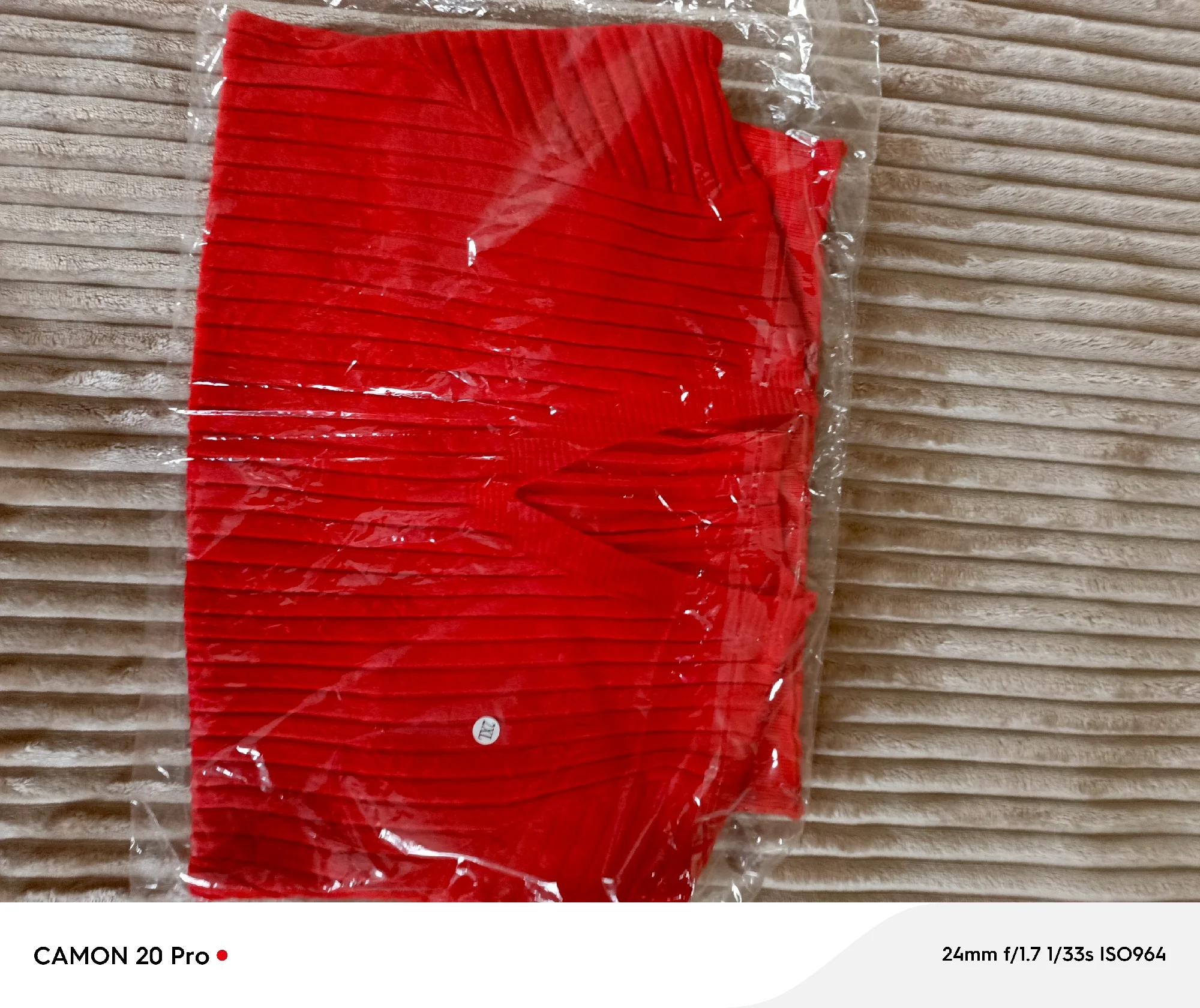 The color red is magnificent. The quality is top-notch. The size corresponds well to an M. The shipment was ultra-fast. Excellent seller, a big thank you.