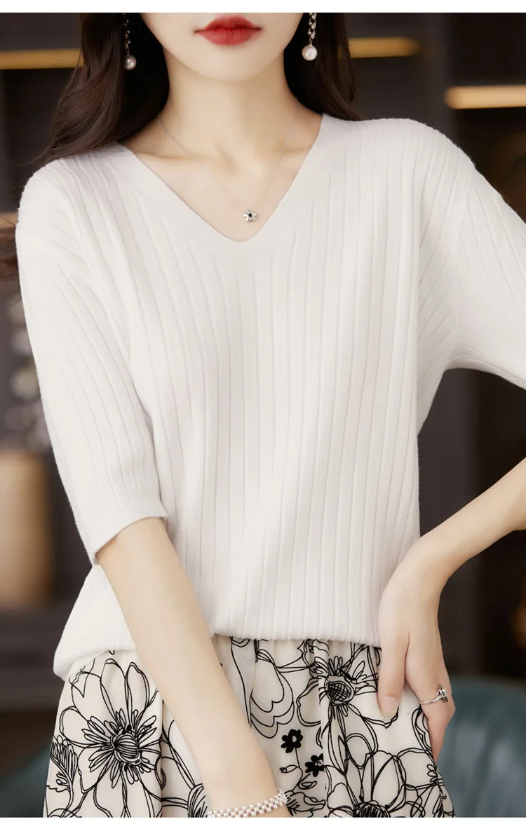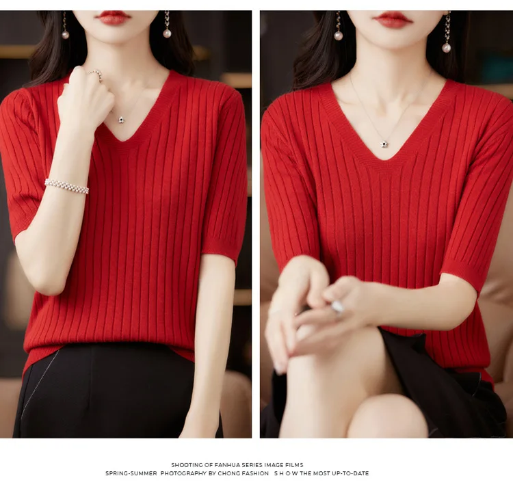 The women’s spring summer short sleeve v-neck casual pullover looks very good. It is very nice to touch.