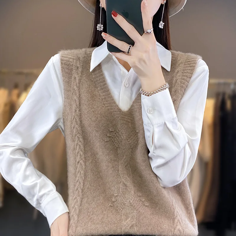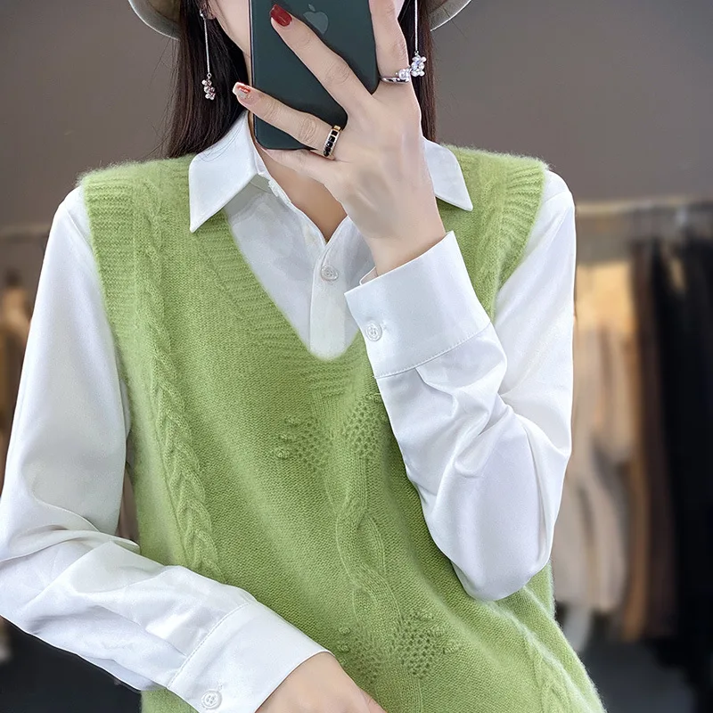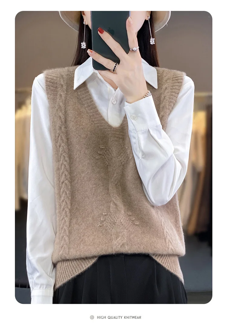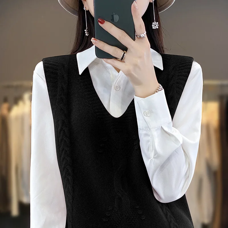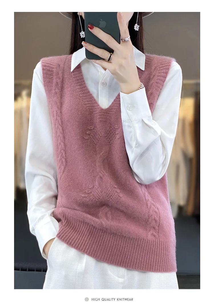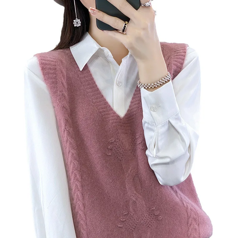 Women’s Sweater Vest Sleeveless Loose V-neck Knitted Pullovers Spring Autumn Inner Wear Fashion Korean Loose Bottoming Shirts