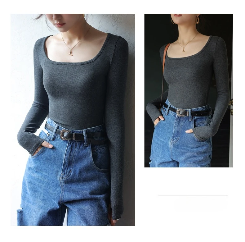 Women’s T-shirts Modal Long Sleeve High Strecth Slim Fit Bottoming Shirts Casual Korean Autumn Winter Warm Inner Top Knit Shirt