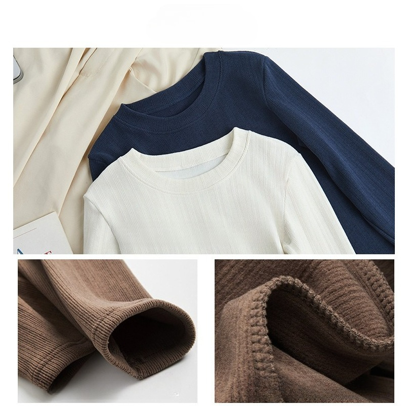 Women’s T-shirts O-neck Long Sleeve Warm Autumn Winter Bottoming Shirt Casual Solid Under Shirt Korean Strecth Slim Fit Tops