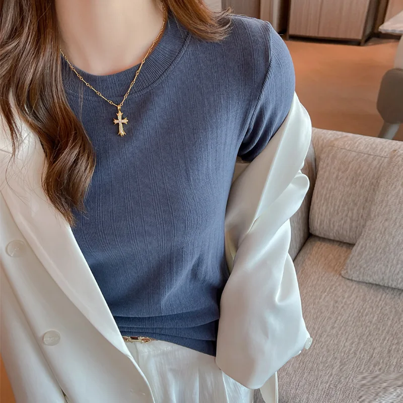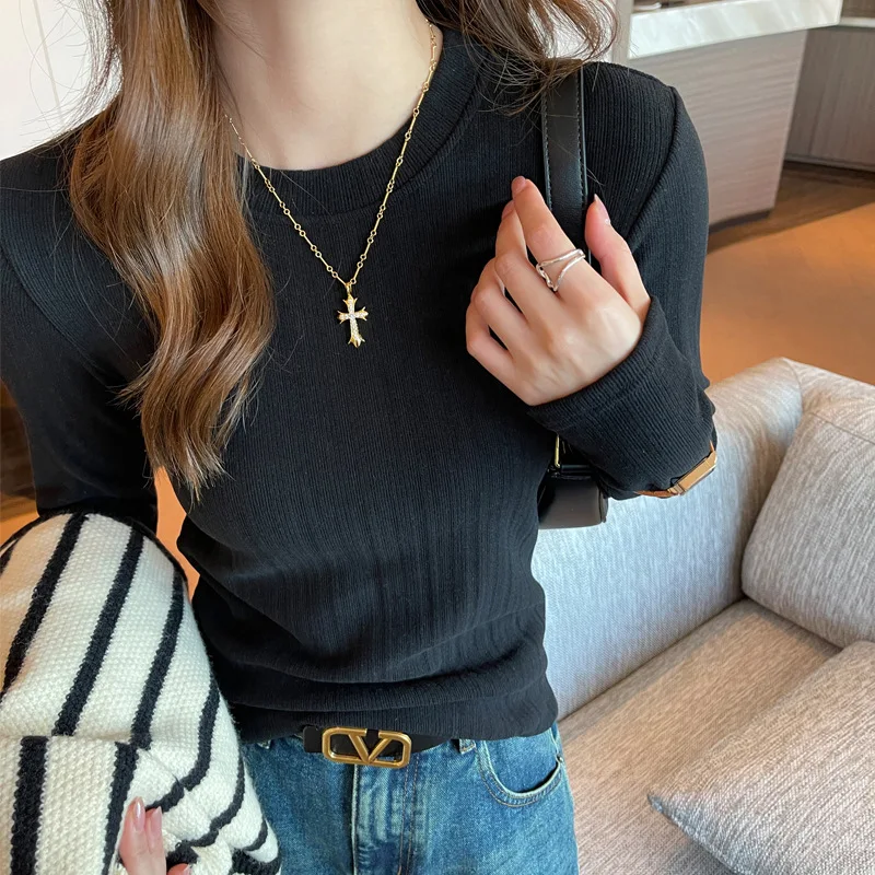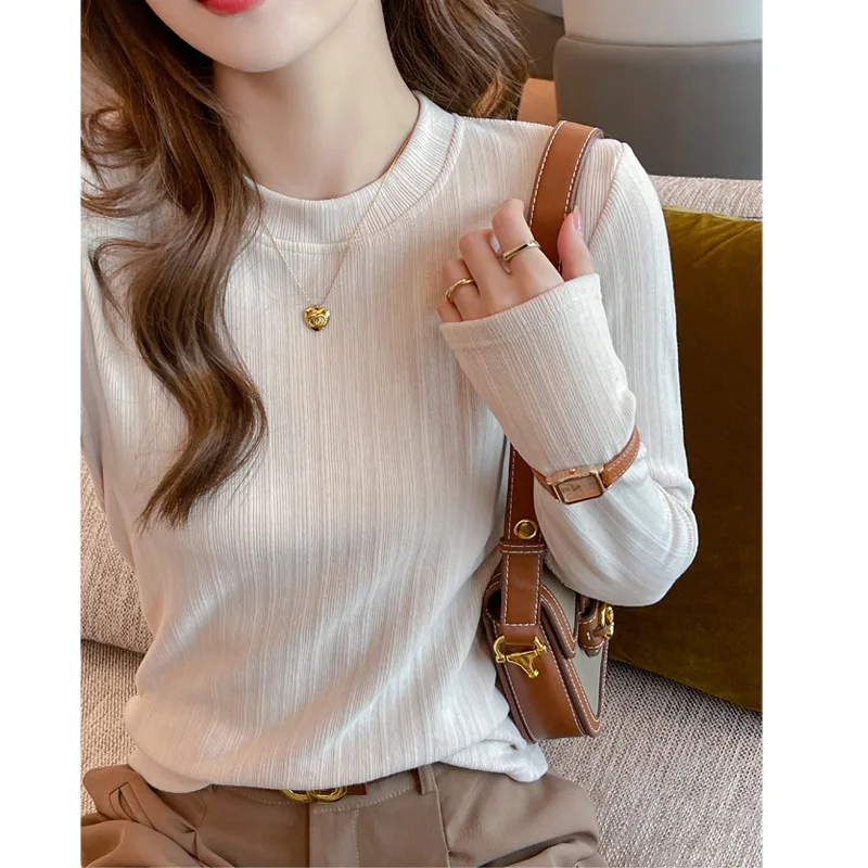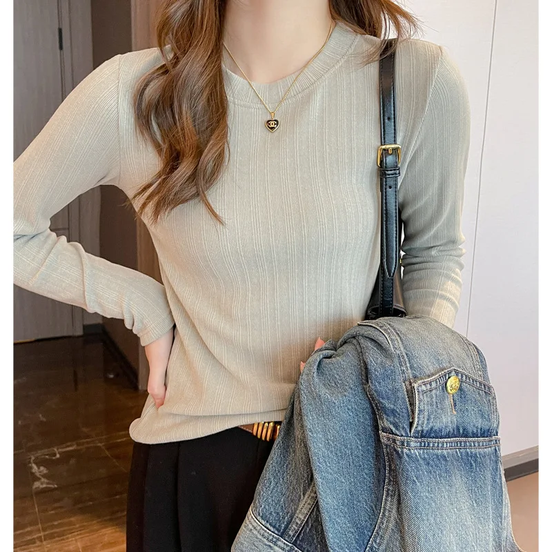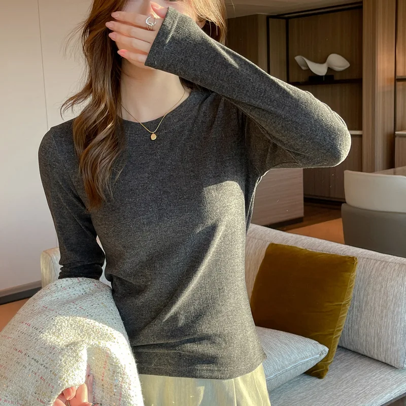 Women’s T-shirts O-neck Long Sleeve Warm Autumn Winter Bottoming Shirt Casual Solid Under Shirt Korean Strecth Slim Fit Tops
