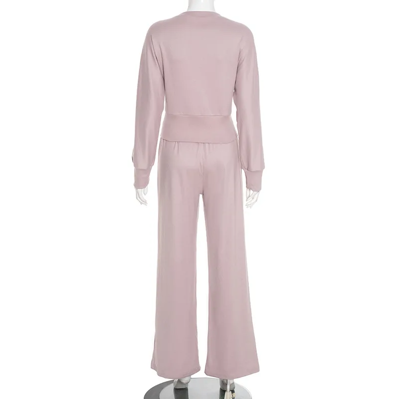 Women’s Y2K Tracksuit Casual Long Sleeve Cardigan T-Shirt Top Set High-Waisted Pants Fashionable Loungewear 2-Piece Outfit